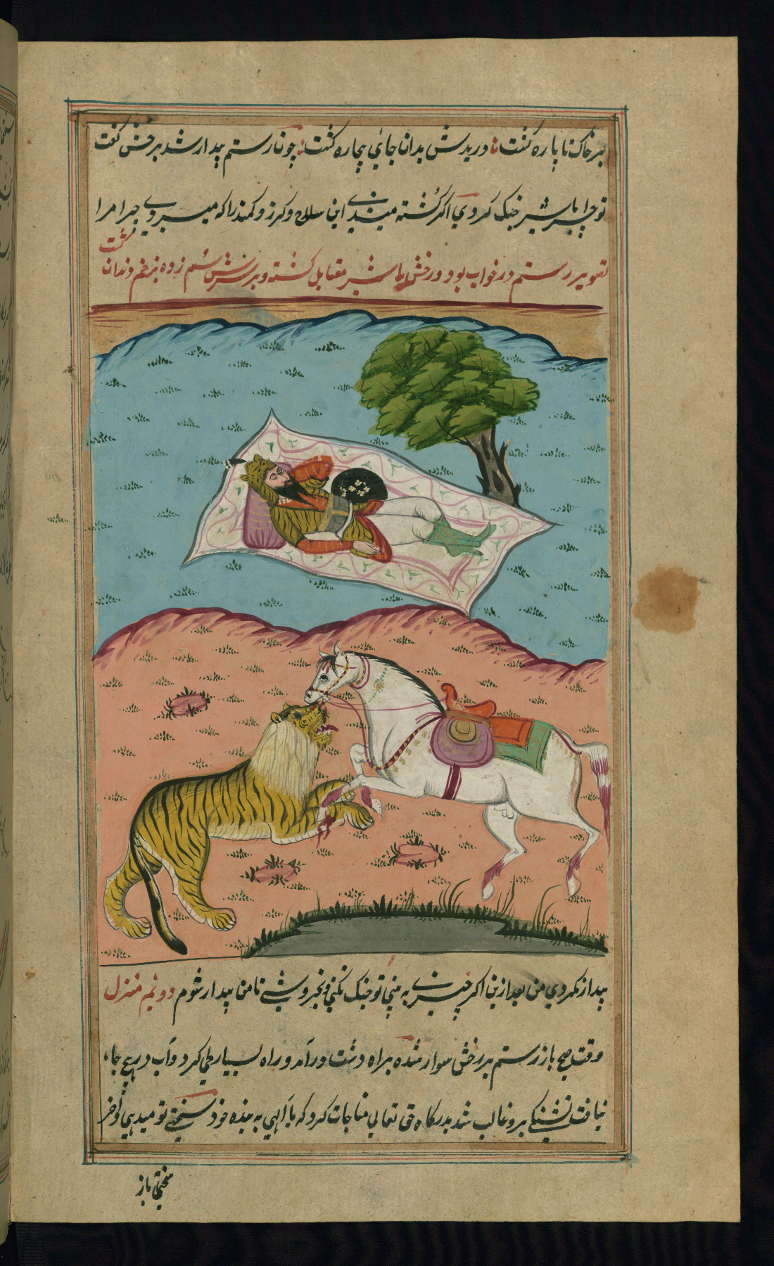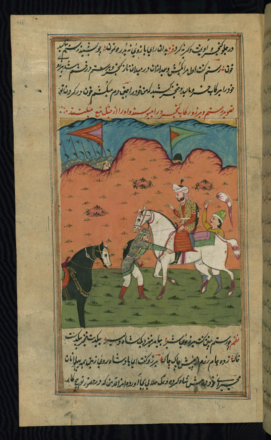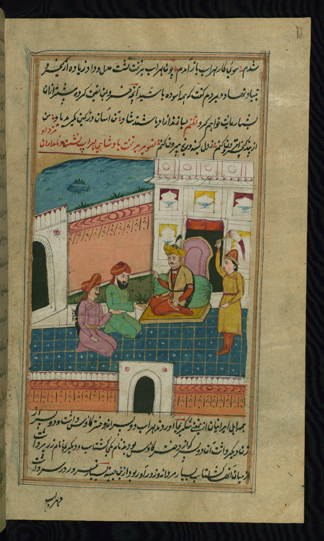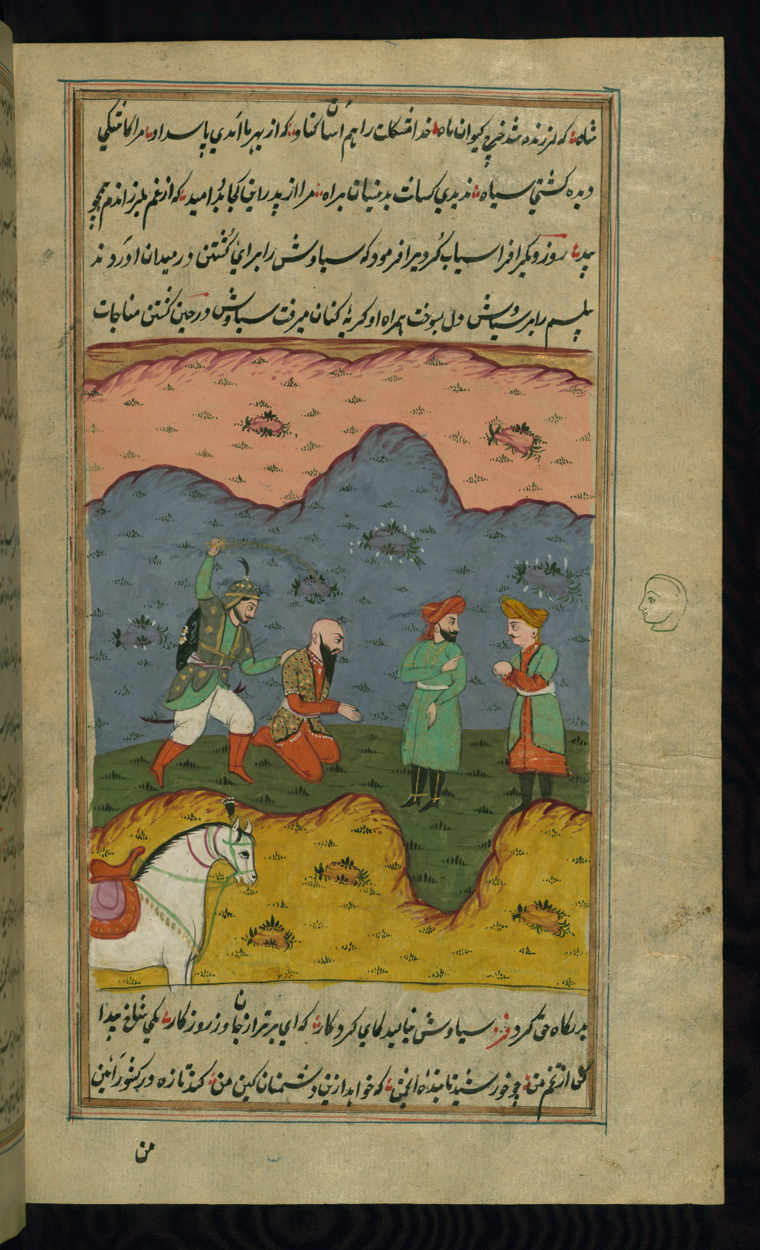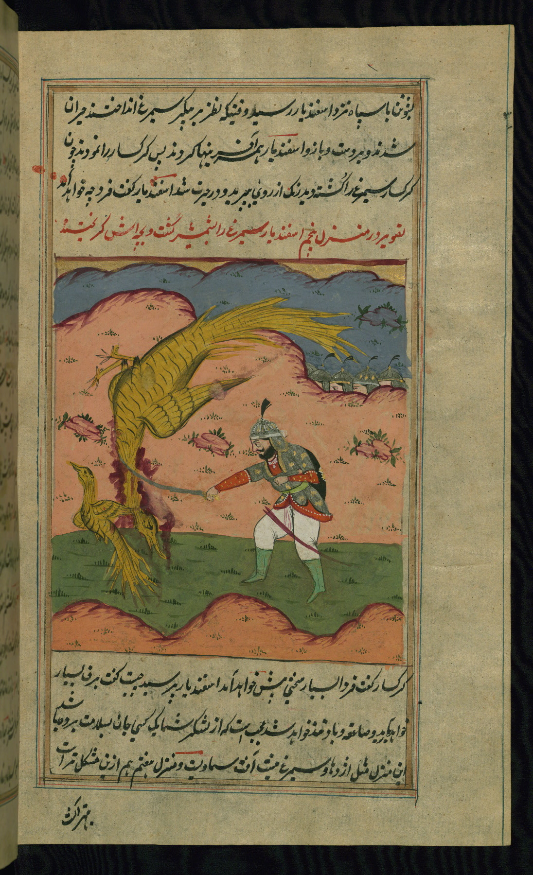 - Hand note: Written in nastaʿlīq script in black and red ink