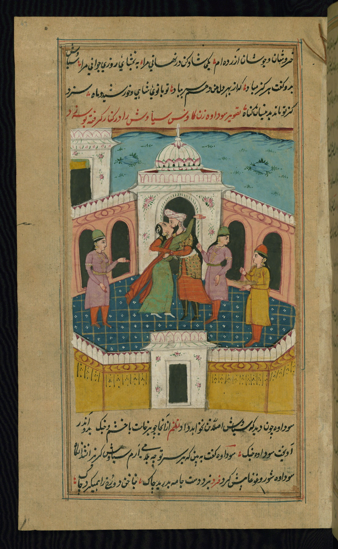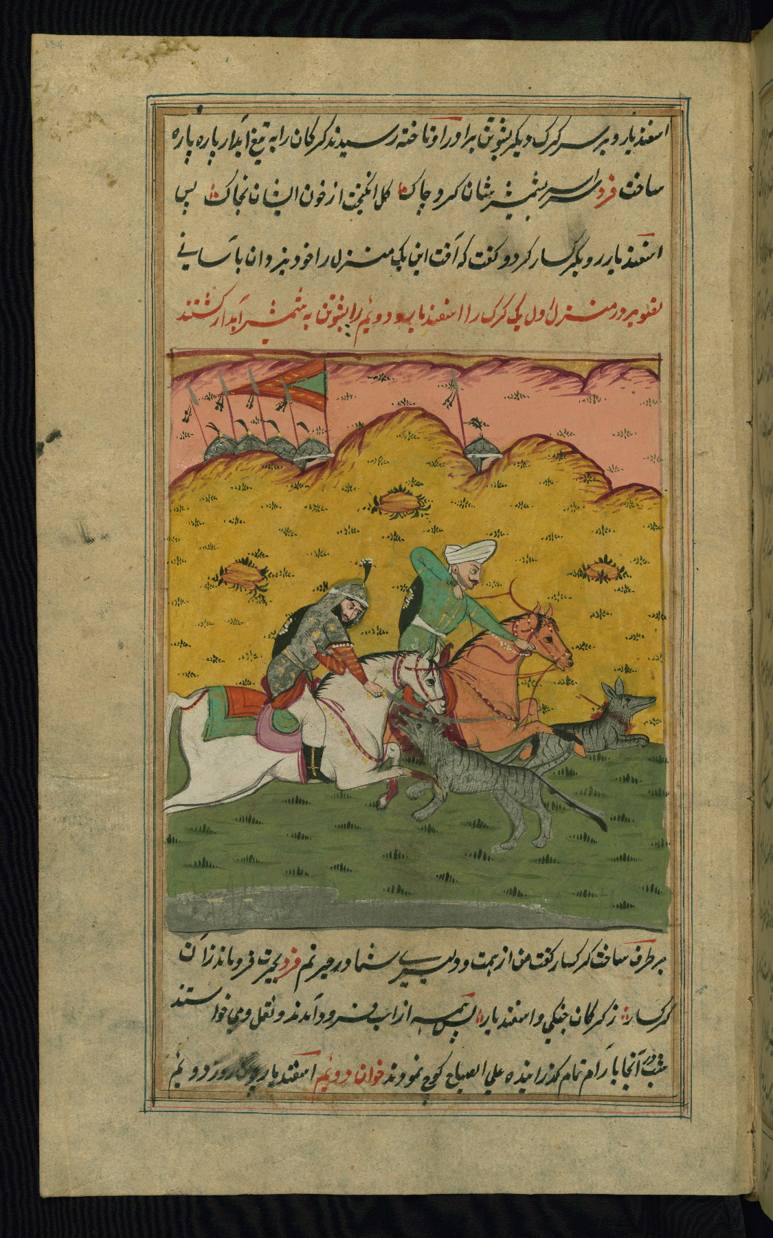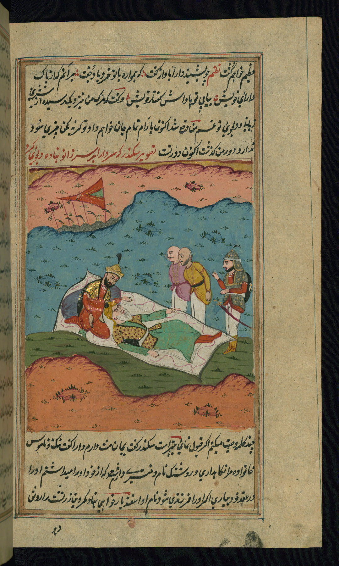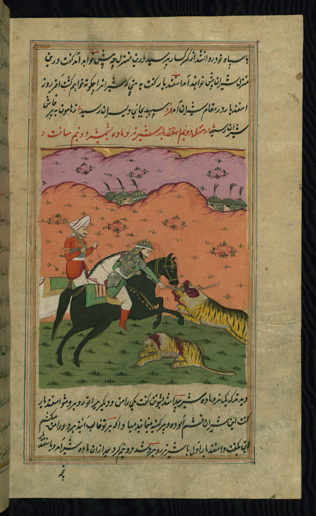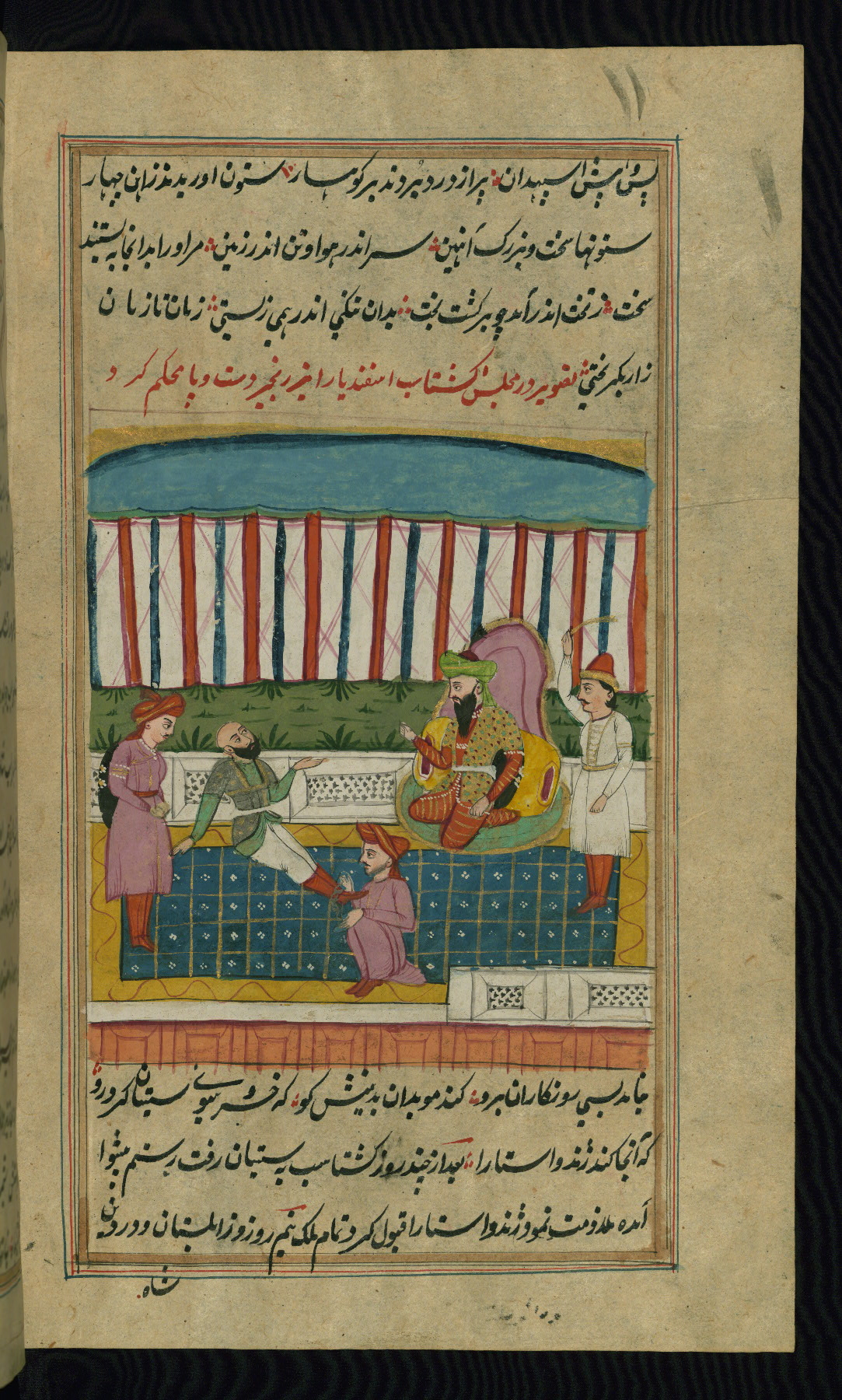 - Hand note: Written in nastaʿlīq script in black and red ink