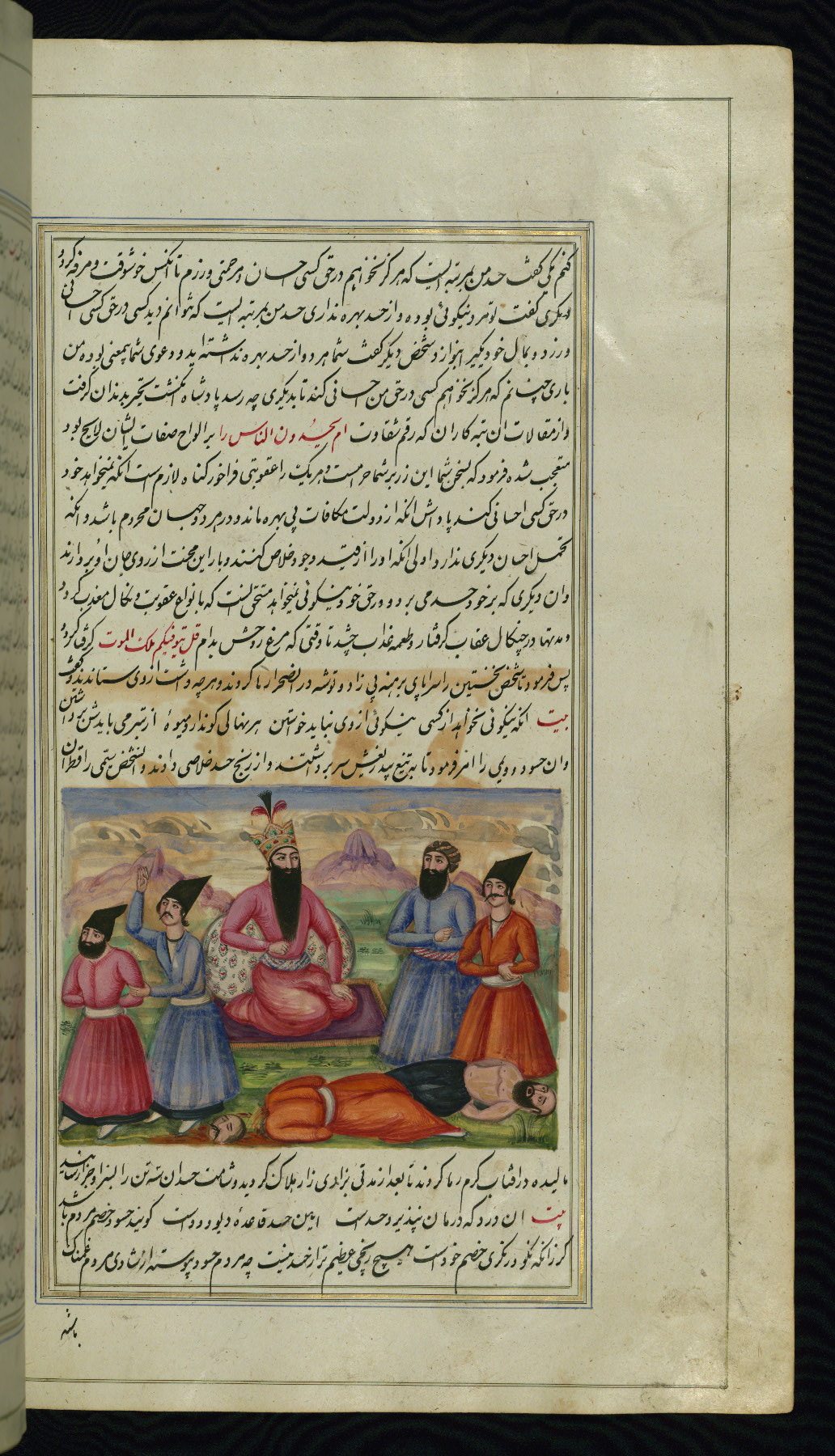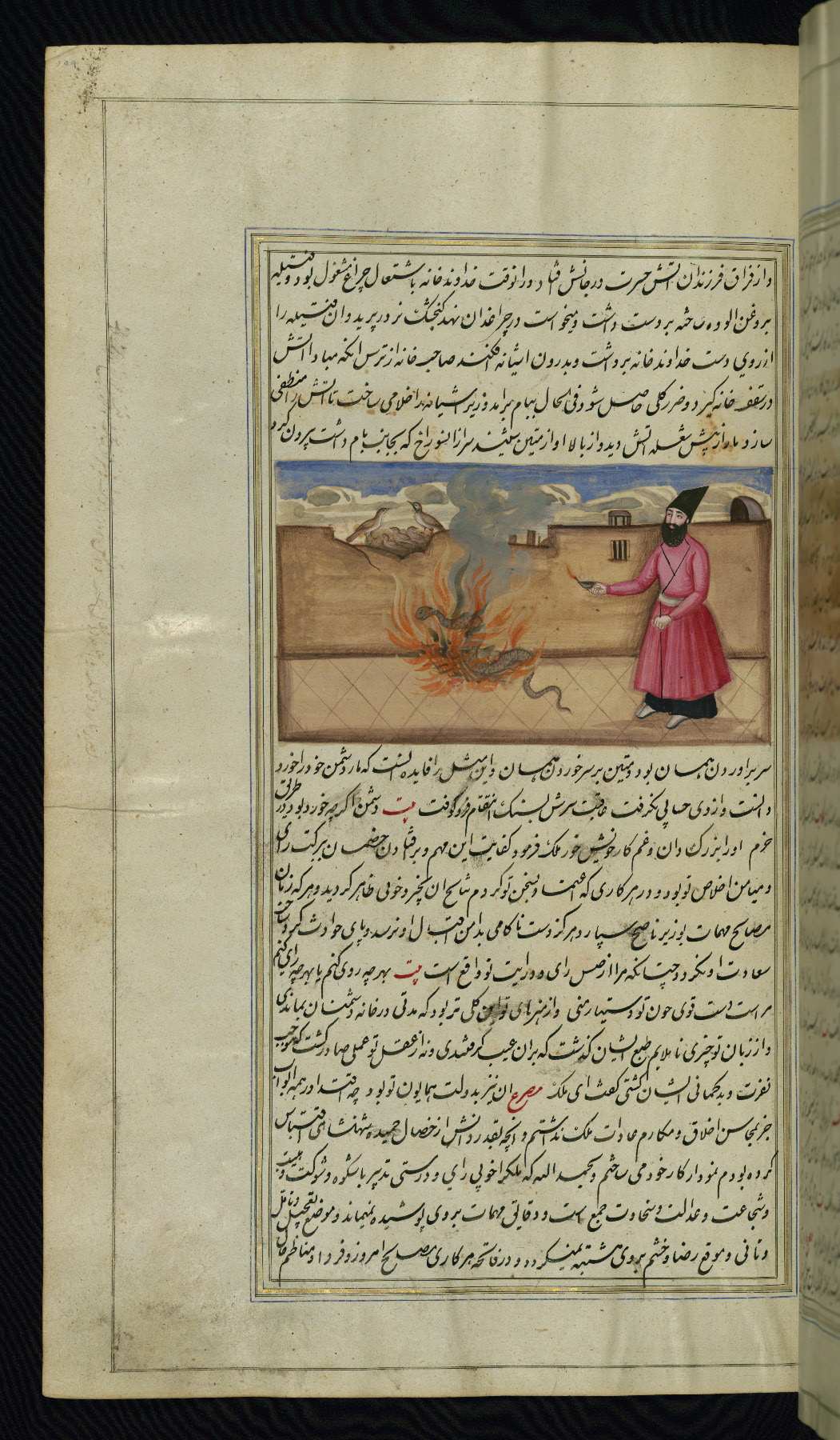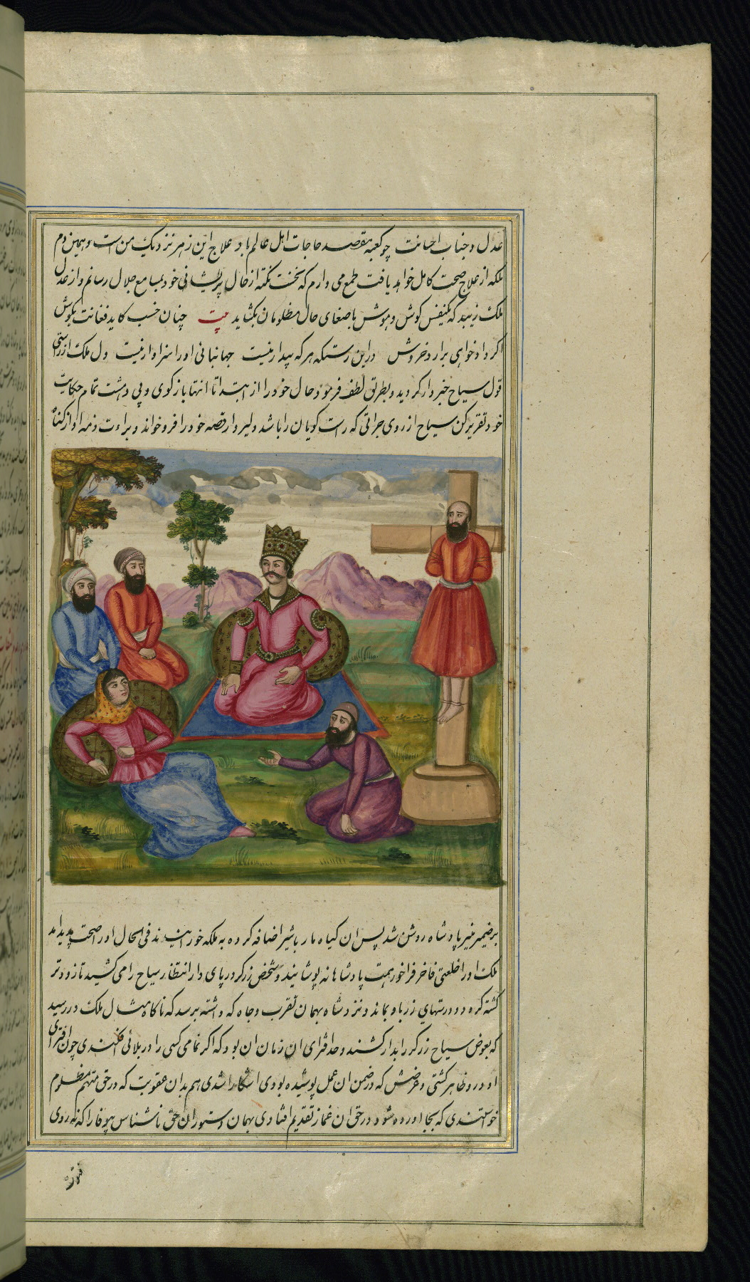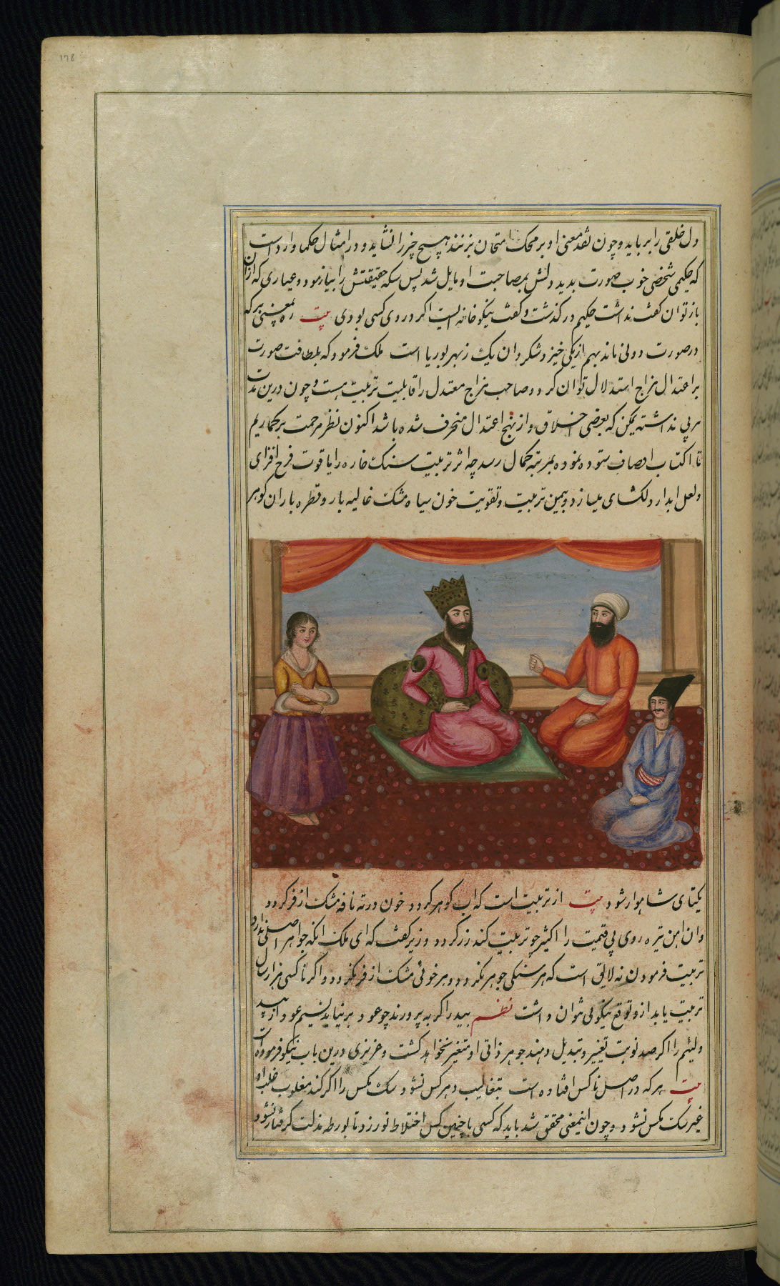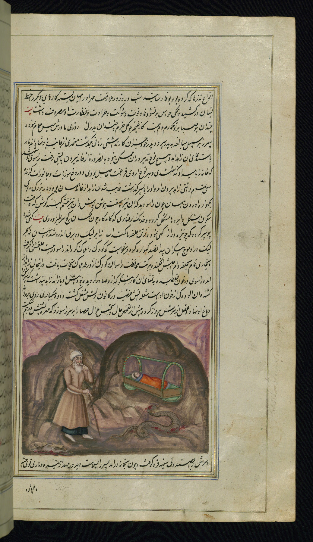 - Label: This illustration depicts a scholar (perhaps Barzūyah, the physician of Nūshirwān, who deputed the author to seek the work known to us as the Fables of Bīdpāy).