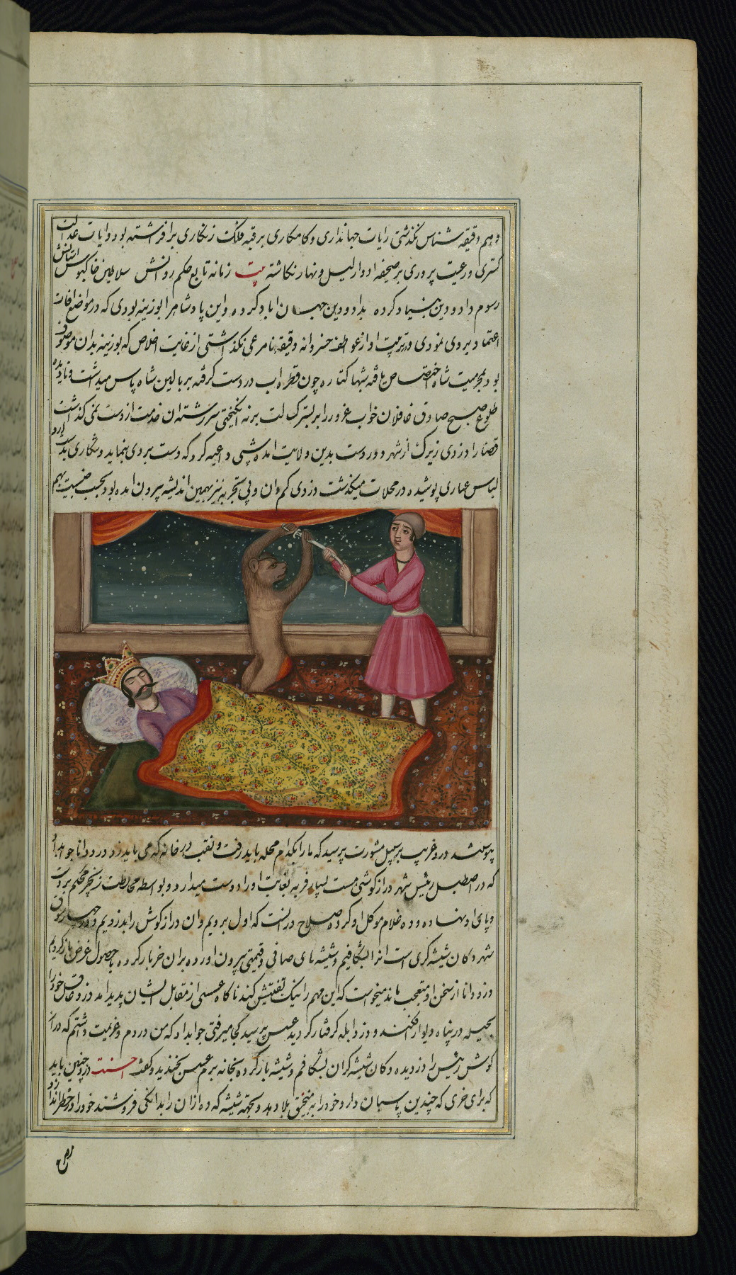 - Title: A faithful monkey struggles with a robber in the presence of the sleeping king