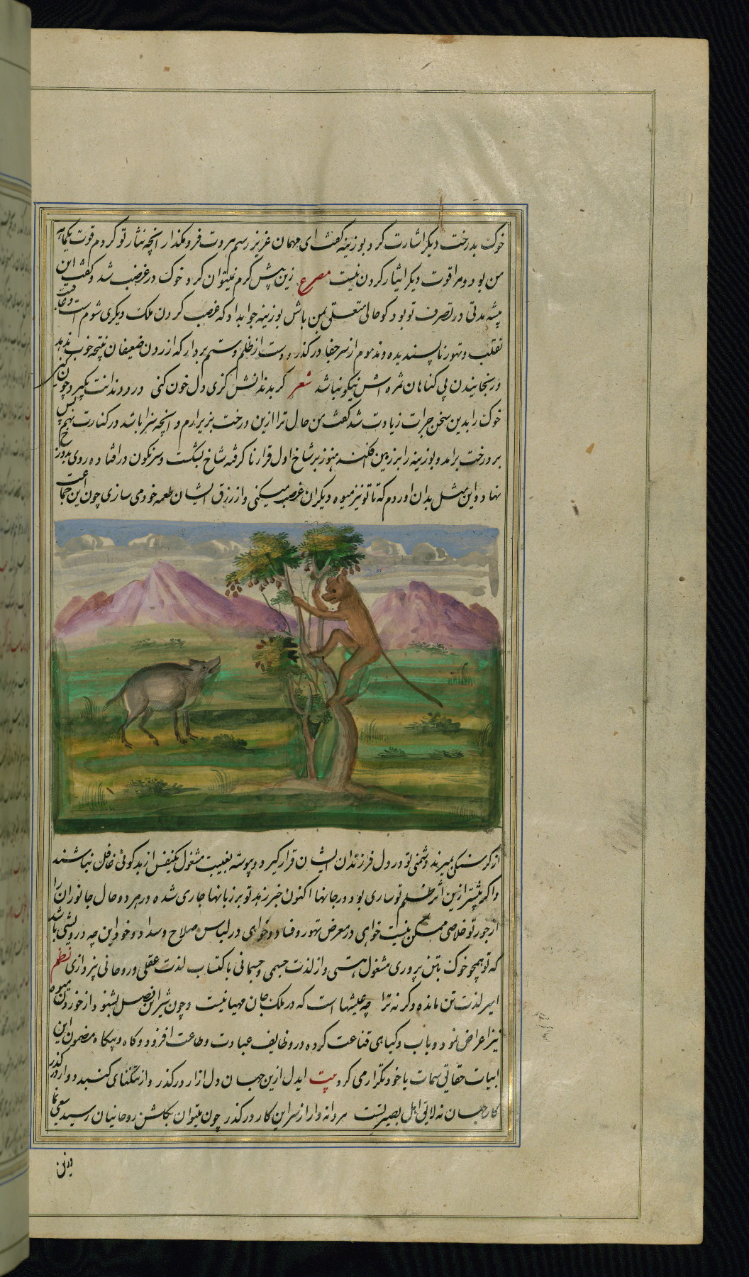 - Title: An old monkey on a fig tree is visited by a boar who demands a share of the fruit
