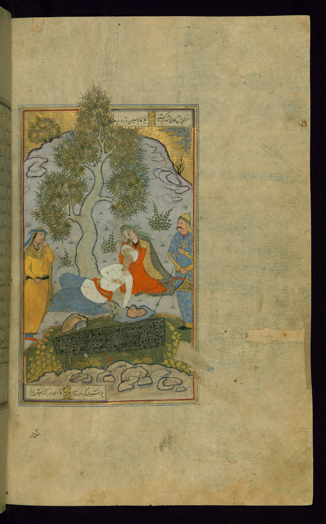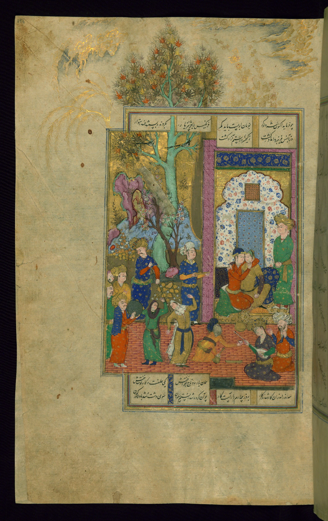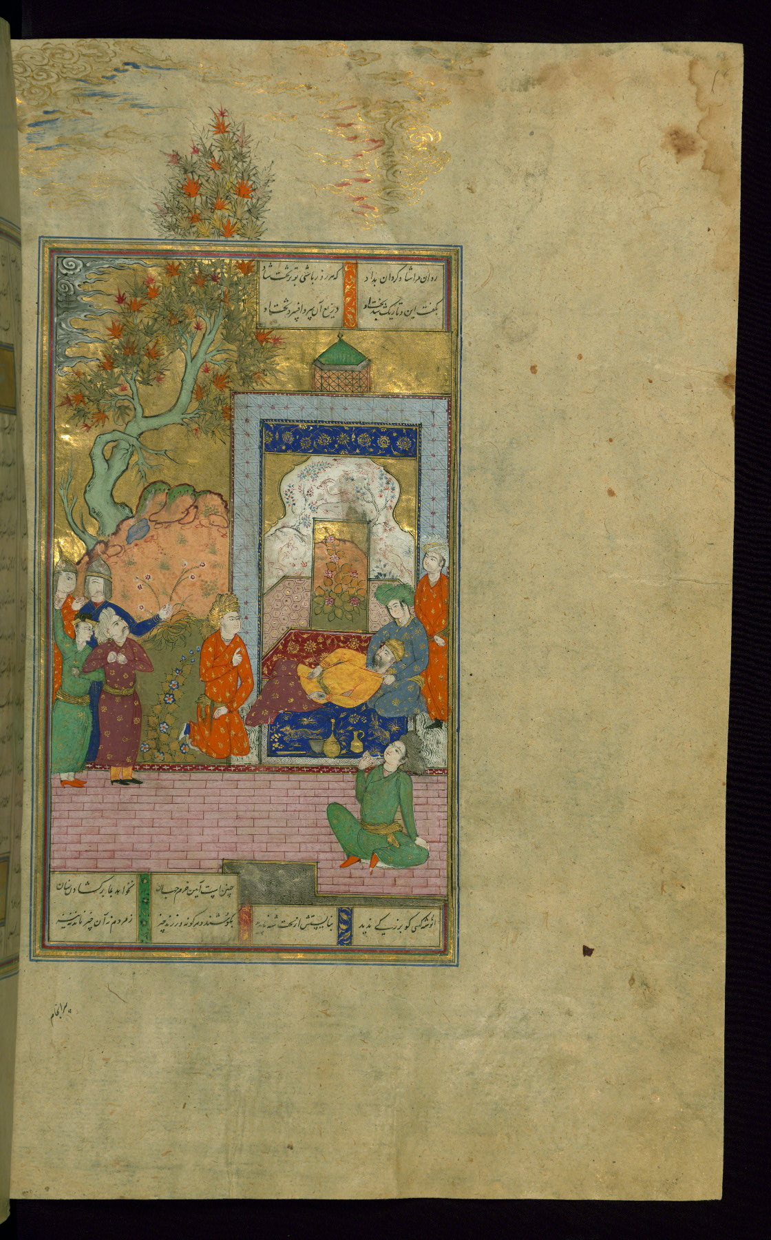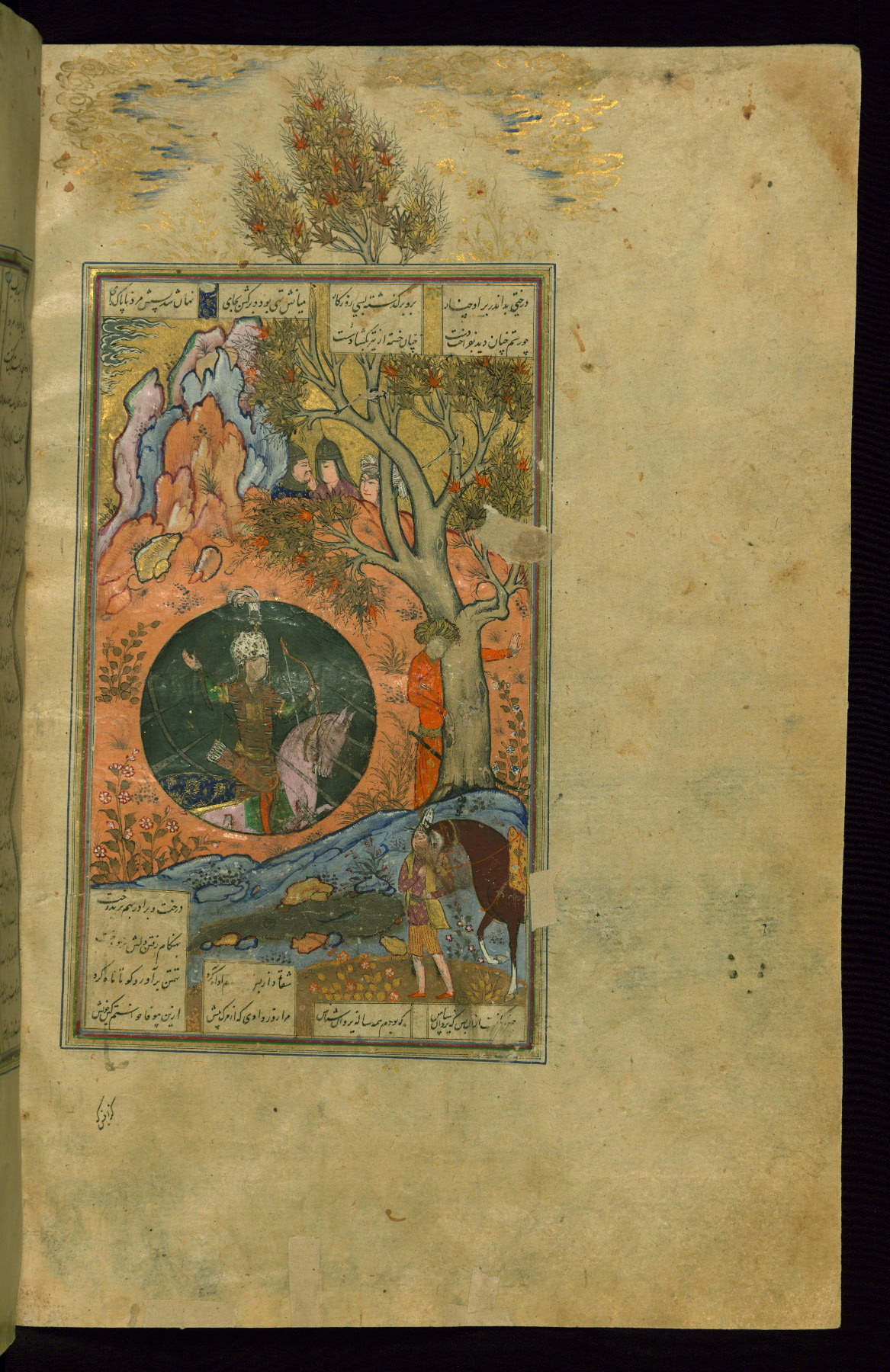 - Title: Munzir introduces Bahrām Gūr to two maidens, one a servant, the other a harpist