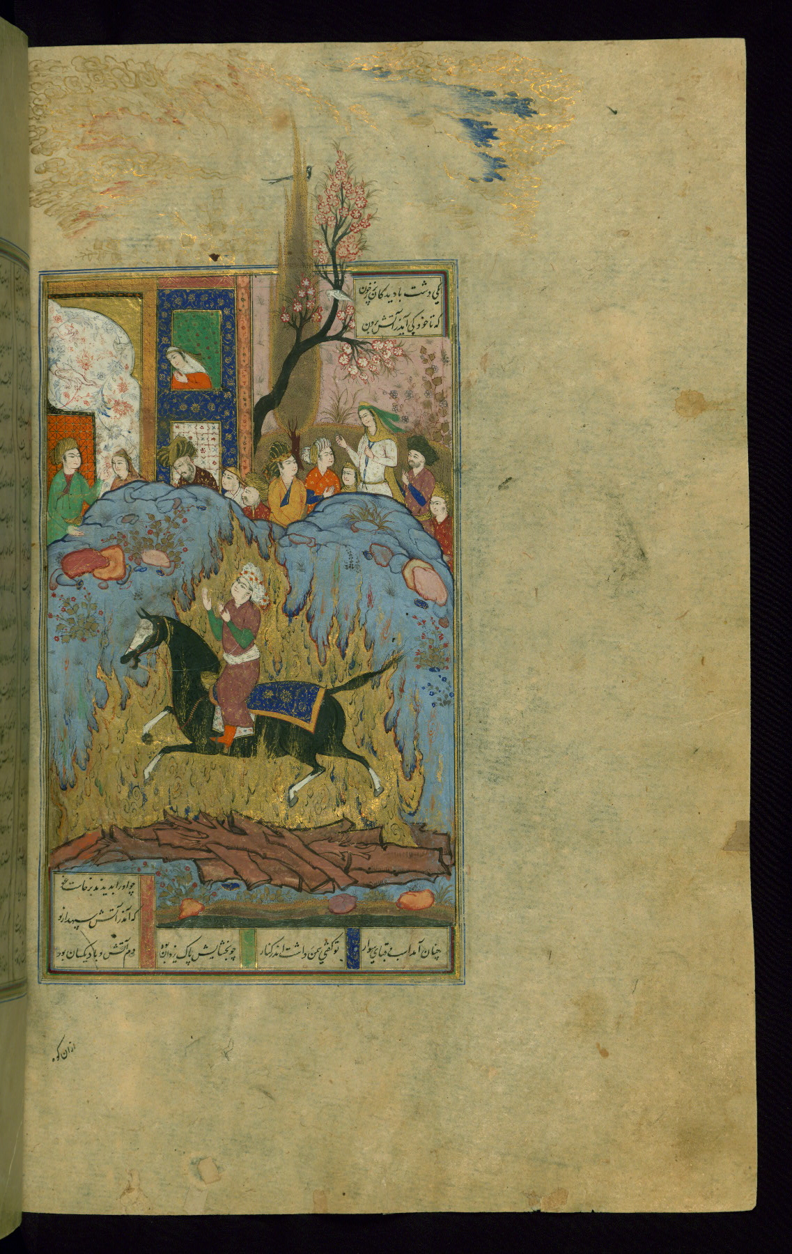 - Label: This incipit page with illuminated headpiece introduces the story of Siyāvush.