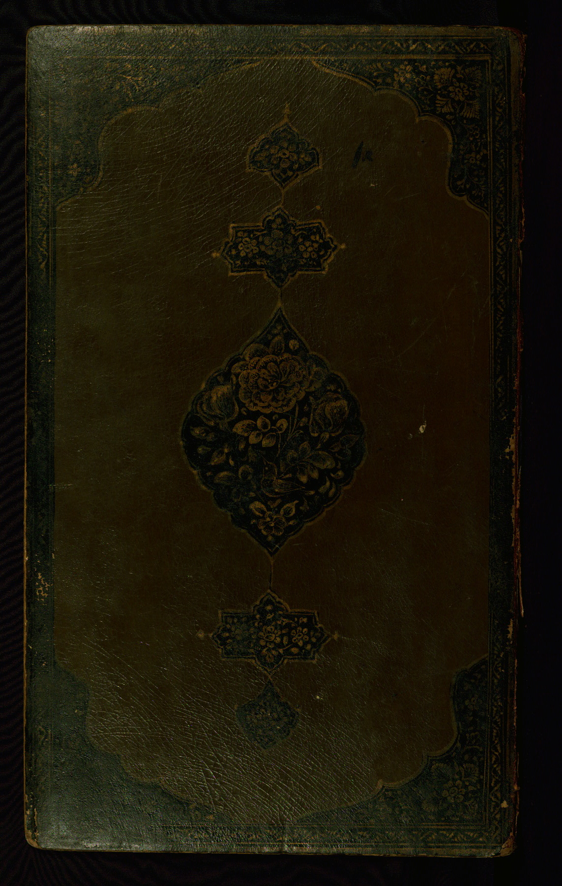 - Label: This black lacquer binding with central oval and pendants is decorated with gold flowers and dates to the thirteenth century AH / nineteenth century CE.