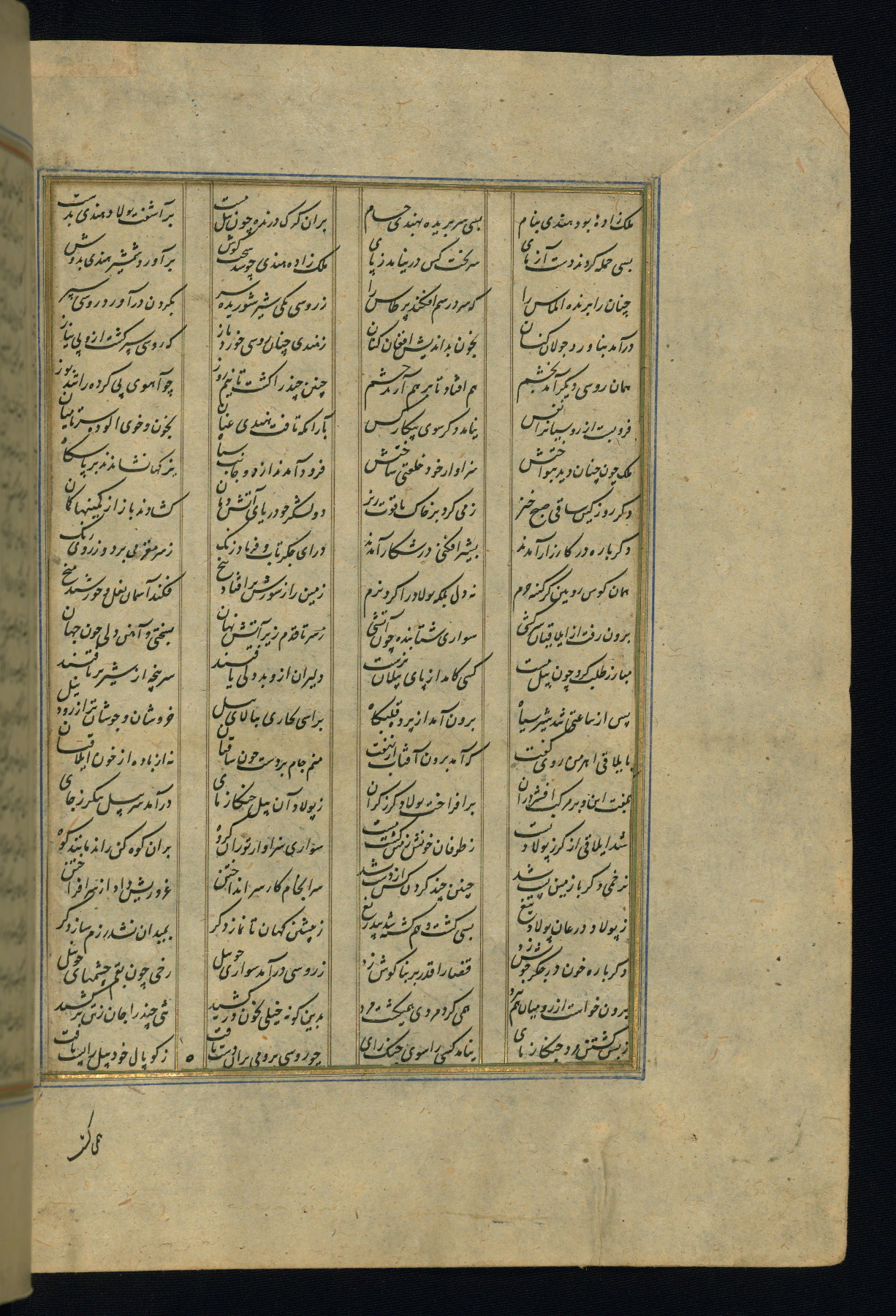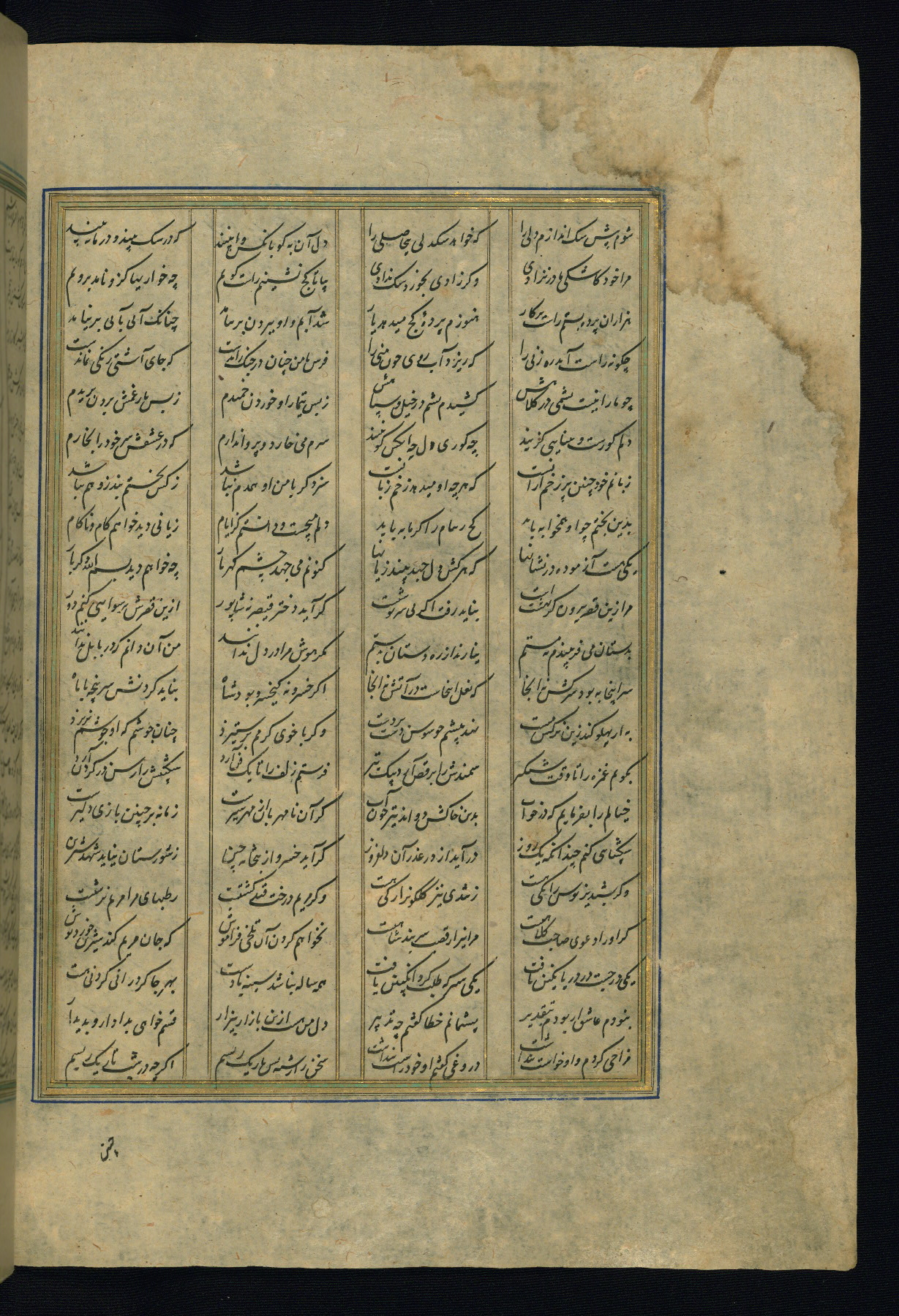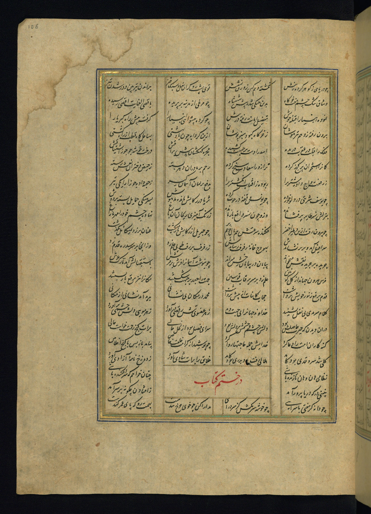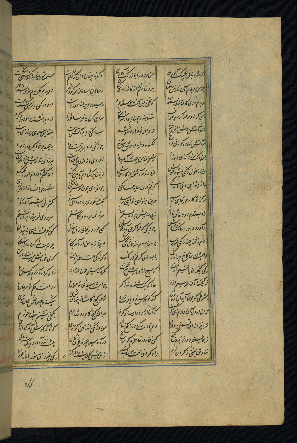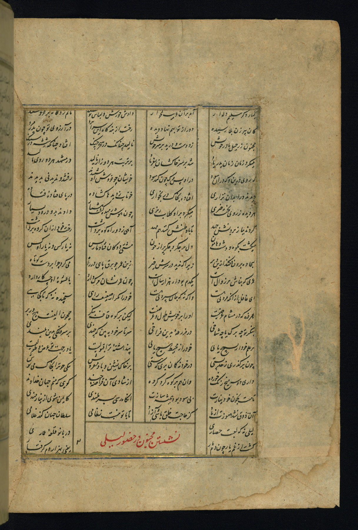 This is an illuminated and illustrated copy of the Khamsah (quintet) by Niẓāmī Ganjavī (d. 605 AH / 1209 CE), completed by Ḥabīb Allāh ibn ʿAlī ibn Ḥusām in Safavid Iran in Rabīʿ II 971 AH / 1563 CE. Illuminated titlepieces introduce the five poems, and there are thirty illustrations, the majority of which are attributable to thirteenth century AH / nineteenth CE Qajar Iran. Ownership notes and seals indicating the provenance of this manuscript are found throughout the codex (fols. 1a, 2a, 153a, 177a, 233a, 349a, and 351a). The binding is not original to the manuscript.