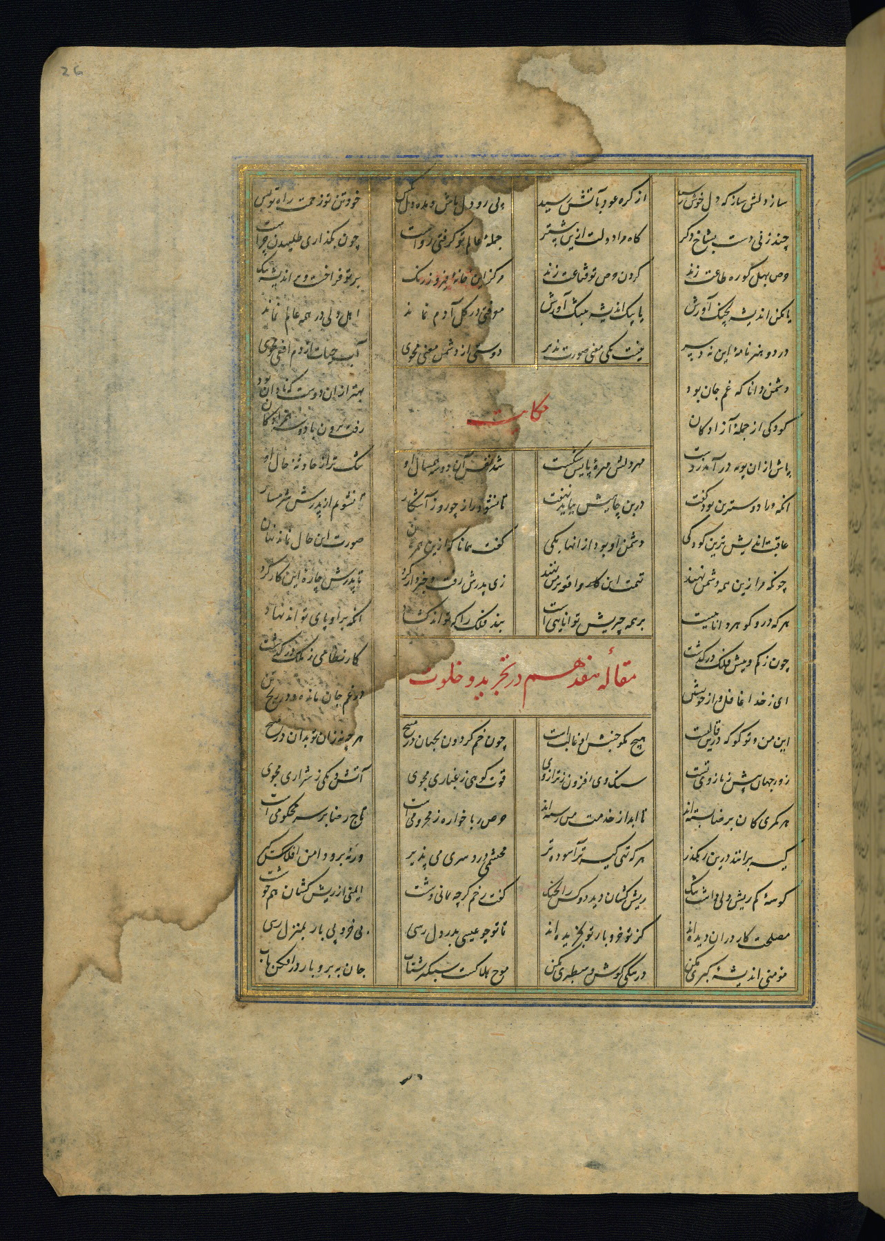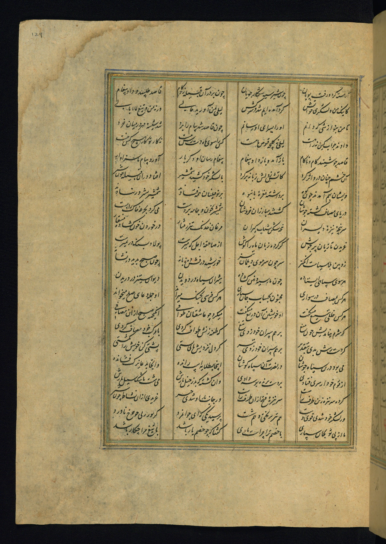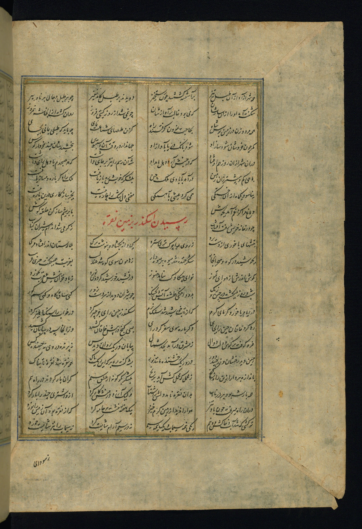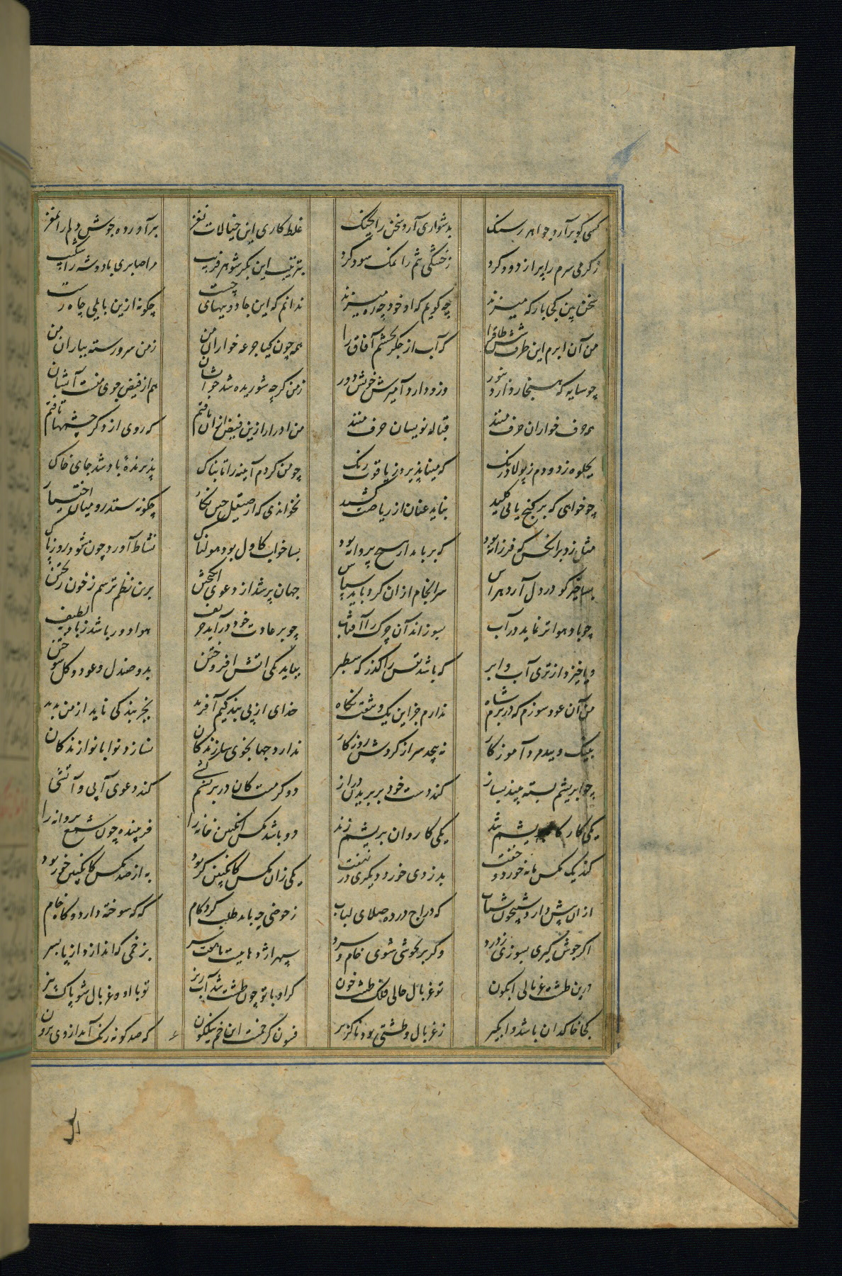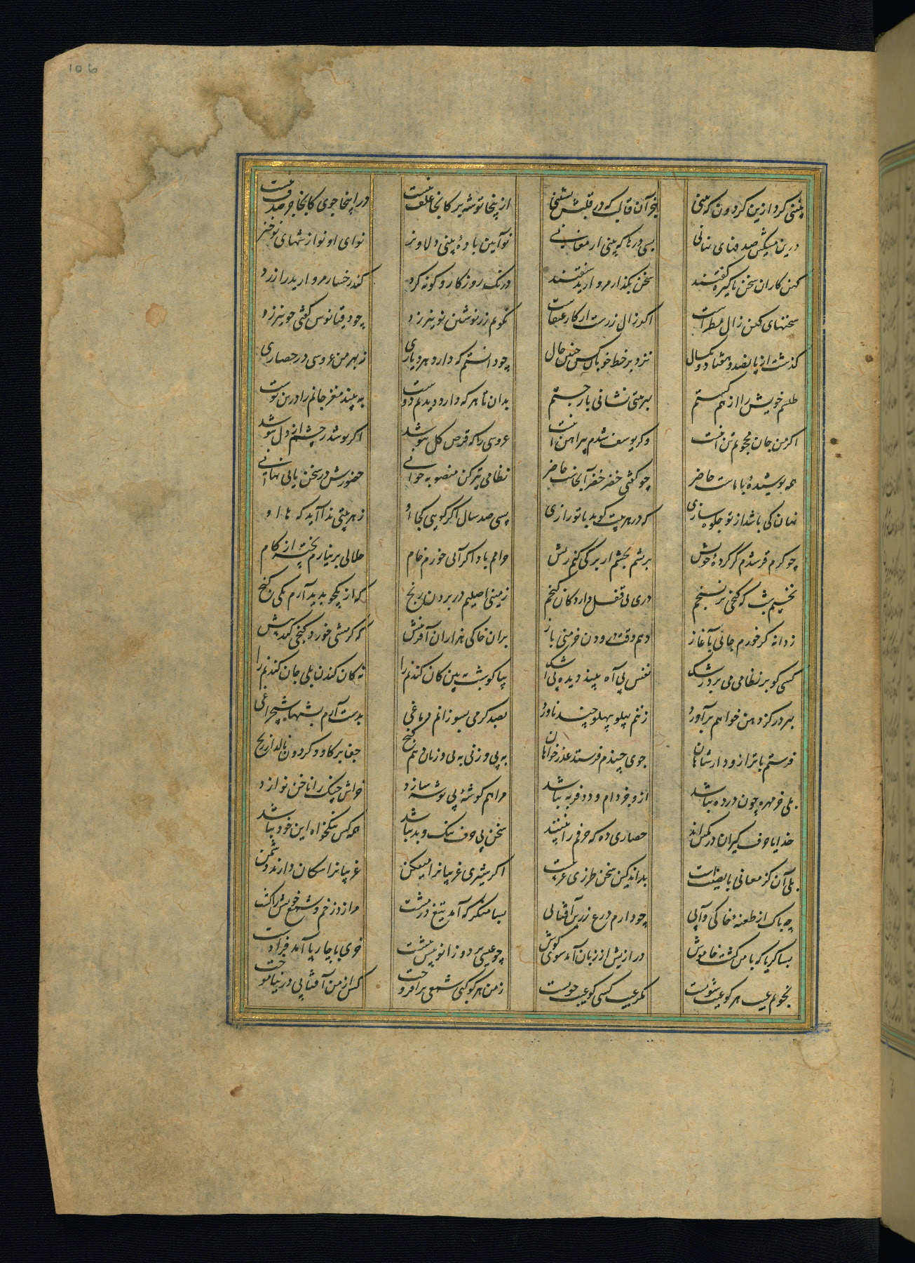 This is an illuminated and illustrated copy of the Khamsah (quintet) by Niẓāmī Ganjavī (d. 605 AH / 1209 CE), completed by Ḥabīb Allāh ibn ʿAlī ibn Ḥusām in Safavid Iran in Rabīʿ II 971 AH / 1563 CE. Illuminated titlepieces introduce the five poems, and there are thirty illustrations, the majority of which are attributable to thirteenth century AH / nineteenth CE Qajar Iran. Ownership notes and seals indicating the provenance of this manuscript are found throughout the codex (fols. 1a, 2a, 153a, 177a, 233a, 349a, and 351a). The binding is not original to the manuscript.