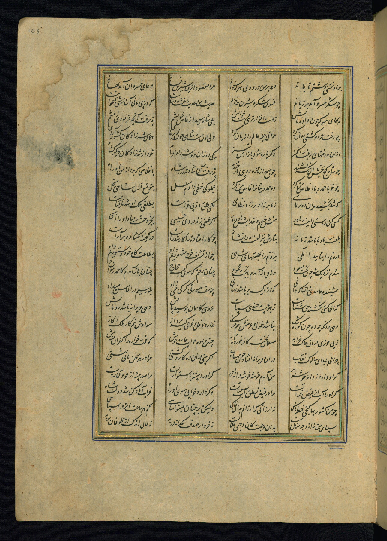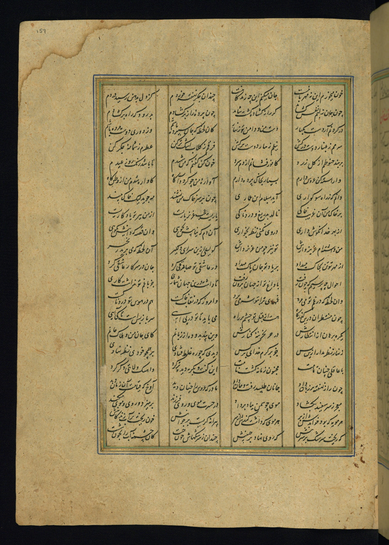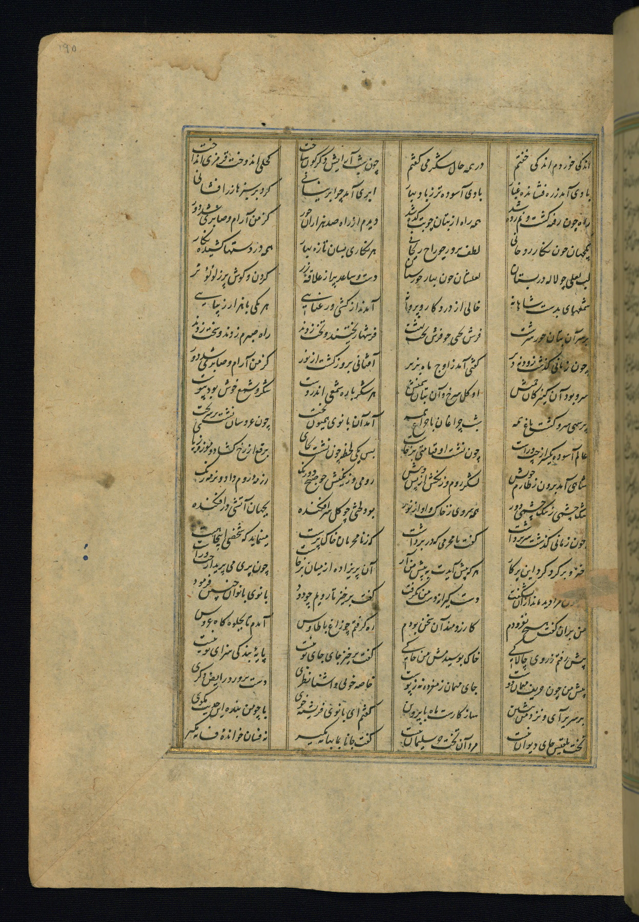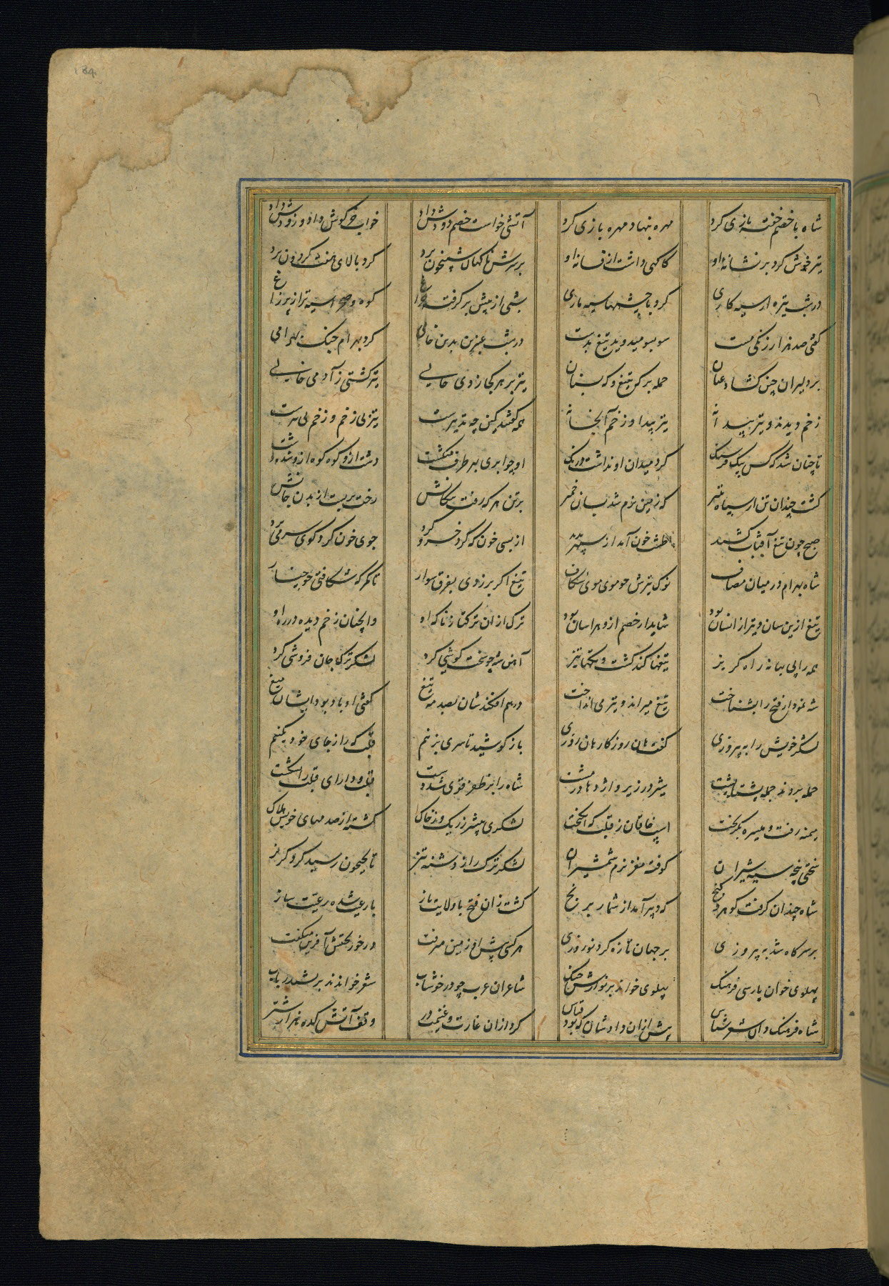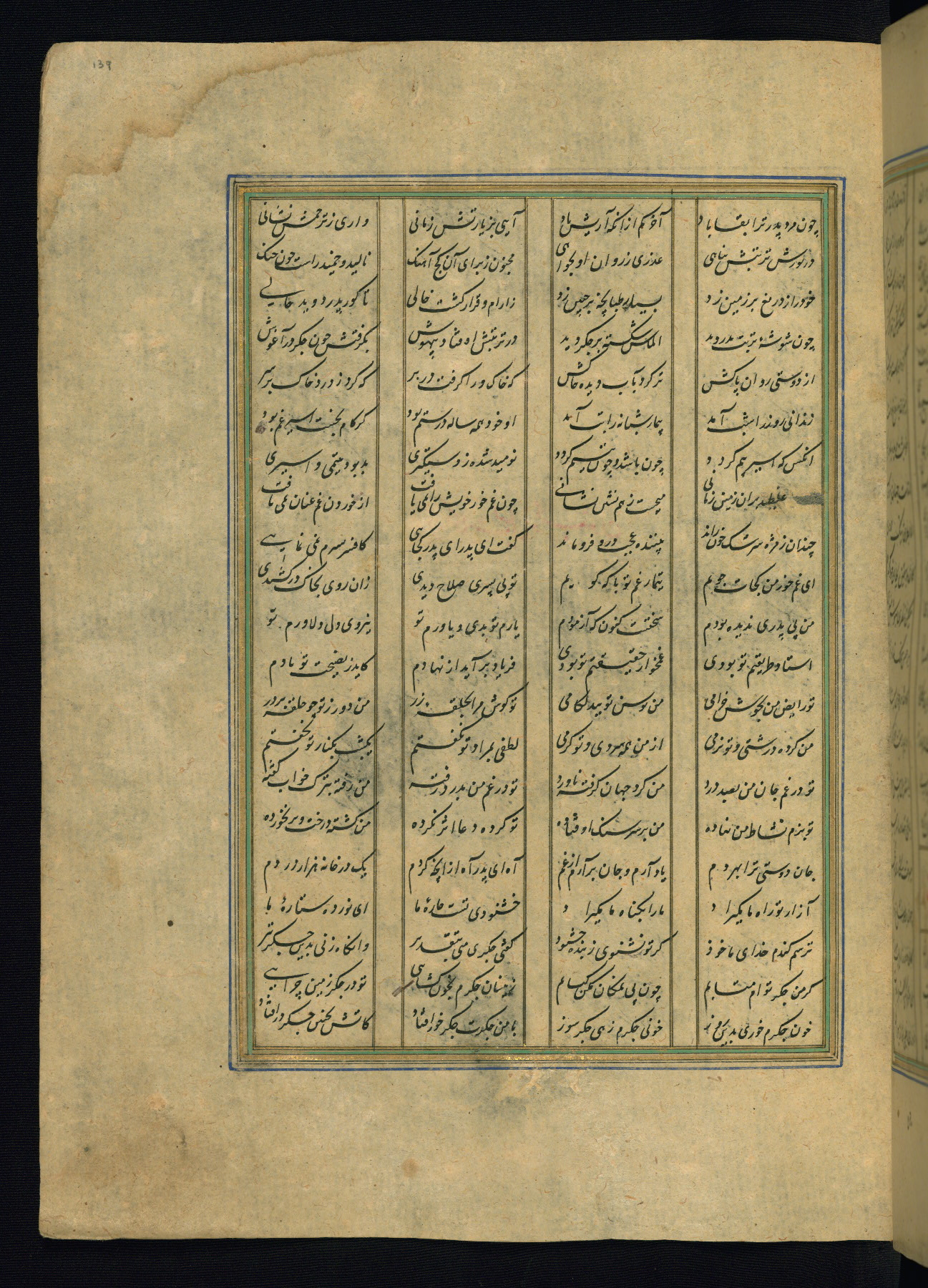 This is an illuminated and illustrated copy of the Khamsah (quintet) by Niẓāmī Ganjavī (d. 605 AH / 1209 CE), completed by Ḥabīb Allāh ibn ʿAlī ibn Ḥusām in Safavid Iran in Rabīʿ II 971 AH / 1563 CE. Illuminated titlepieces introduce the five poems, and there are thirty illustrations, the majority of which are attributable to thirteenth century AH / nineteenth CE Qajar Iran. Ownership notes and seals indicating the provenance of this manuscript are found throughout the codex (fols. 1a, 2a, 153a, 177a, 233a, 349a, and 351a). The binding is not original to the manuscript.