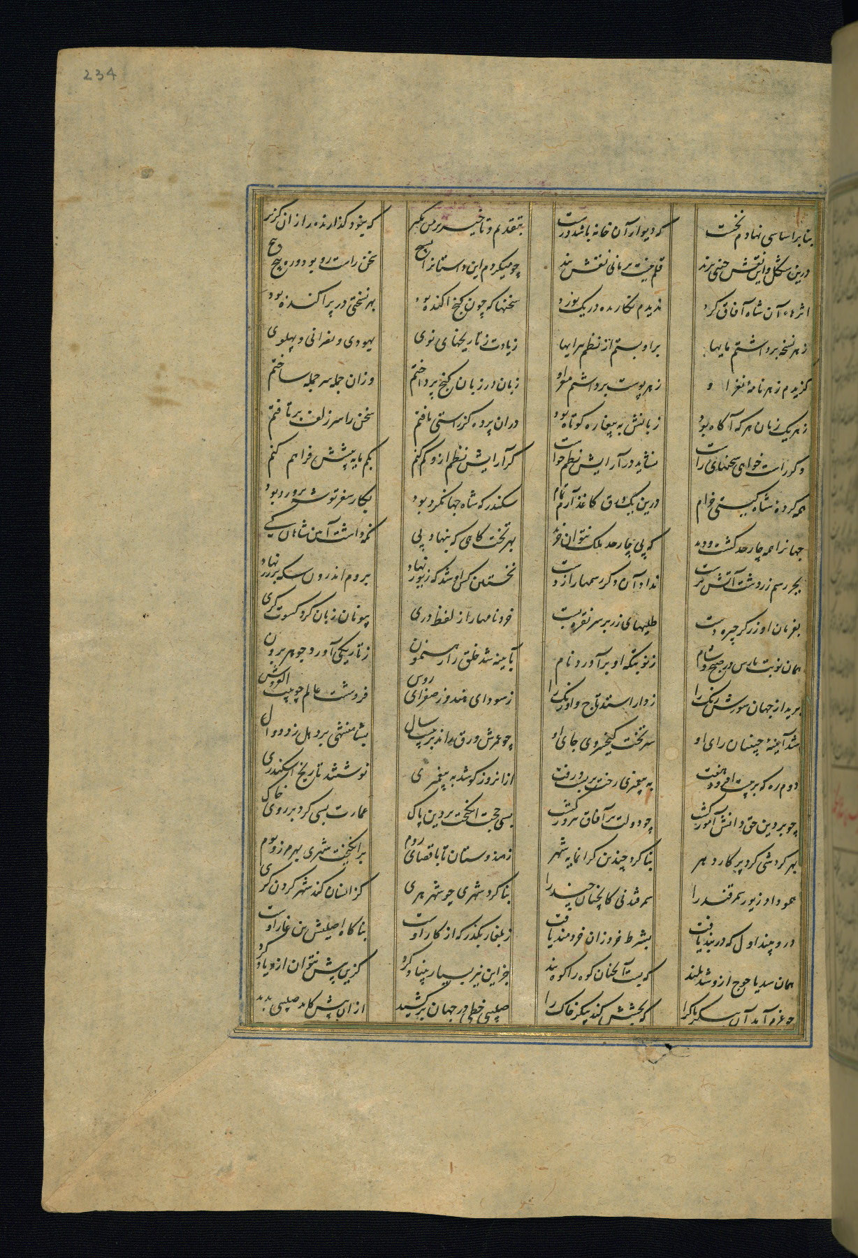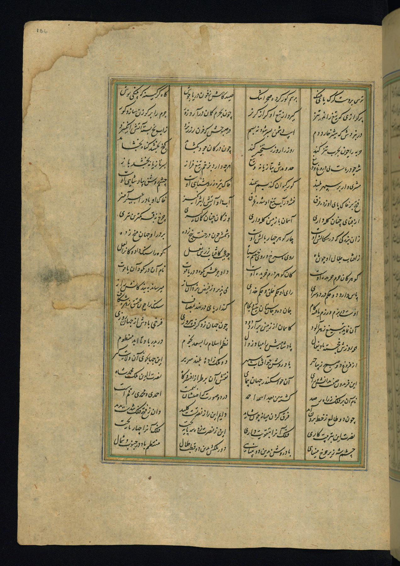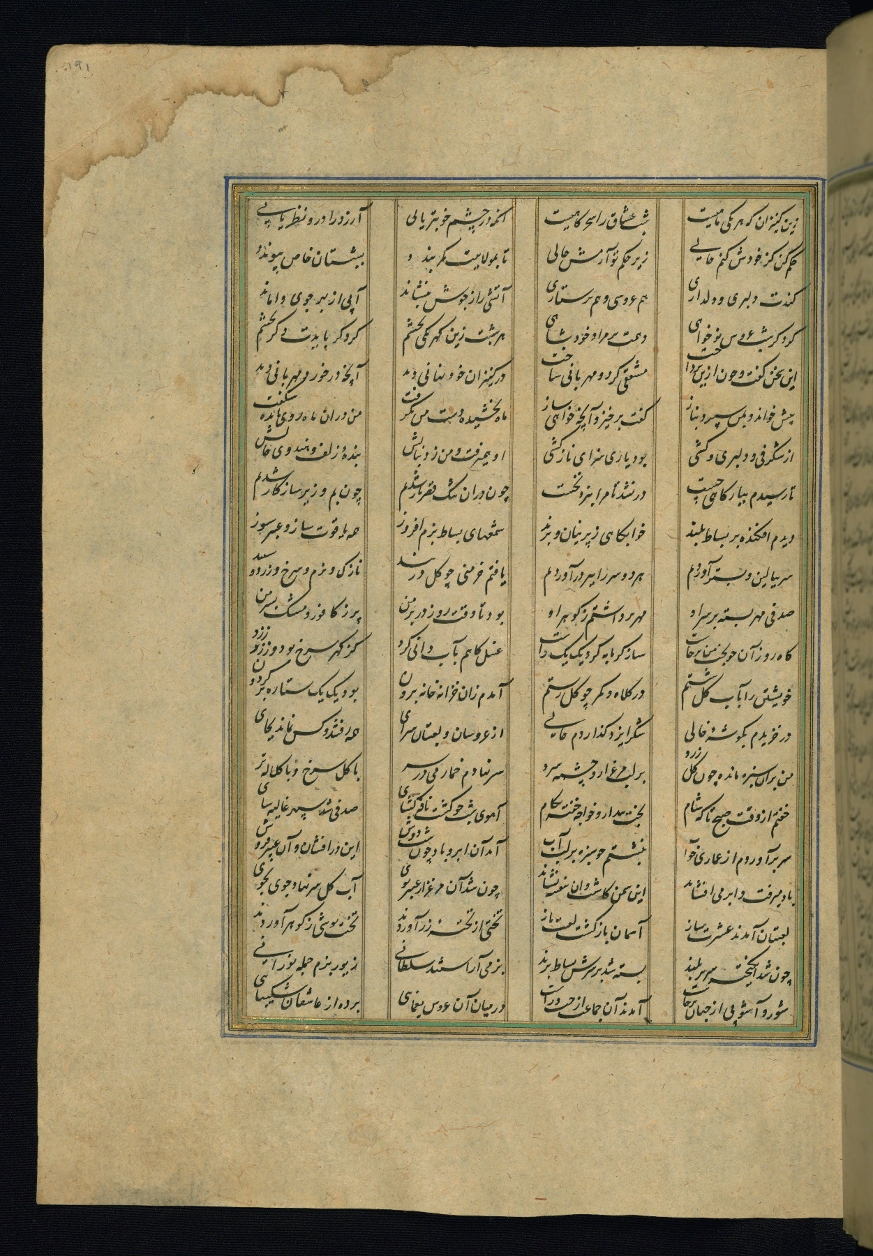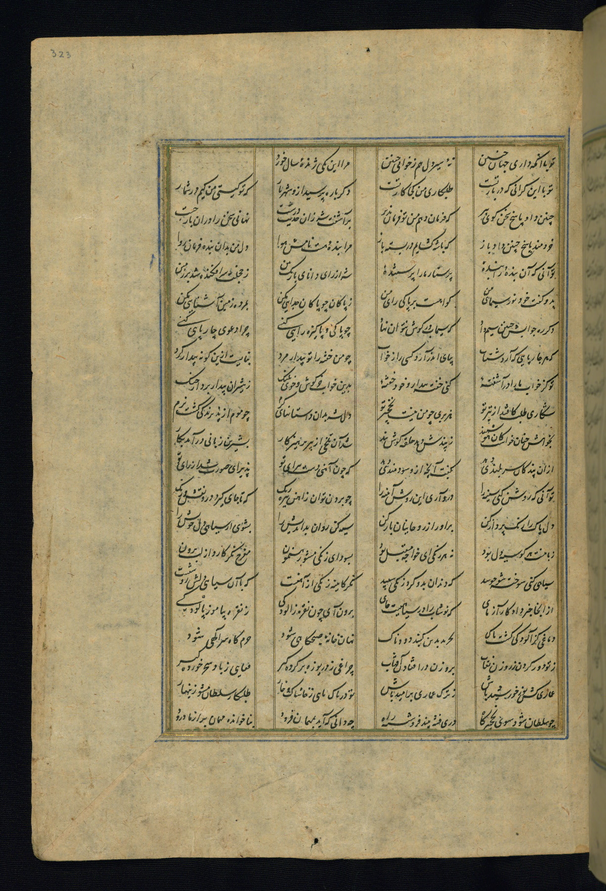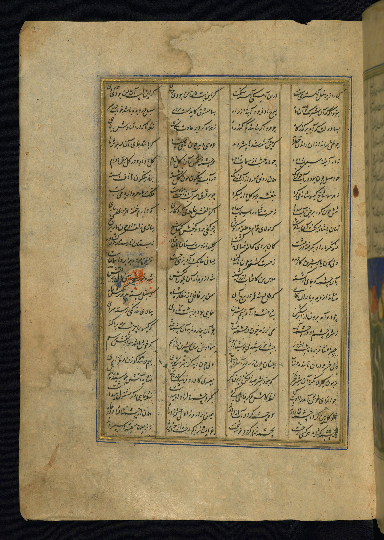 This is an illuminated and illustrated copy of the Khamsah (quintet) by Niẓāmī Ganjavī (d. 605 AH / 1209 CE), completed by Ḥabīb Allāh ibn ʿAlī ibn Ḥusām in Safavid Iran in Rabīʿ II 971 AH / 1563 CE. Illuminated titlepieces introduce the five poems, and there are thirty illustrations, the majority of which are attributable to thirteenth century AH / nineteenth CE Qajar Iran. Ownership notes and seals indicating the provenance of this manuscript are found throughout the codex (fols. 1a, 2a, 153a, 177a, 233a, 349a, and 351a). The binding is not original to the manuscript.