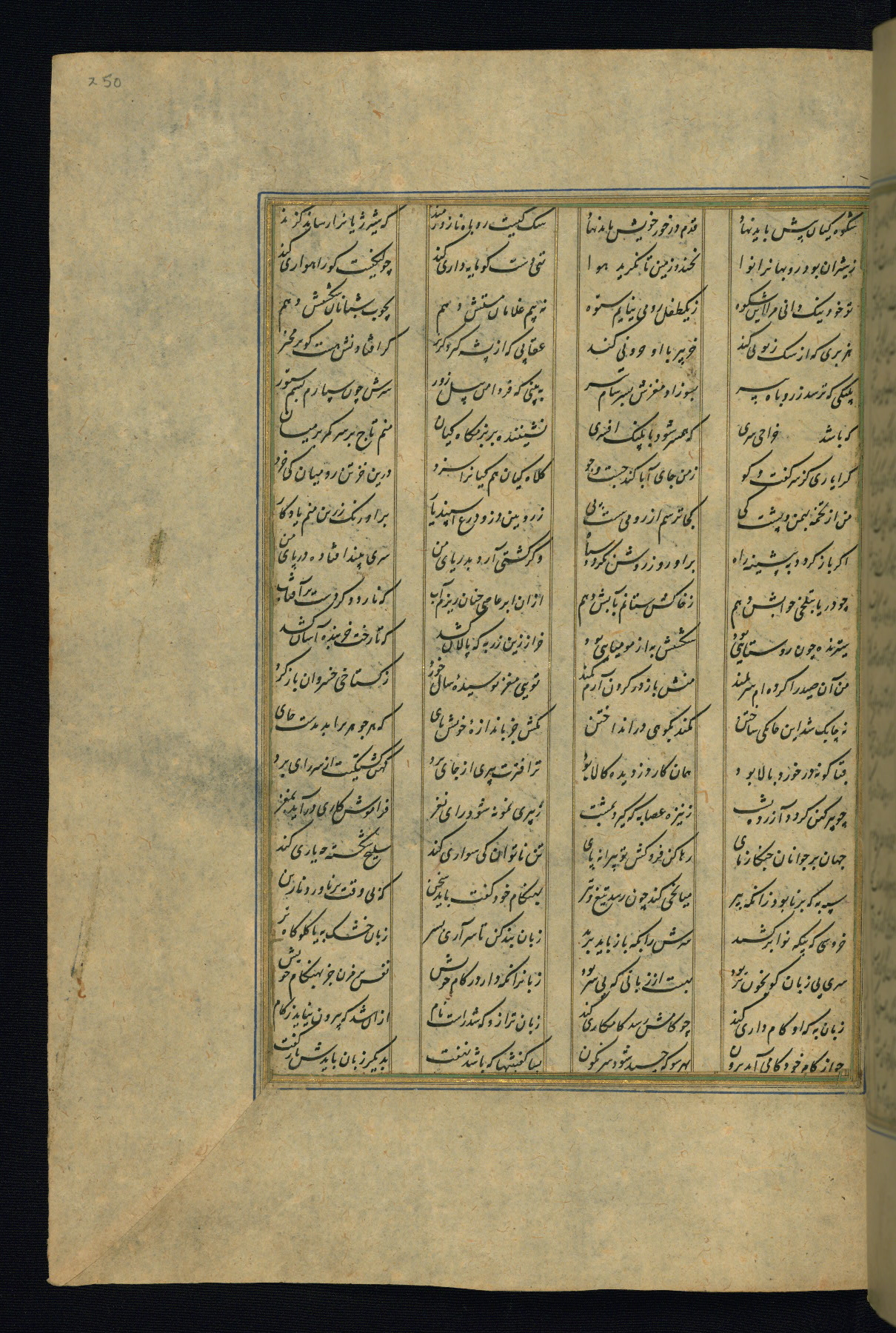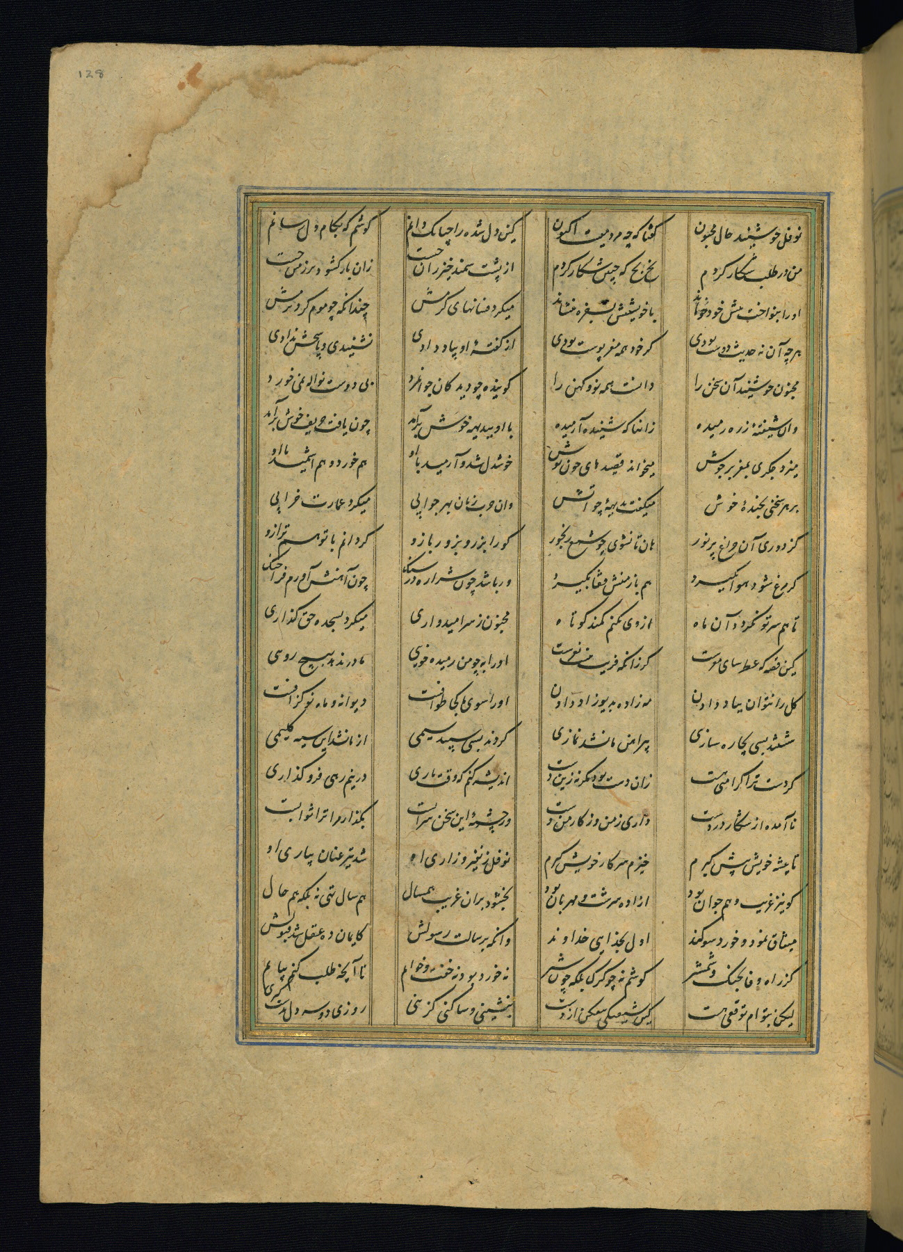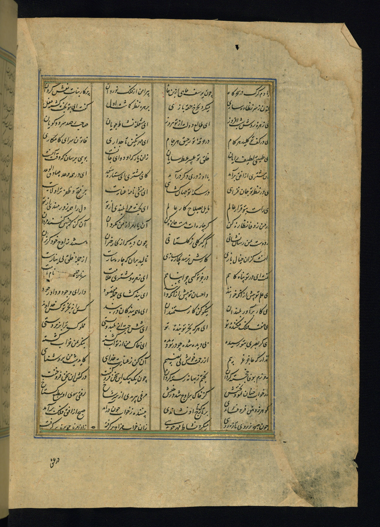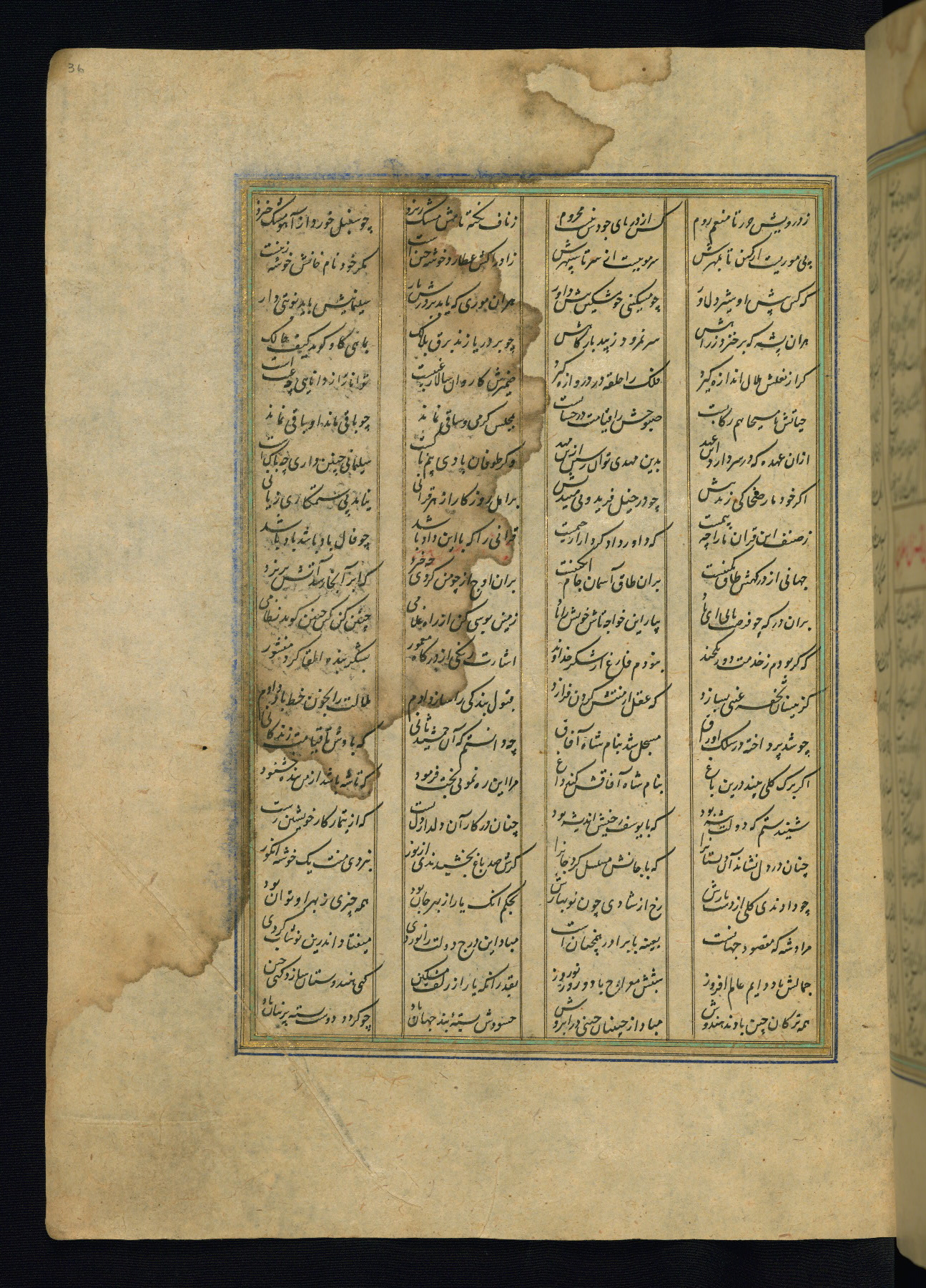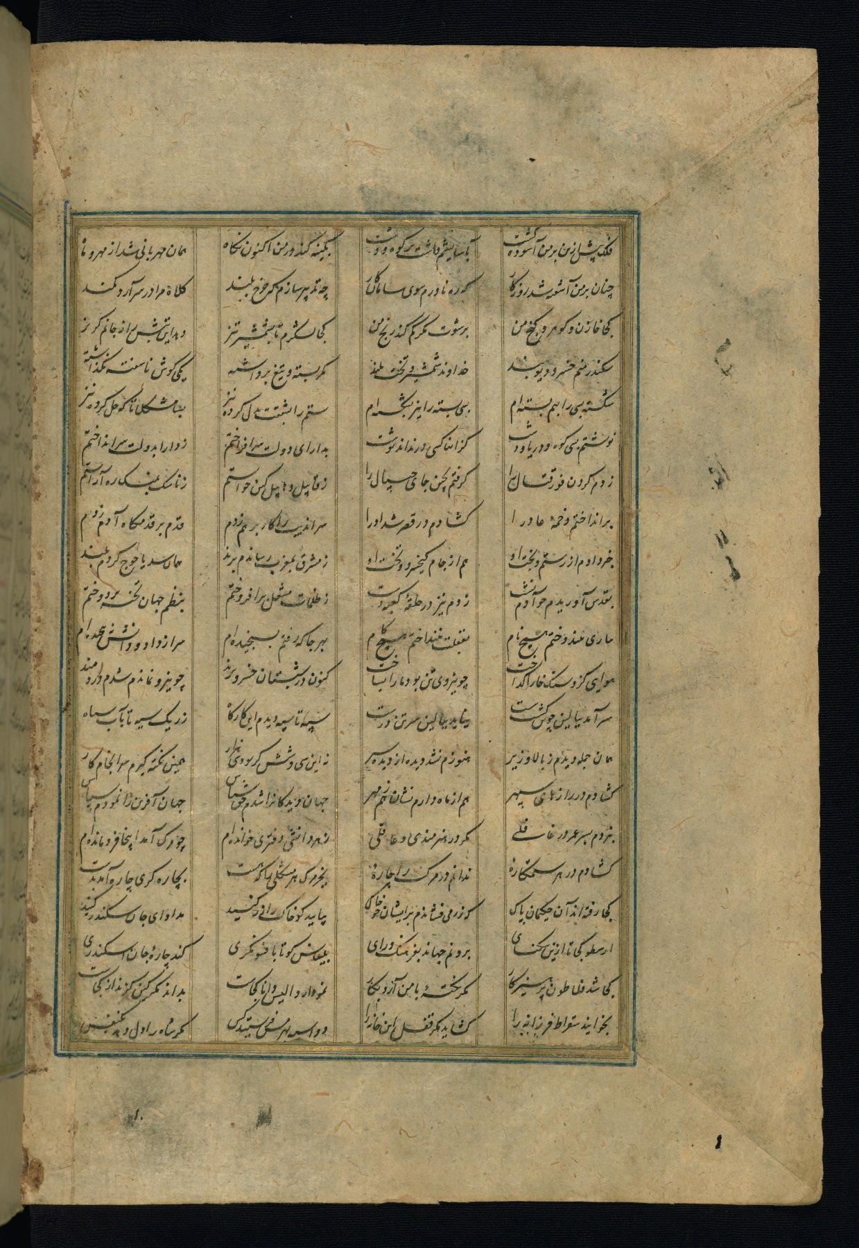 This is an illuminated and illustrated copy of the Khamsah (quintet) by Niẓāmī Ganjavī (d. 605 AH / 1209 CE), completed by Ḥabīb Allāh ibn ʿAlī ibn Ḥusām in Safavid Iran in Rabīʿ II 971 AH / 1563 CE. Illuminated titlepieces introduce the five poems, and there are thirty illustrations, the majority of which are attributable to thirteenth century AH / nineteenth CE Qajar Iran. Ownership notes and seals indicating the provenance of this manuscript are found throughout the codex (fols. 1a, 2a, 153a, 177a, 233a, 349a, and 351a). The binding is not original to the manuscript.