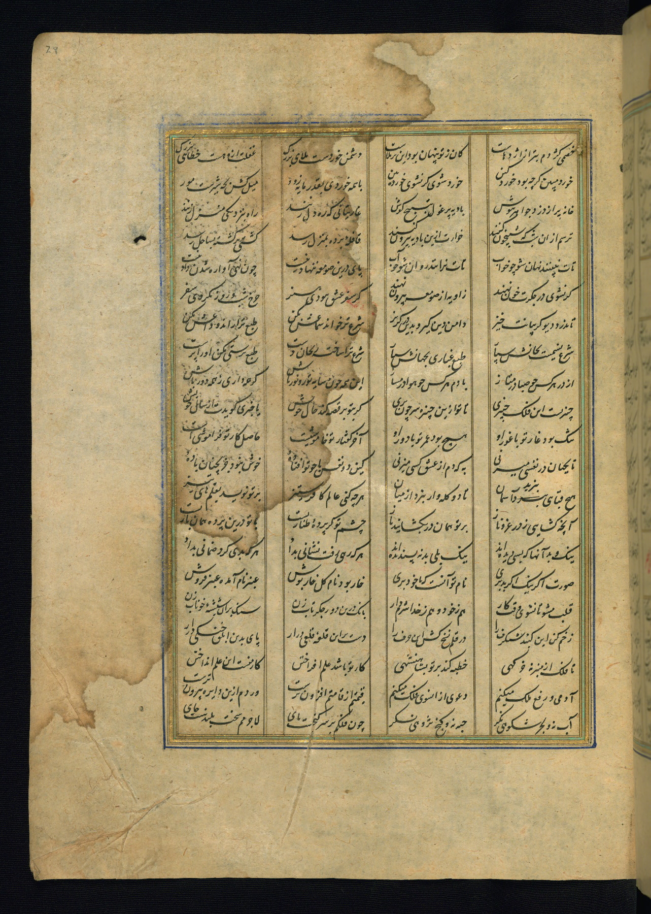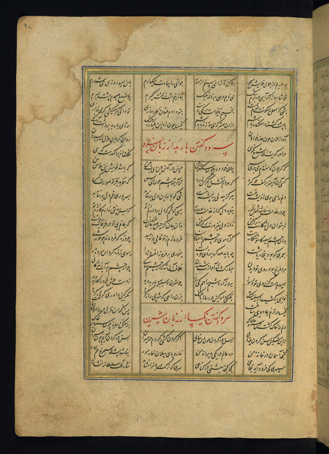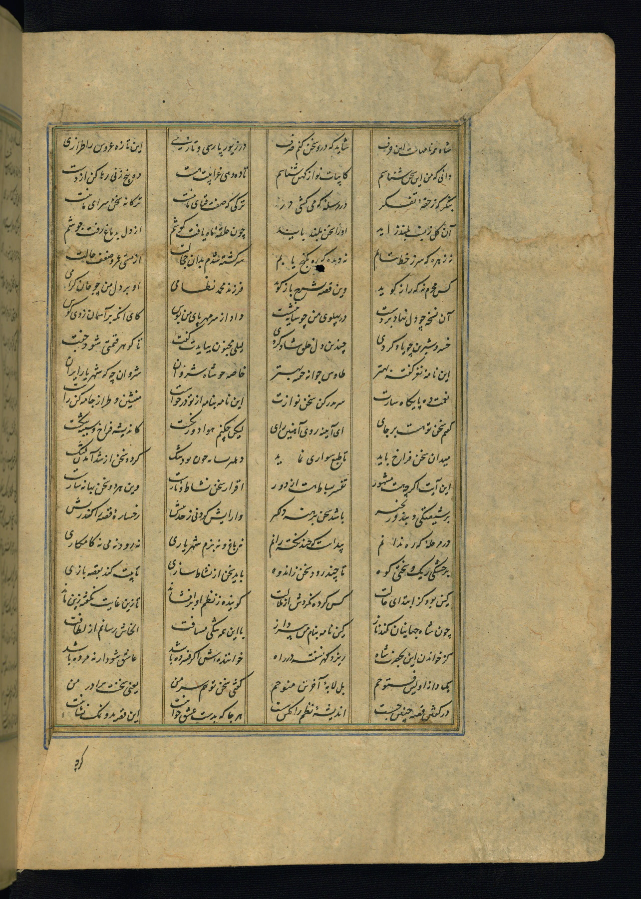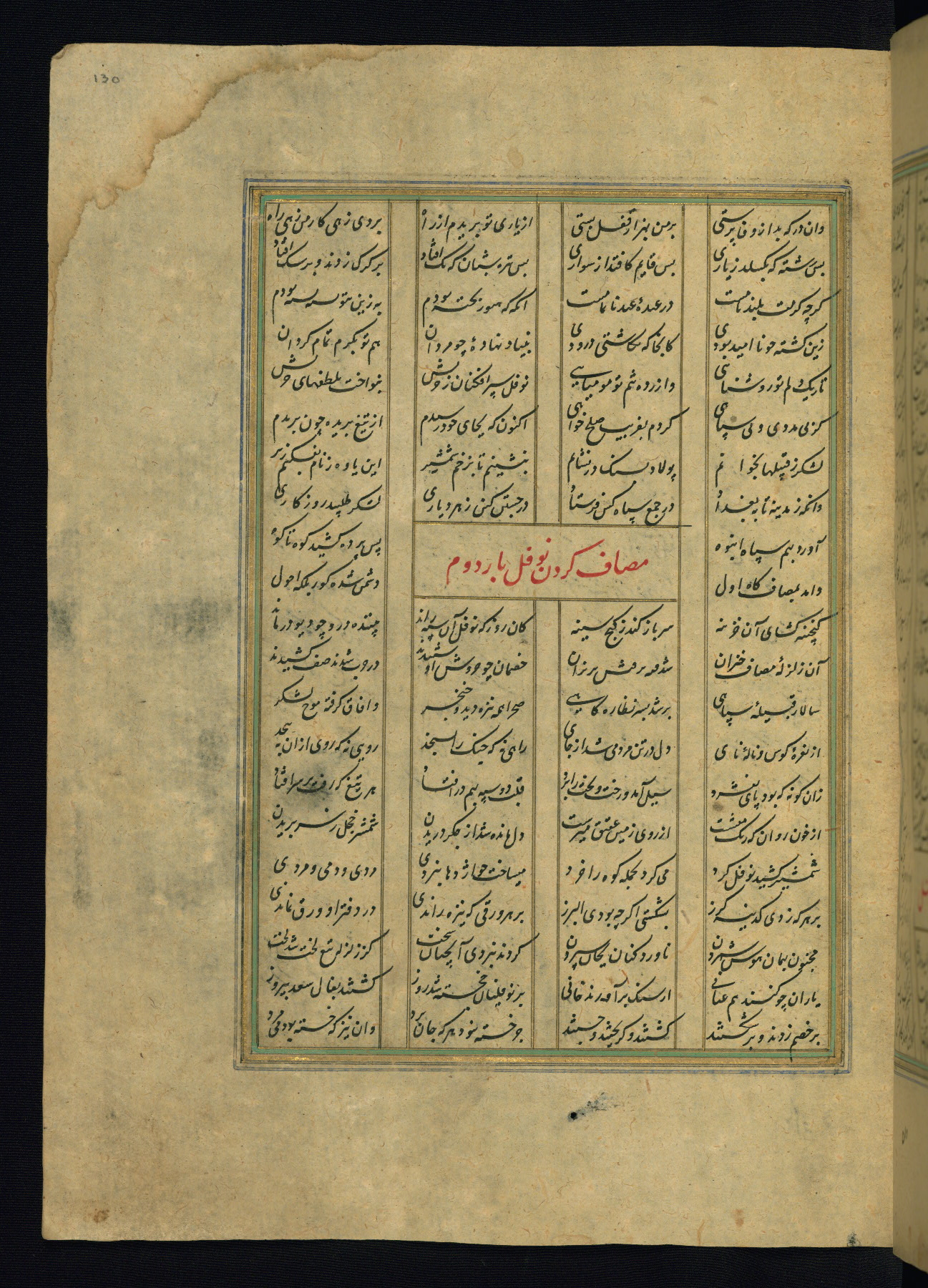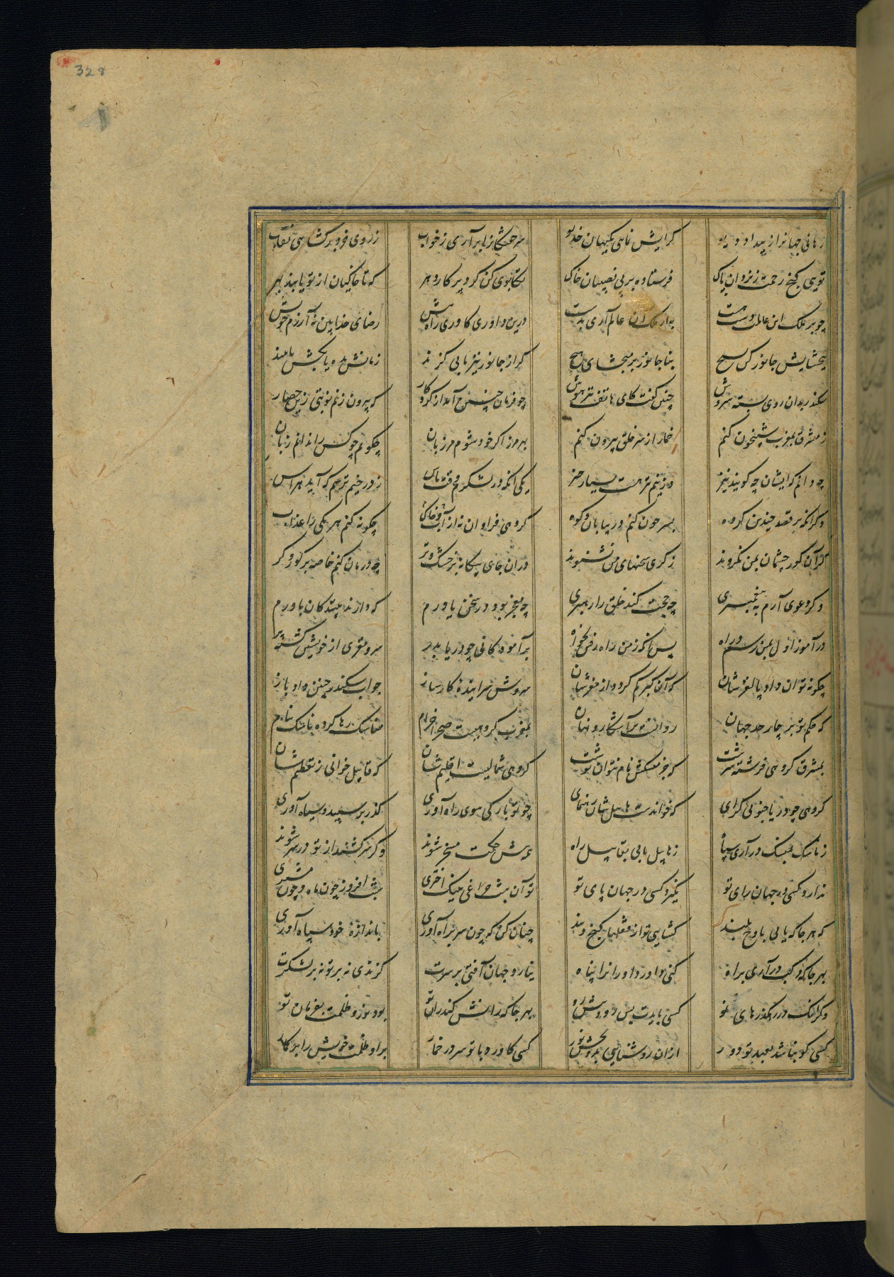 This is an illuminated and illustrated copy of the Khamsah (quintet) by Niẓāmī Ganjavī (d. 605 AH / 1209 CE), completed by Ḥabīb Allāh ibn ʿAlī ibn Ḥusām in Safavid Iran in Rabīʿ II 971 AH / 1563 CE. Illuminated titlepieces introduce the five poems, and there are thirty illustrations, the majority of which are attributable to thirteenth century AH / nineteenth CE Qajar Iran. Ownership notes and seals indicating the provenance of this manuscript are found throughout the codex (fols. 1a, 2a, 153a, 177a, 233a, 349a, and 351a). The binding is not original to the manuscript.