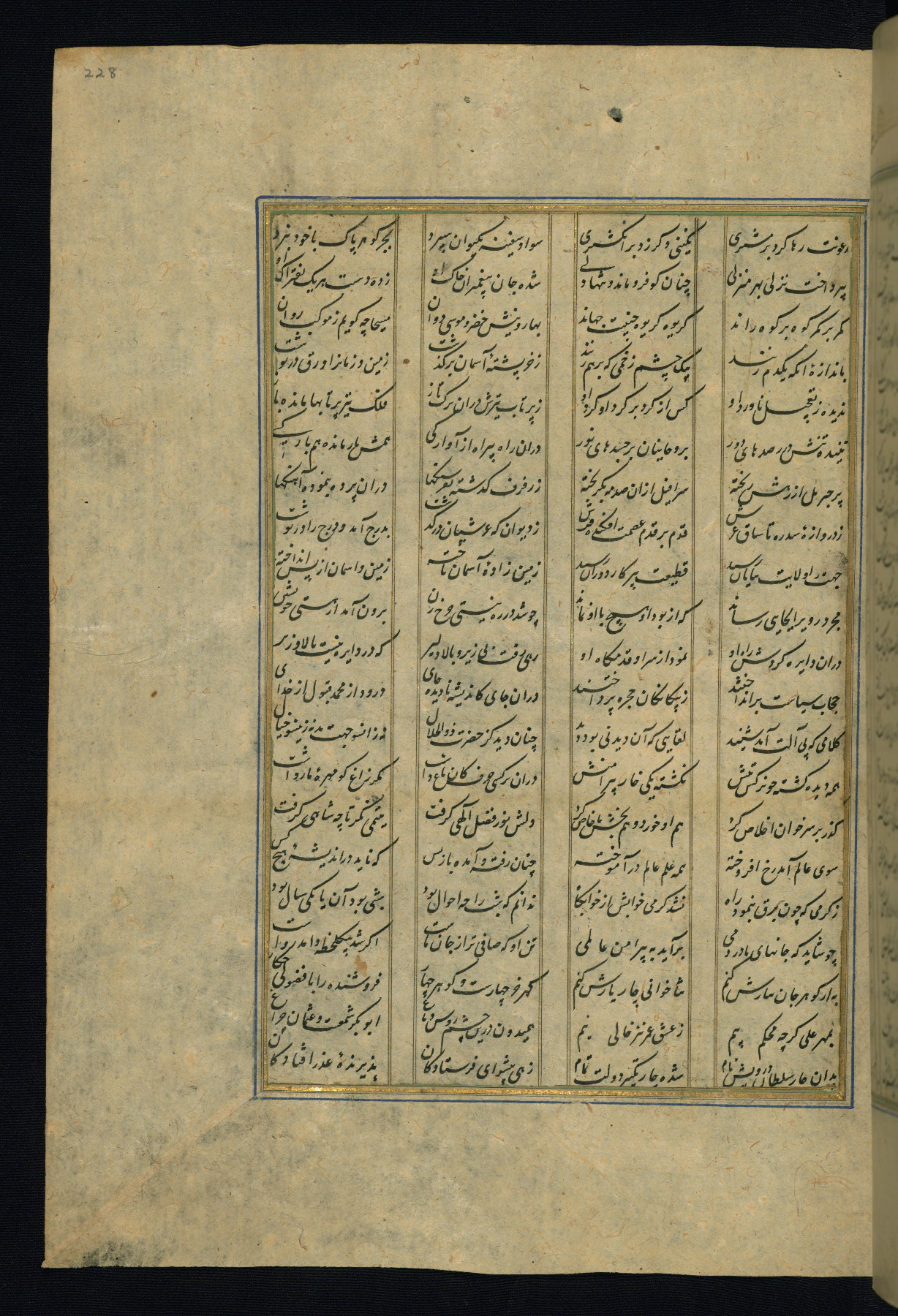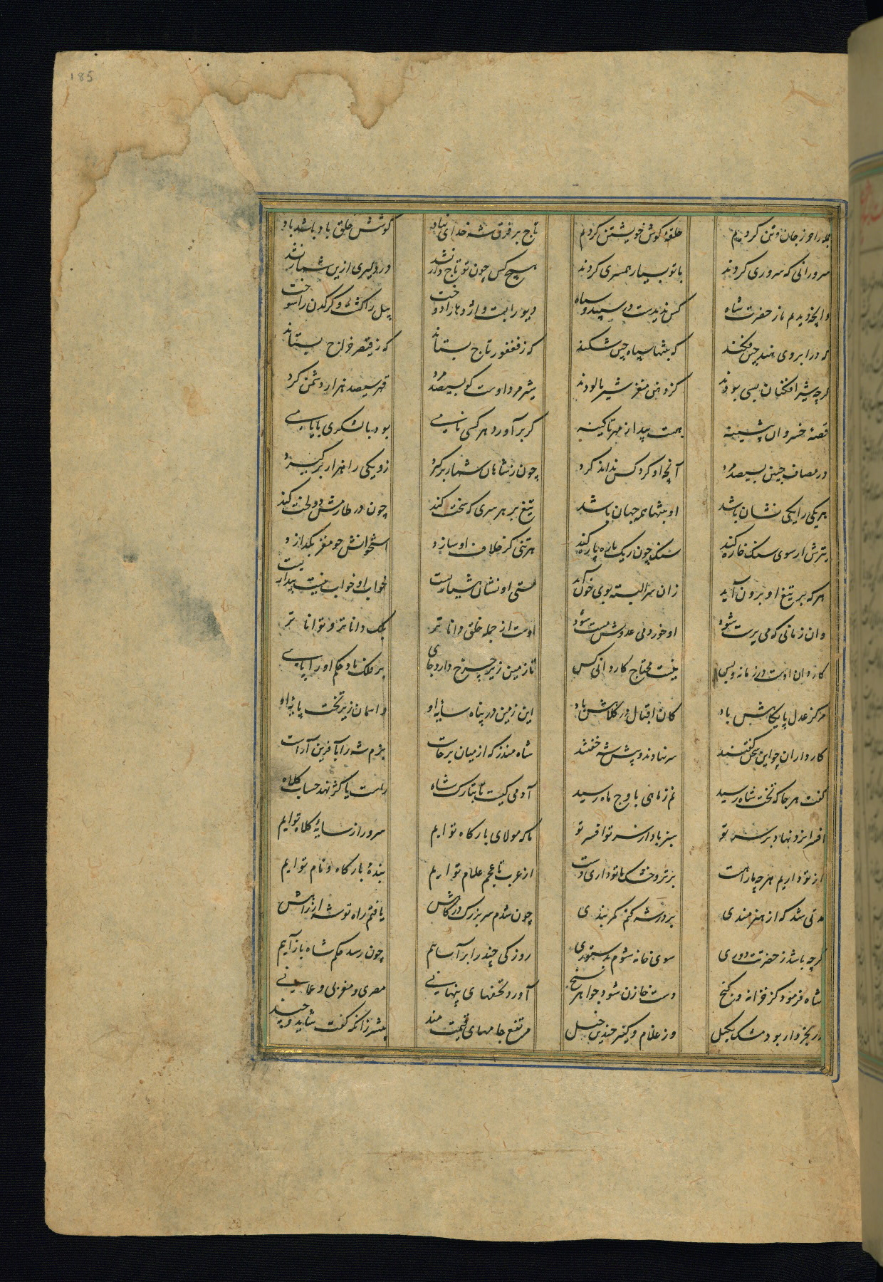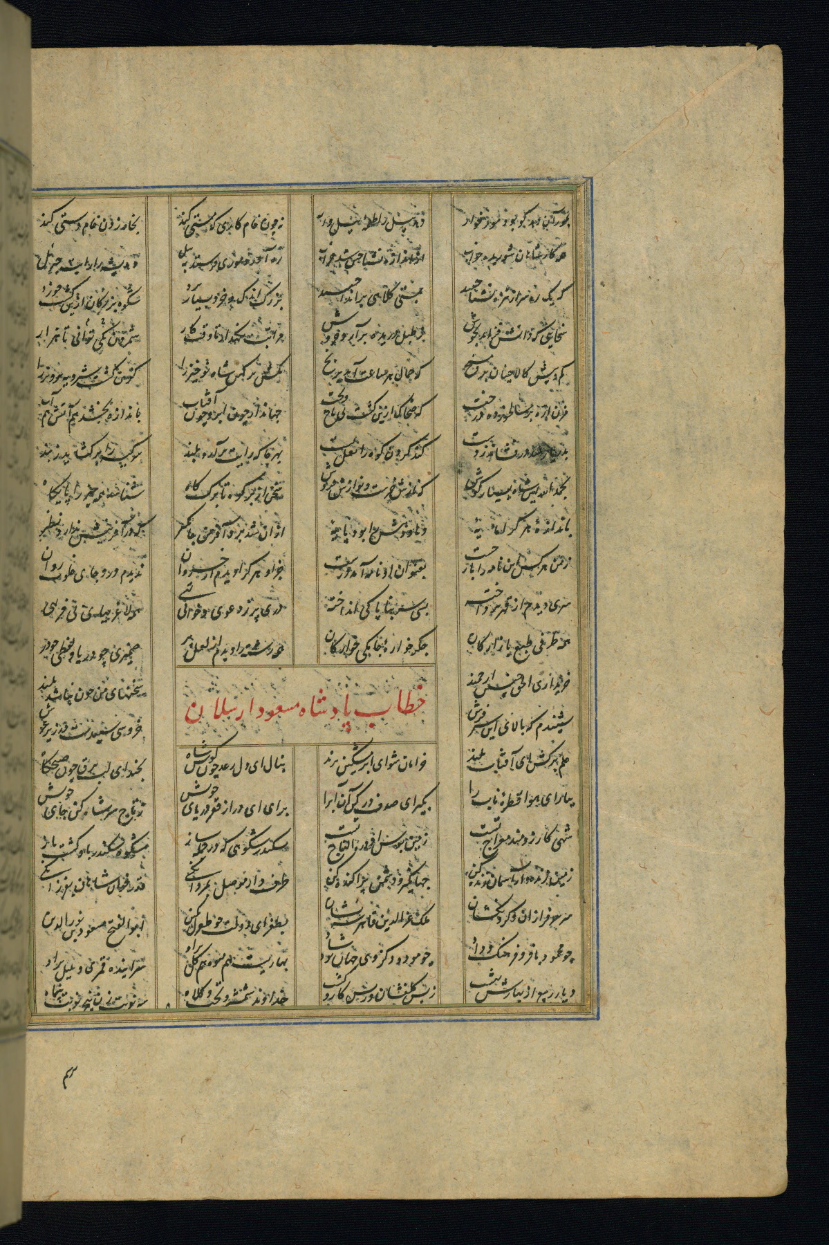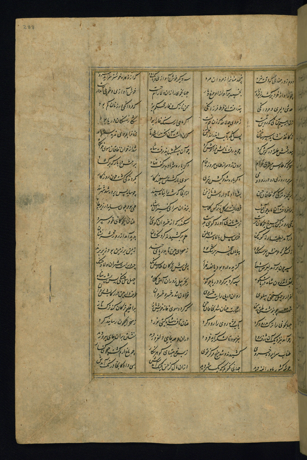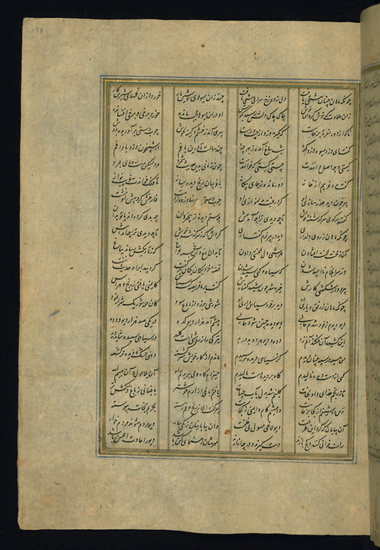 This is an illuminated and illustrated copy of the Khamsah (quintet) by Niẓāmī Ganjavī (d. 605 AH / 1209 CE), completed by Ḥabīb Allāh ibn ʿAlī ibn Ḥusām in Safavid Iran in Rabīʿ II 971 AH / 1563 CE. Illuminated titlepieces introduce the five poems, and there are thirty illustrations, the majority of which are attributable to thirteenth century AH / nineteenth CE Qajar Iran. Ownership notes and seals indicating the provenance of this manuscript are found throughout the codex (fols. 1a, 2a, 153a, 177a, 233a, 349a, and 351a). The binding is not original to the manuscript.