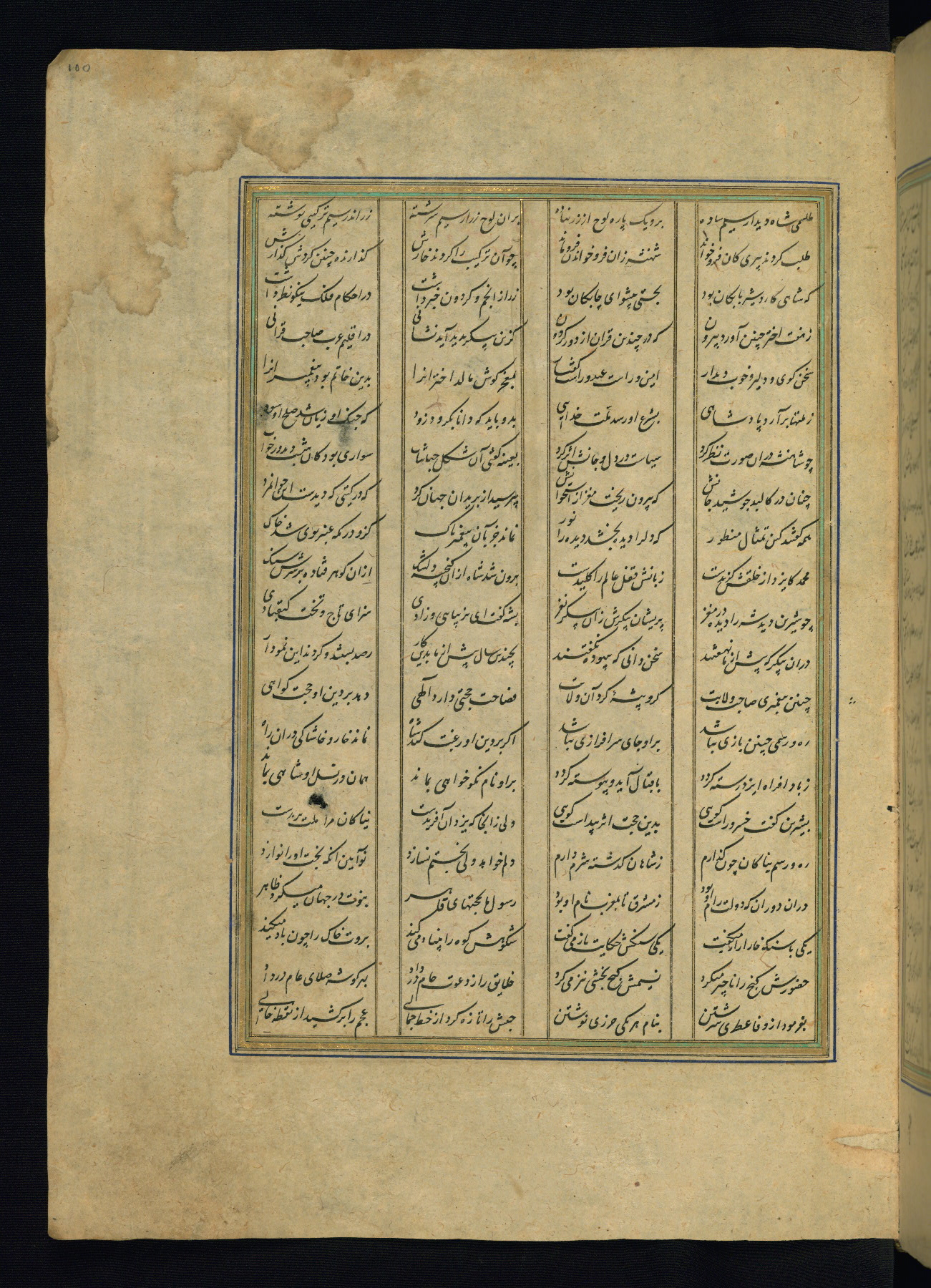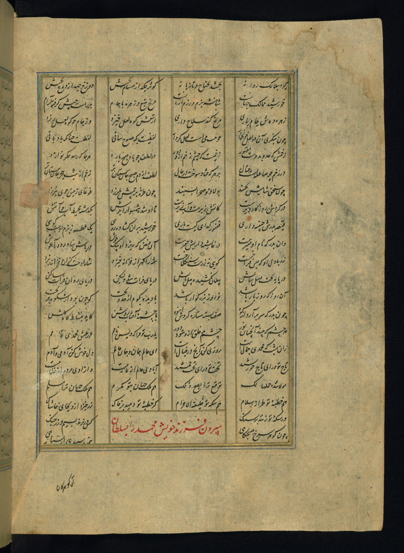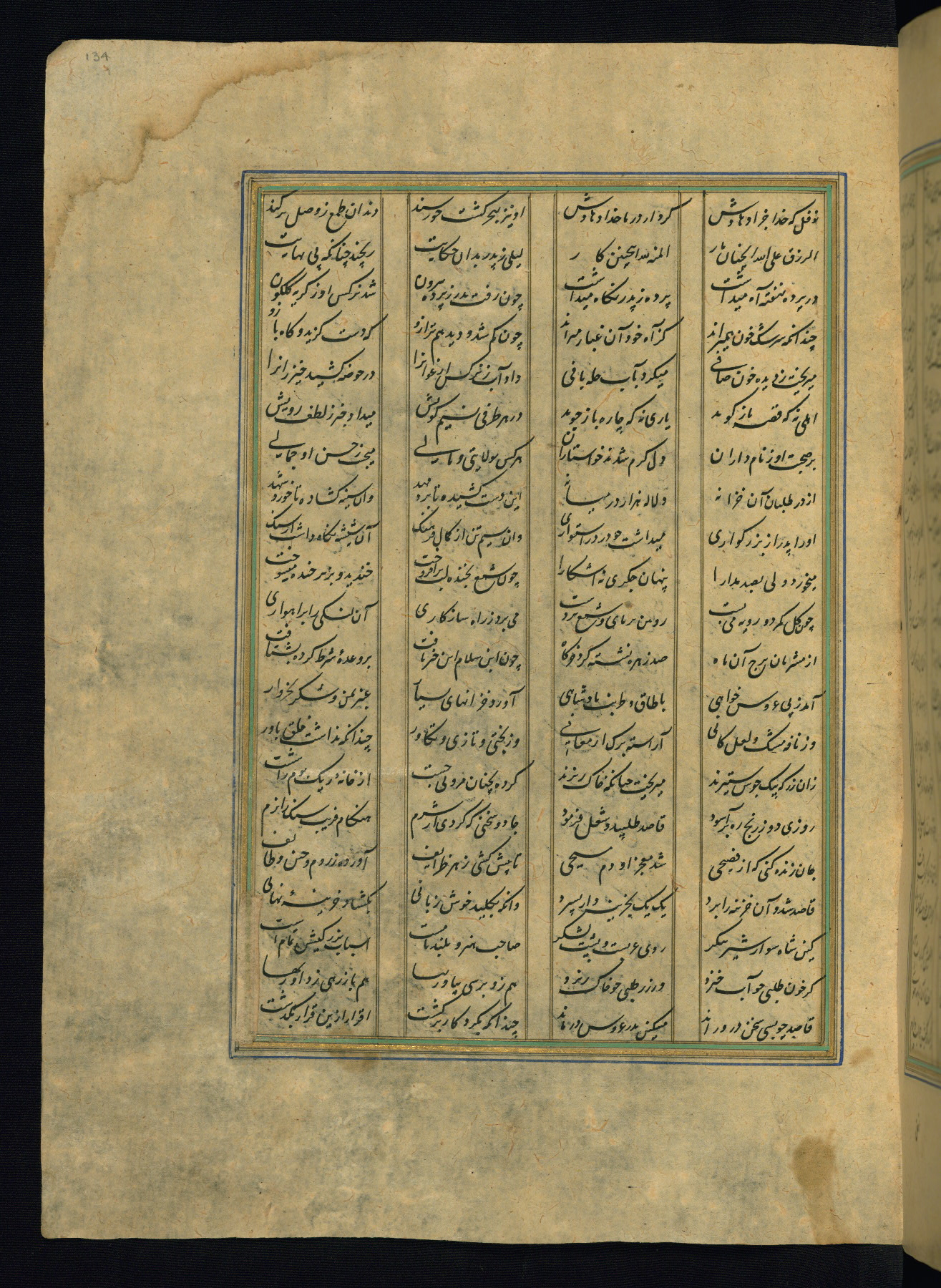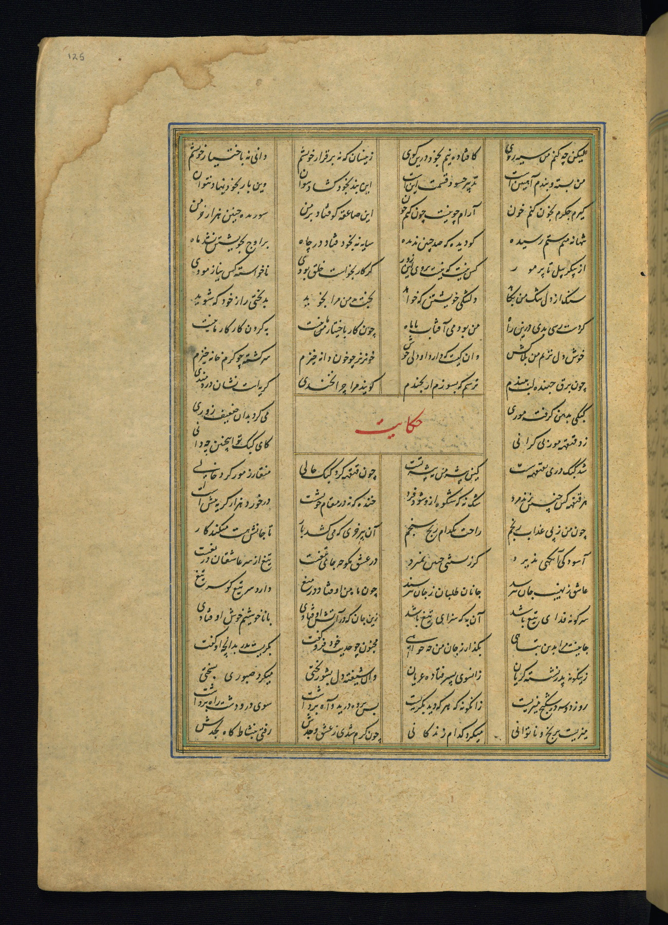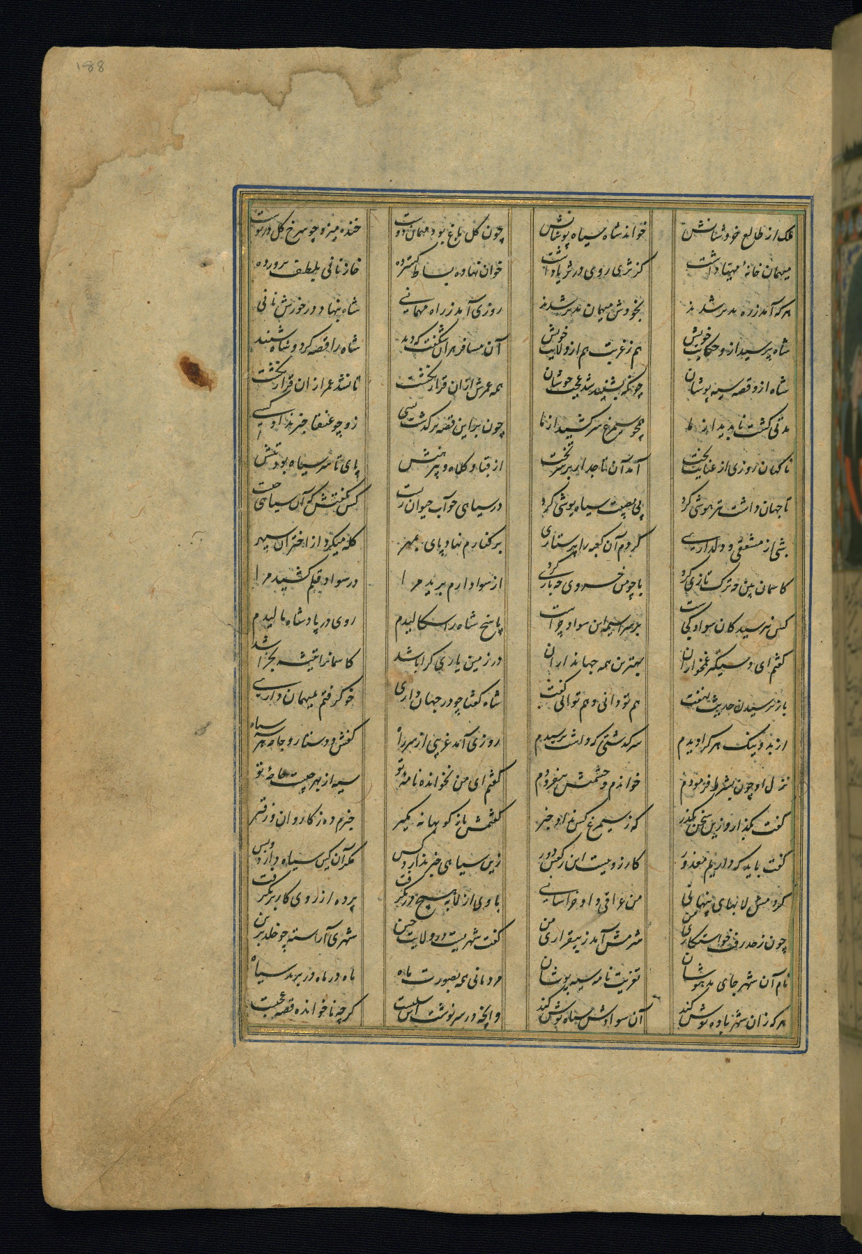 This is an illuminated and illustrated copy of the Khamsah (quintet) by Niẓāmī Ganjavī (d. 605 AH / 1209 CE), completed by Ḥabīb Allāh ibn ʿAlī ibn Ḥusām in Safavid Iran in Rabīʿ II 971 AH / 1563 CE. Illuminated titlepieces introduce the five poems, and there are thirty illustrations, the majority of which are attributable to thirteenth century AH / nineteenth CE Qajar Iran. Ownership notes and seals indicating the provenance of this manuscript are found throughout the codex (fols. 1a, 2a, 153a, 177a, 233a, 349a, and 351a). The binding is not original to the manuscript.