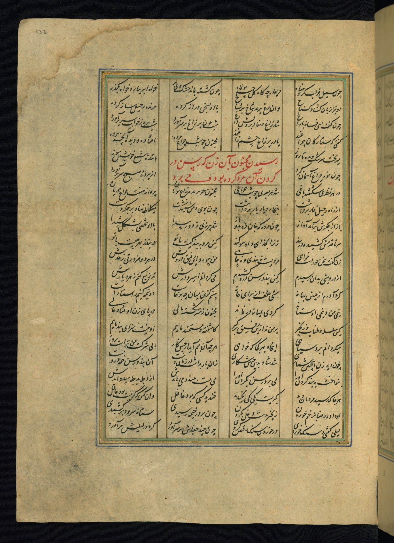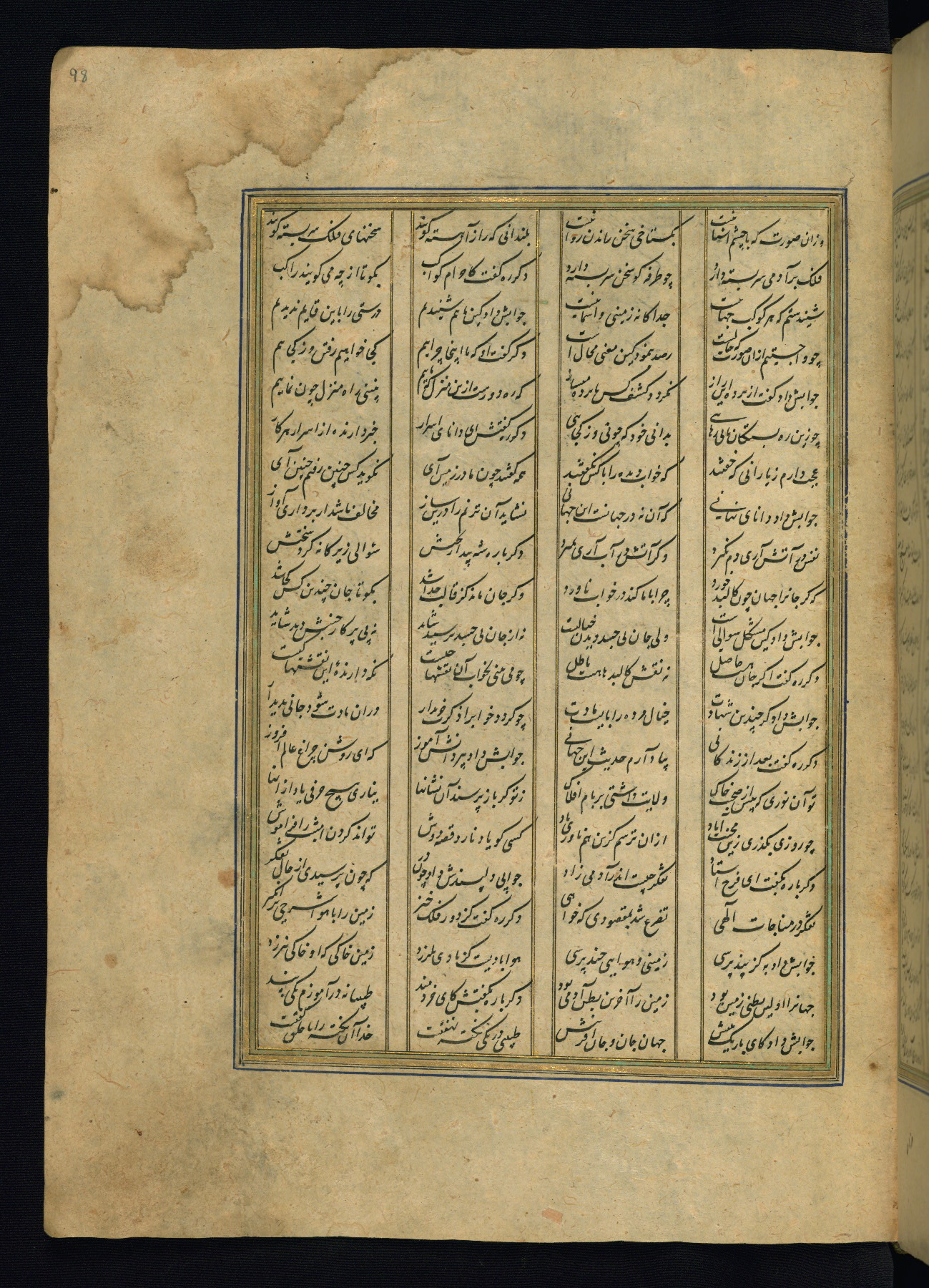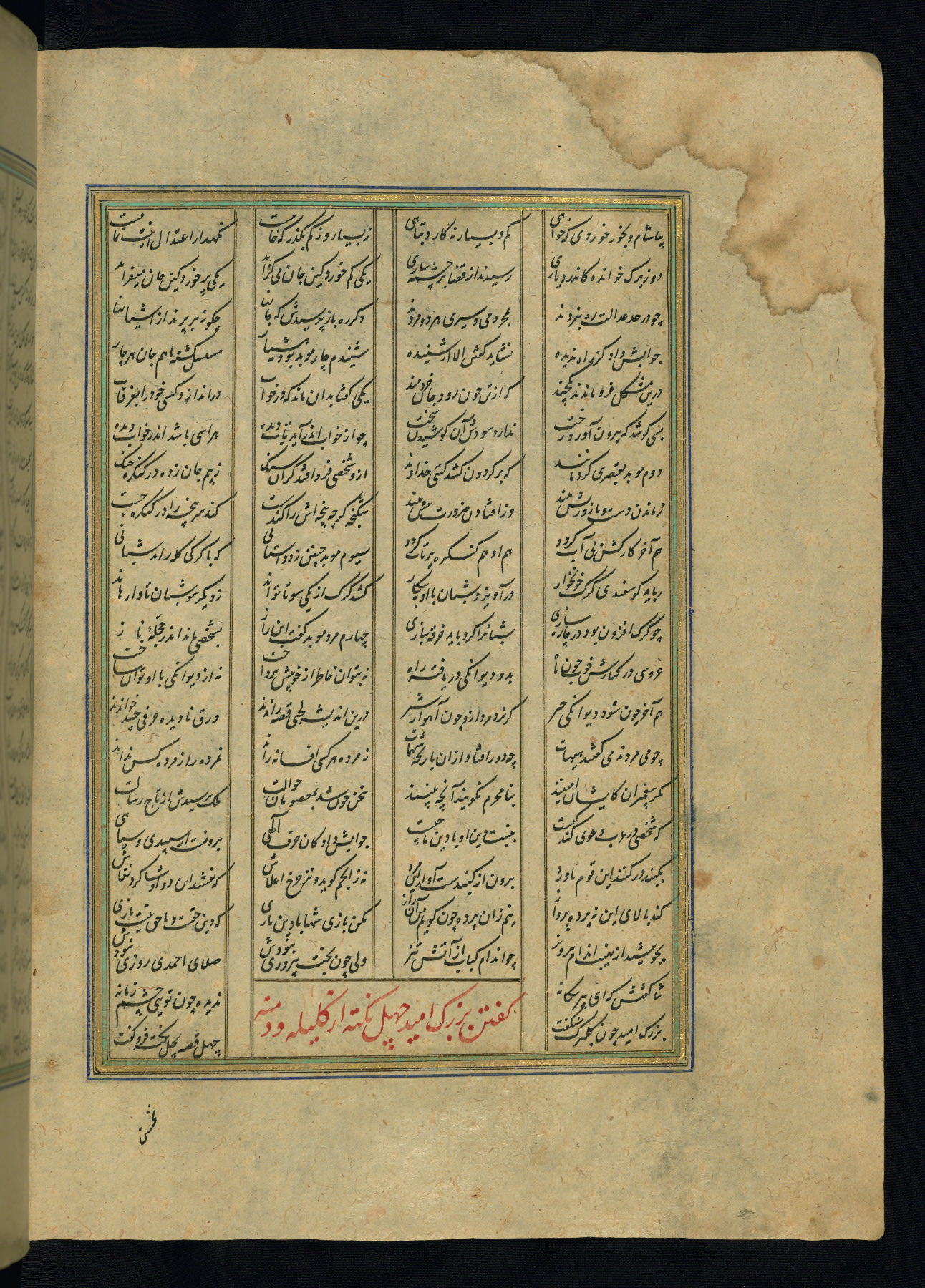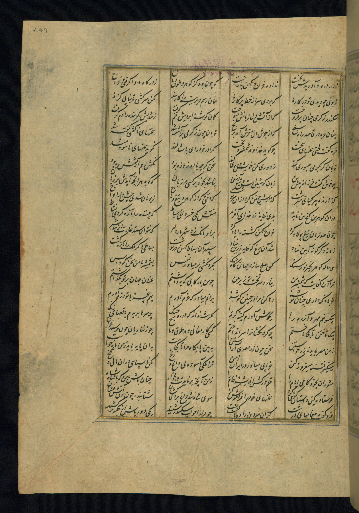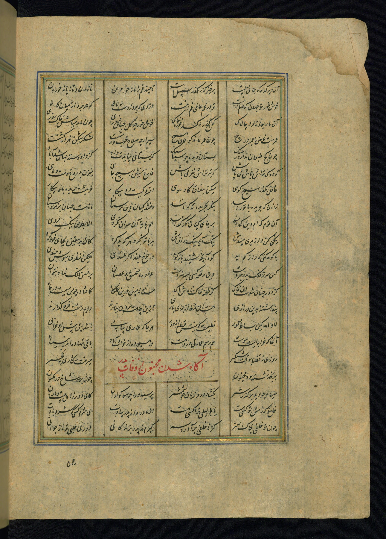 This is an illuminated and illustrated copy of the Khamsah (quintet) by Niẓāmī Ganjavī (d. 605 AH / 1209 CE), completed by Ḥabīb Allāh ibn ʿAlī ibn Ḥusām in Safavid Iran in Rabīʿ II 971 AH / 1563 CE. Illuminated titlepieces introduce the five poems, and there are thirty illustrations, the majority of which are attributable to thirteenth century AH / nineteenth CE Qajar Iran. Ownership notes and seals indicating the provenance of this manuscript are found throughout the codex (fols. 1a, 2a, 153a, 177a, 233a, 349a, and 351a). The binding is not original to the manuscript.