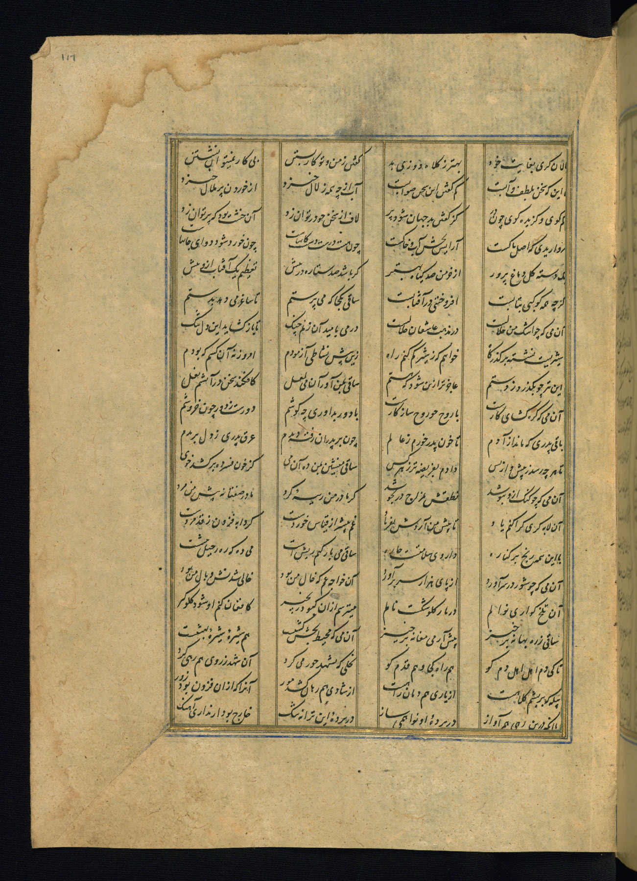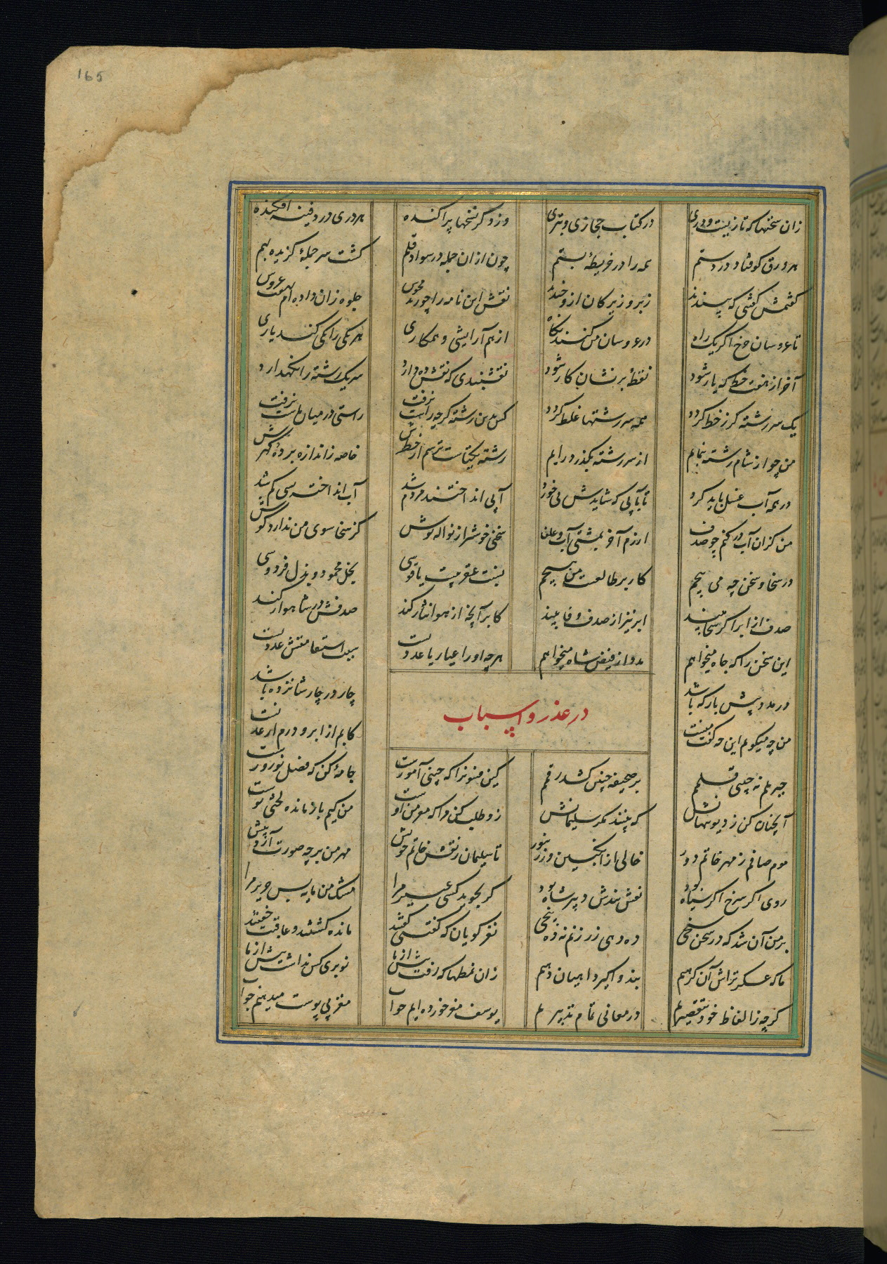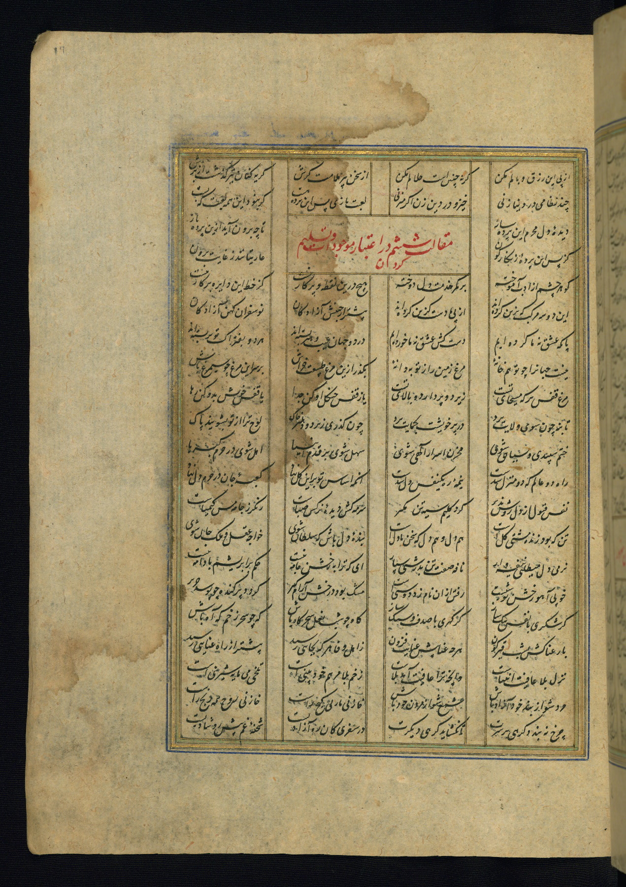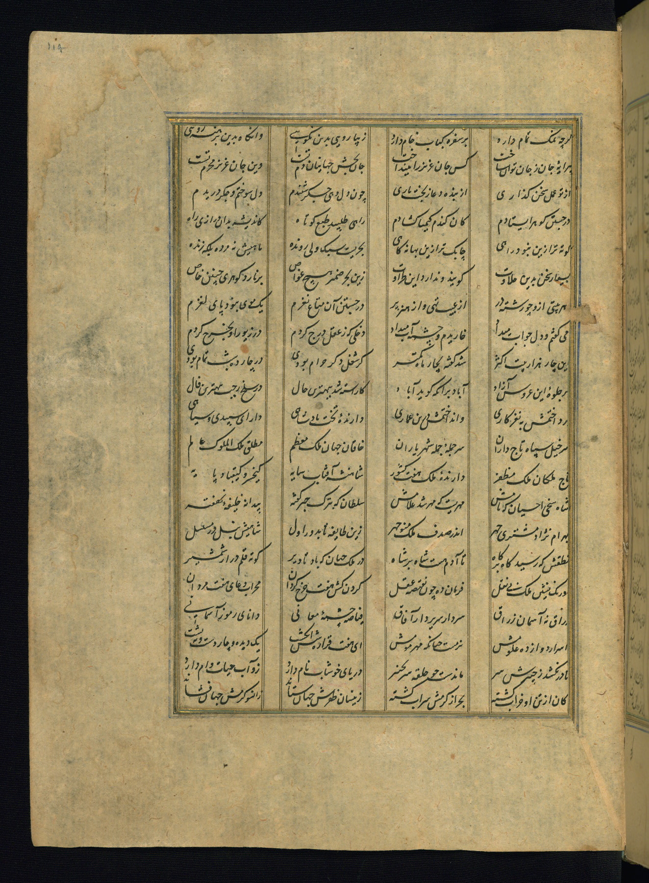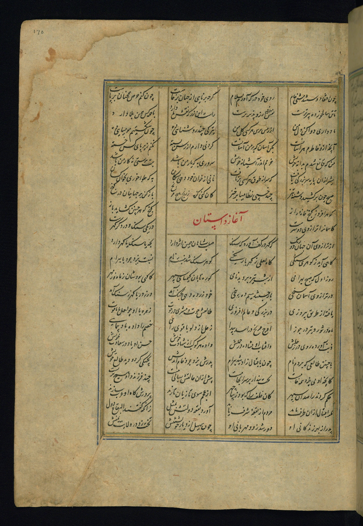 This is an illuminated and illustrated copy of the Khamsah (quintet) by Niẓāmī Ganjavī (d. 605 AH / 1209 CE), completed by Ḥabīb Allāh ibn ʿAlī ibn Ḥusām in Safavid Iran in Rabīʿ II 971 AH / 1563 CE. Illuminated titlepieces introduce the five poems, and there are thirty illustrations, the majority of which are attributable to thirteenth century AH / nineteenth CE Qajar Iran. Ownership notes and seals indicating the provenance of this manuscript are found throughout the codex (fols. 1a, 2a, 153a, 177a, 233a, 349a, and 351a). The binding is not original to the manuscript.