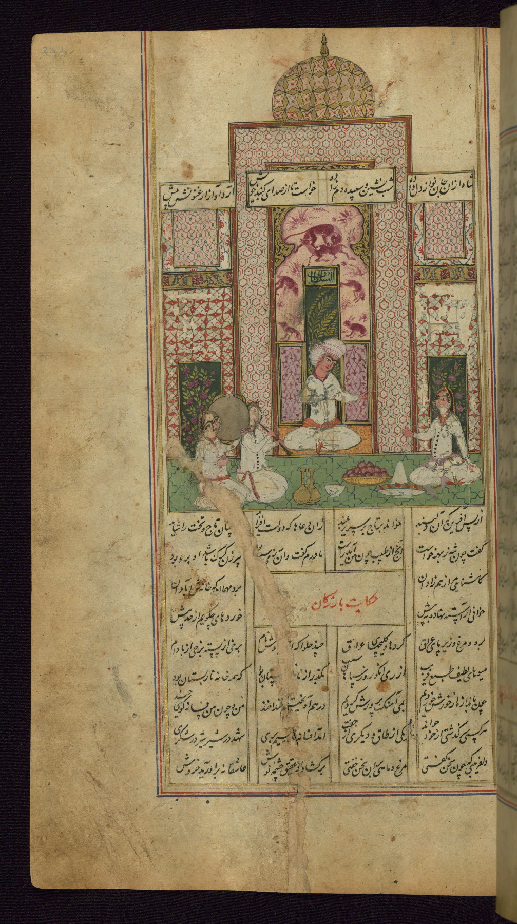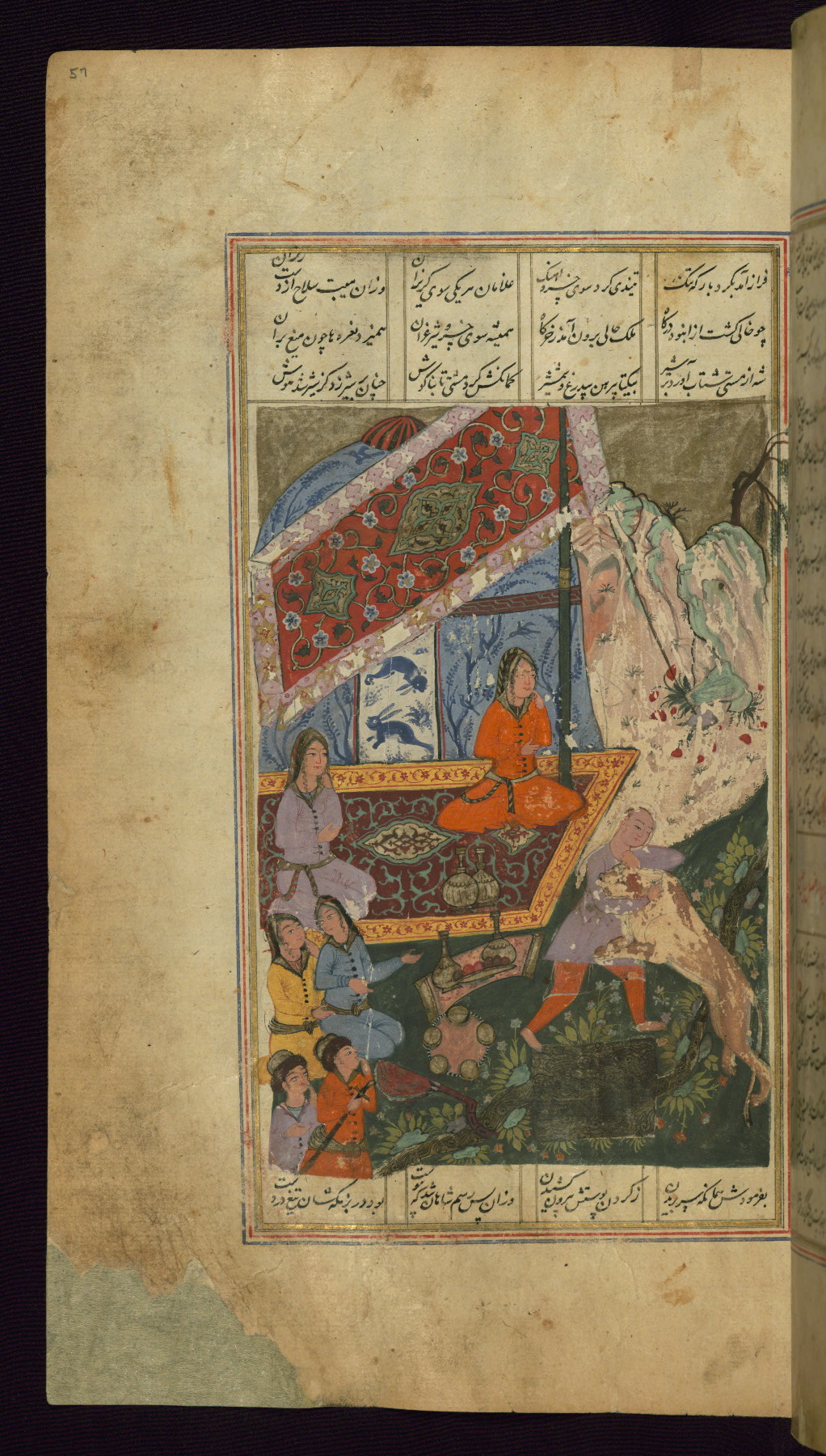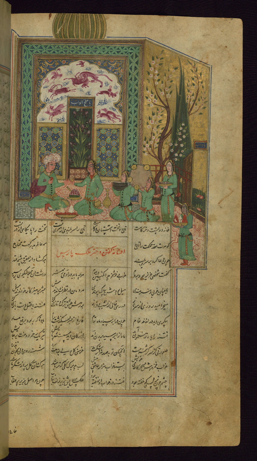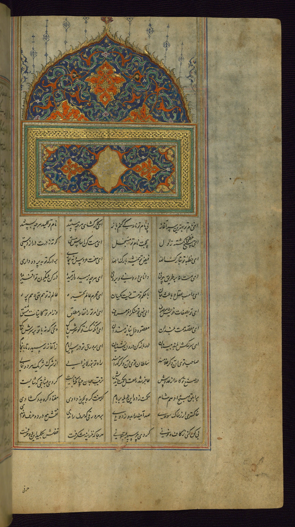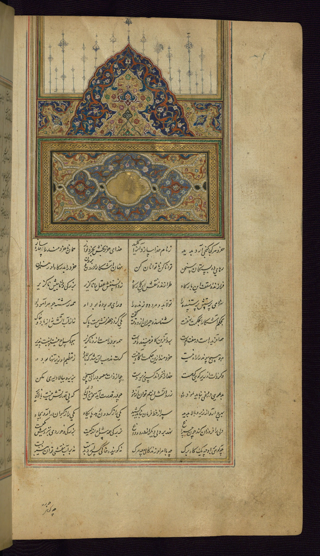 - Label: This incipit page has an illuminated headpiece beginning the fourth poem of the Khamsah: Haft paykar.