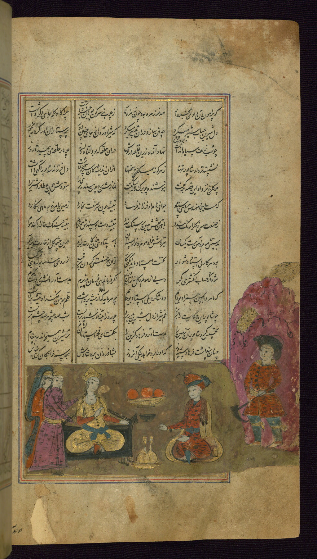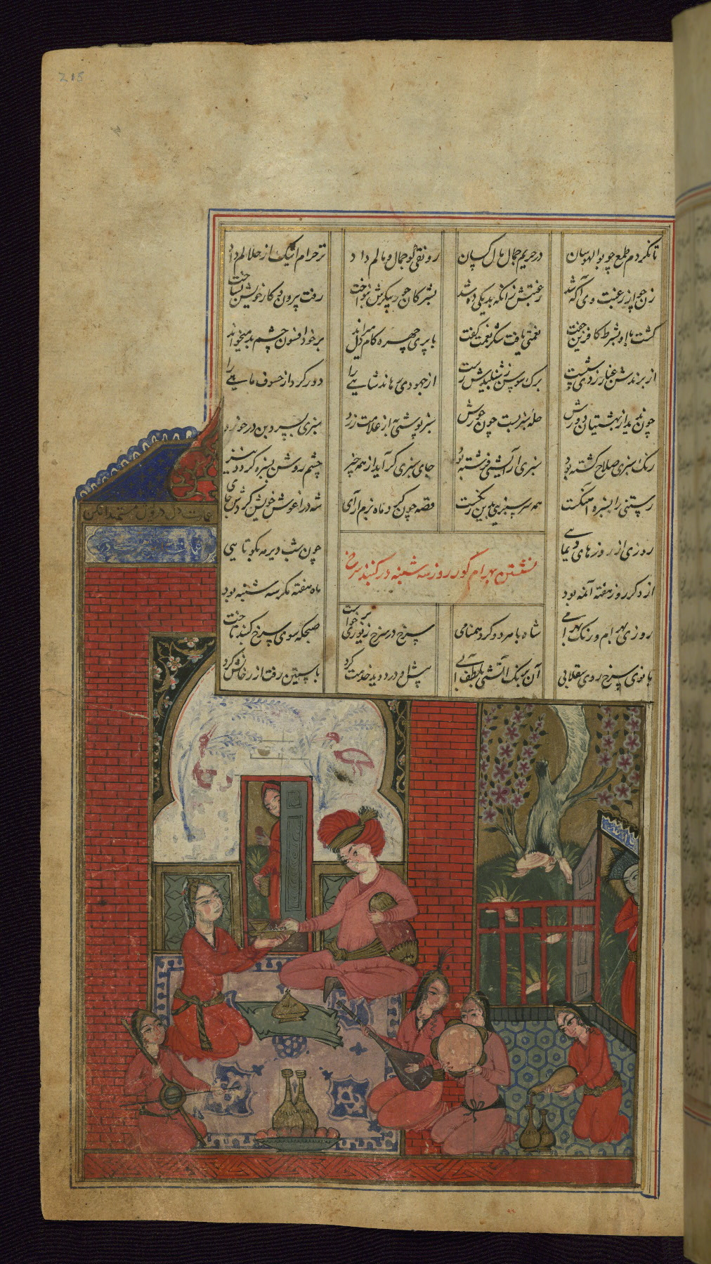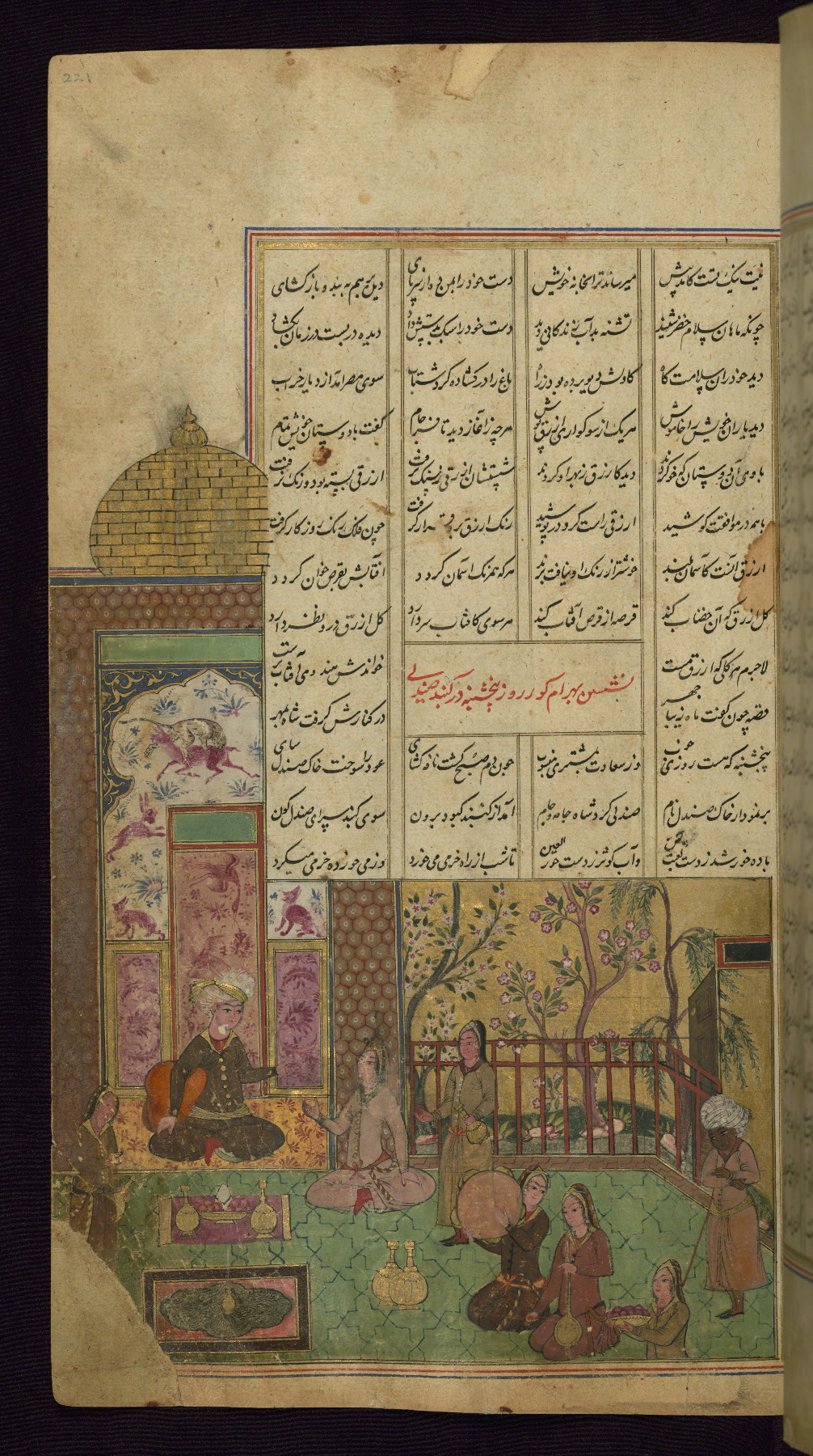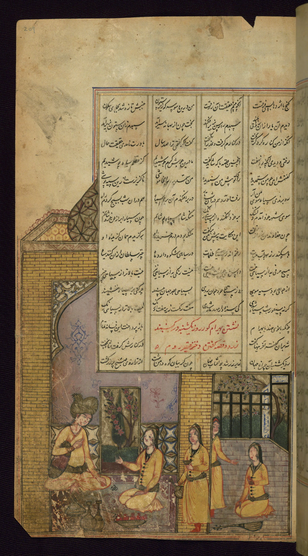 - Title: Bahrām Gūr entertains Shīdah, the builder of the seven pavilions