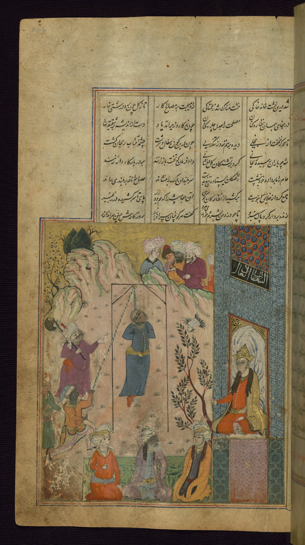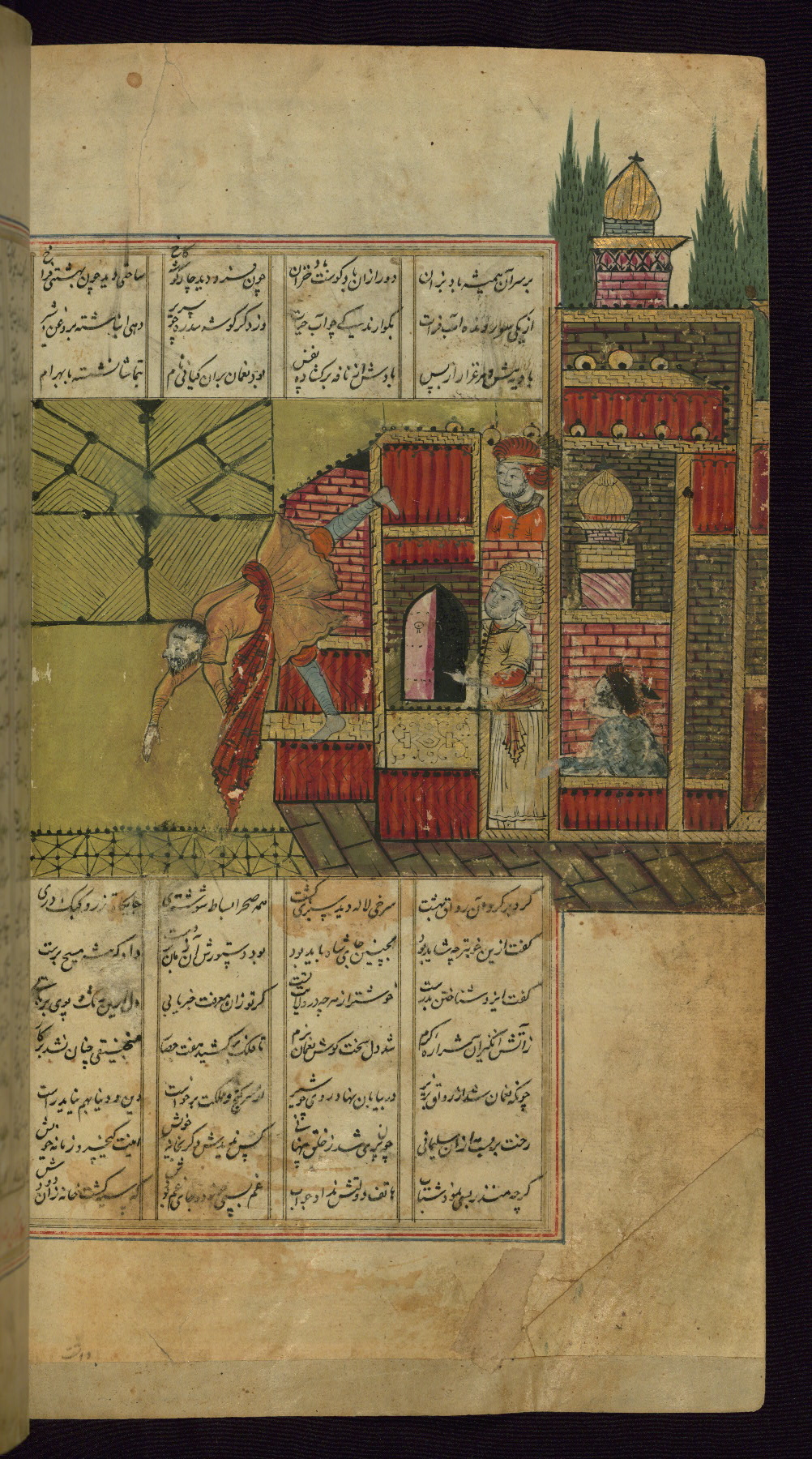 - Title: Nuʿmān, father of Bahrām Gūr, throws a builder from the roof of the palace Khavarnaq