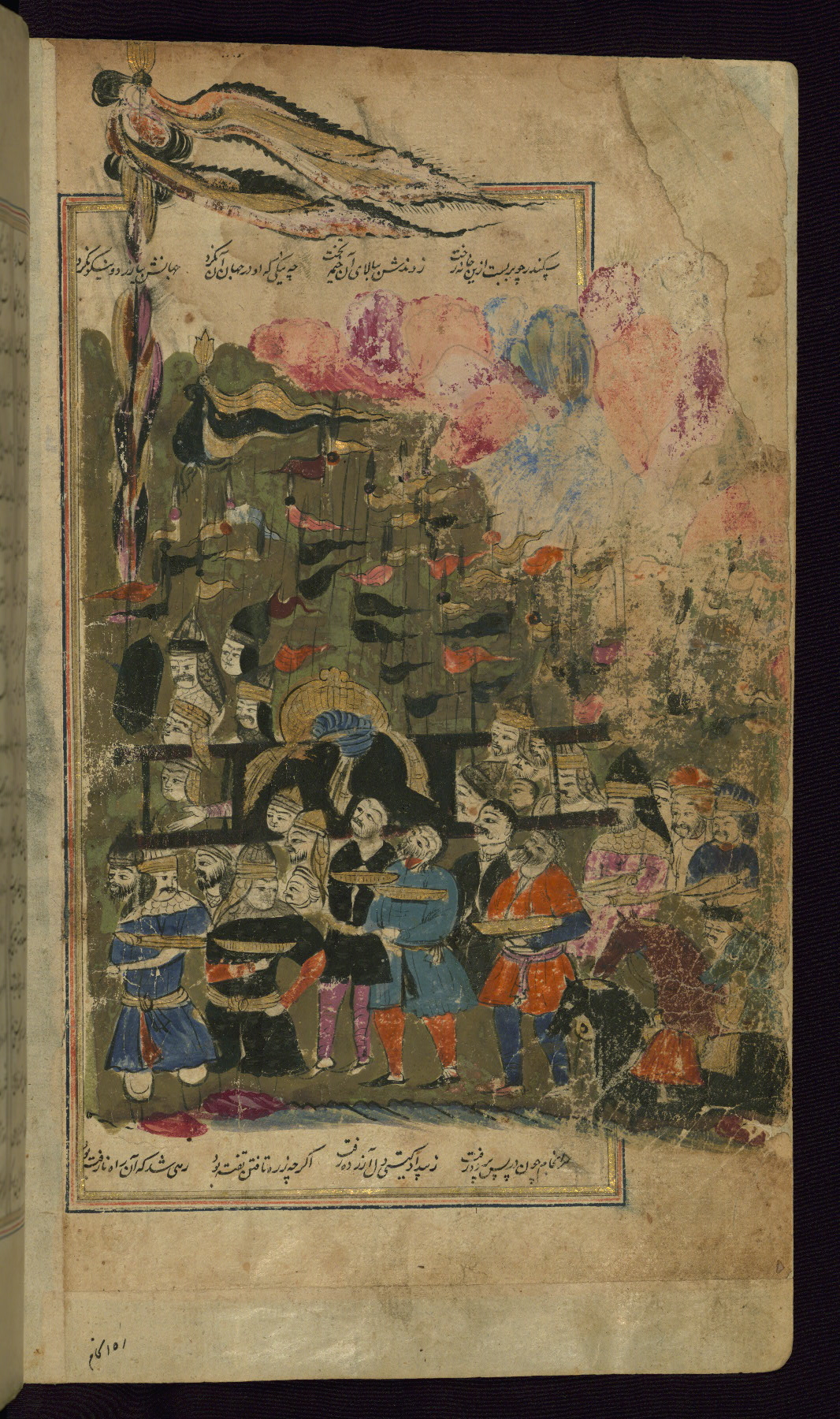- Label: This incipit page has an illuminated headpiece beginning Iqbālnāmah, the second half of the fifth poem of the Khamsah: Iskandarnāmah.