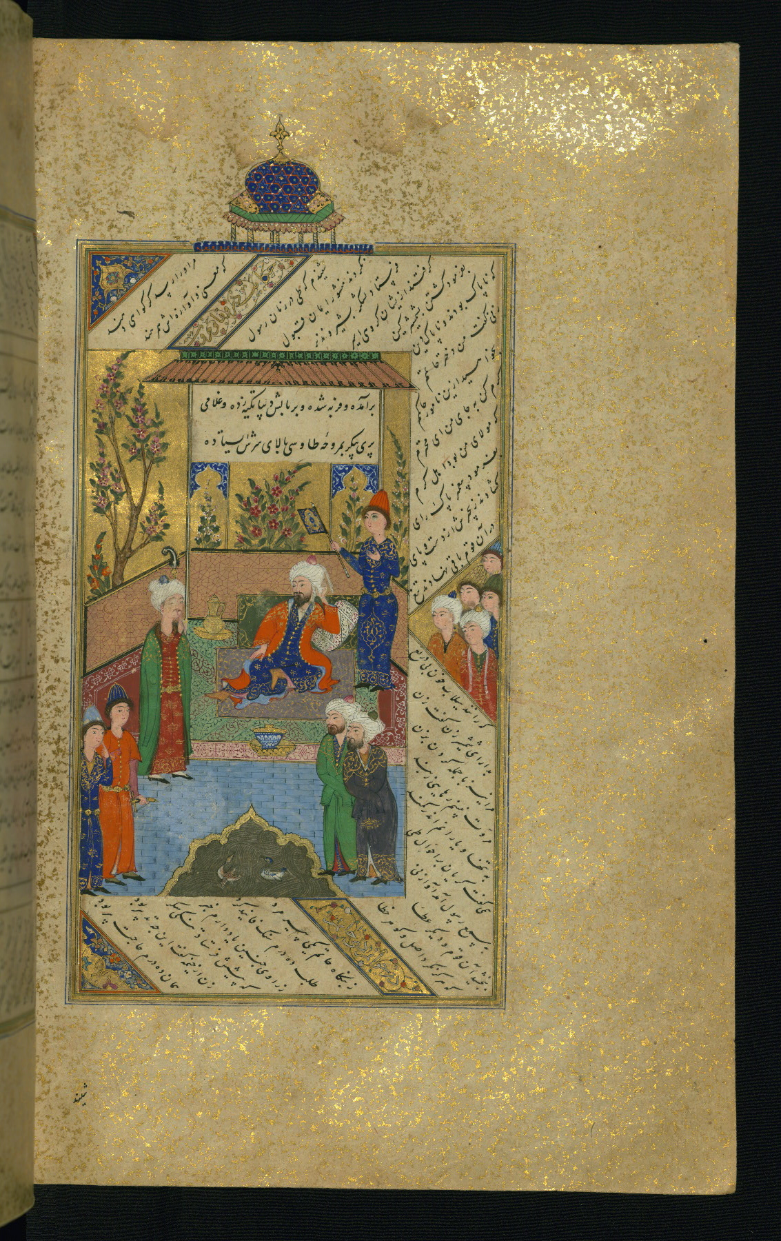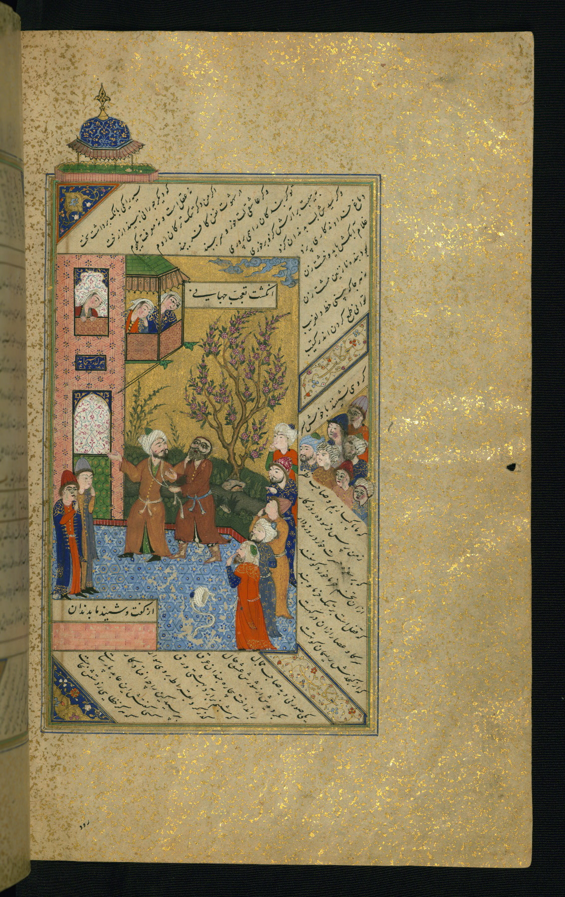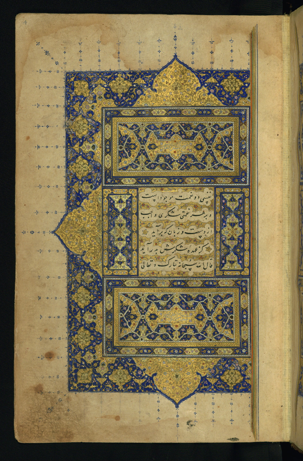 - Label: This is the left side of a double-page illuminated frontispiece introducing the text of the Gulistān.