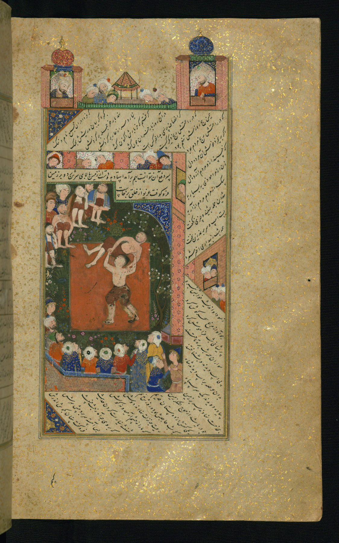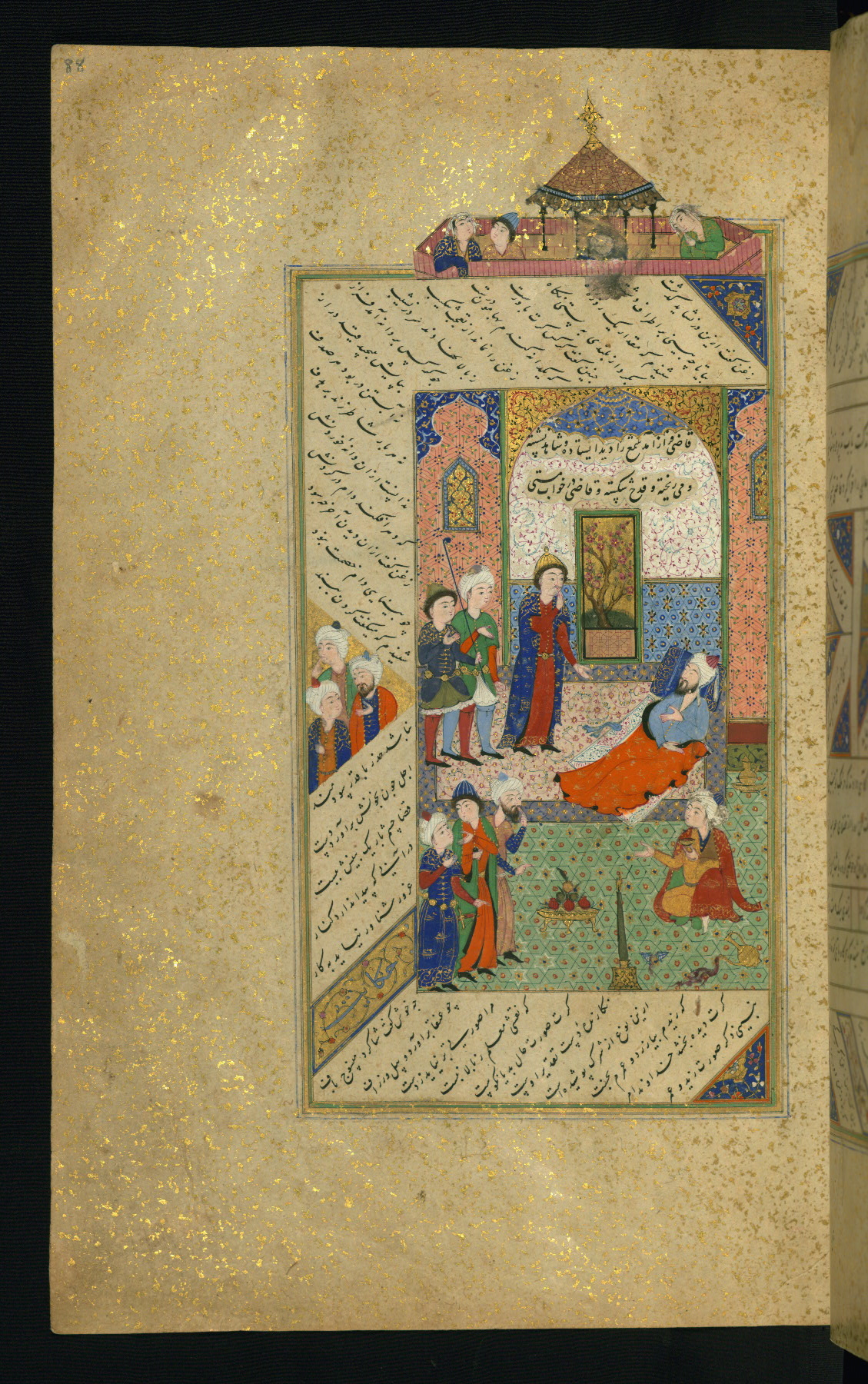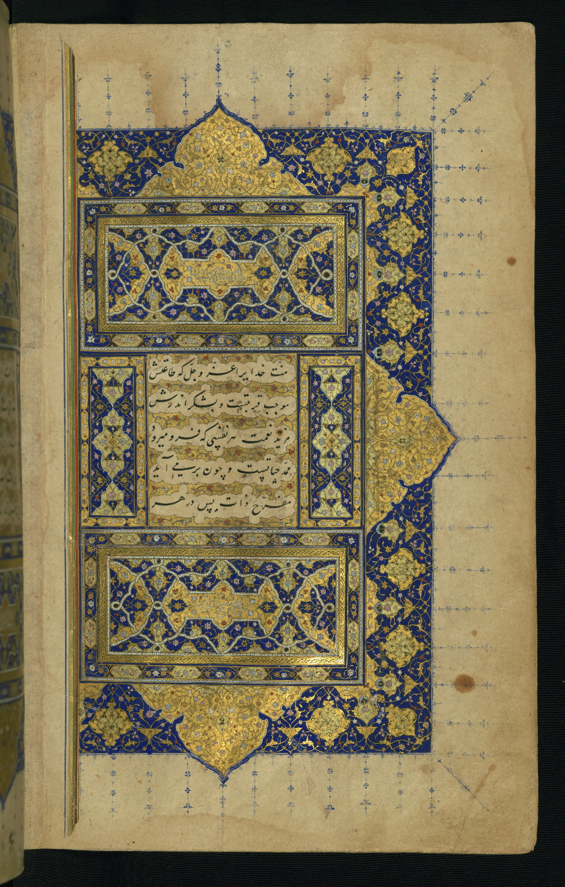 - Label: This is the left side of a double-page illuminated frontispiece introducing the text of the Gulistān.