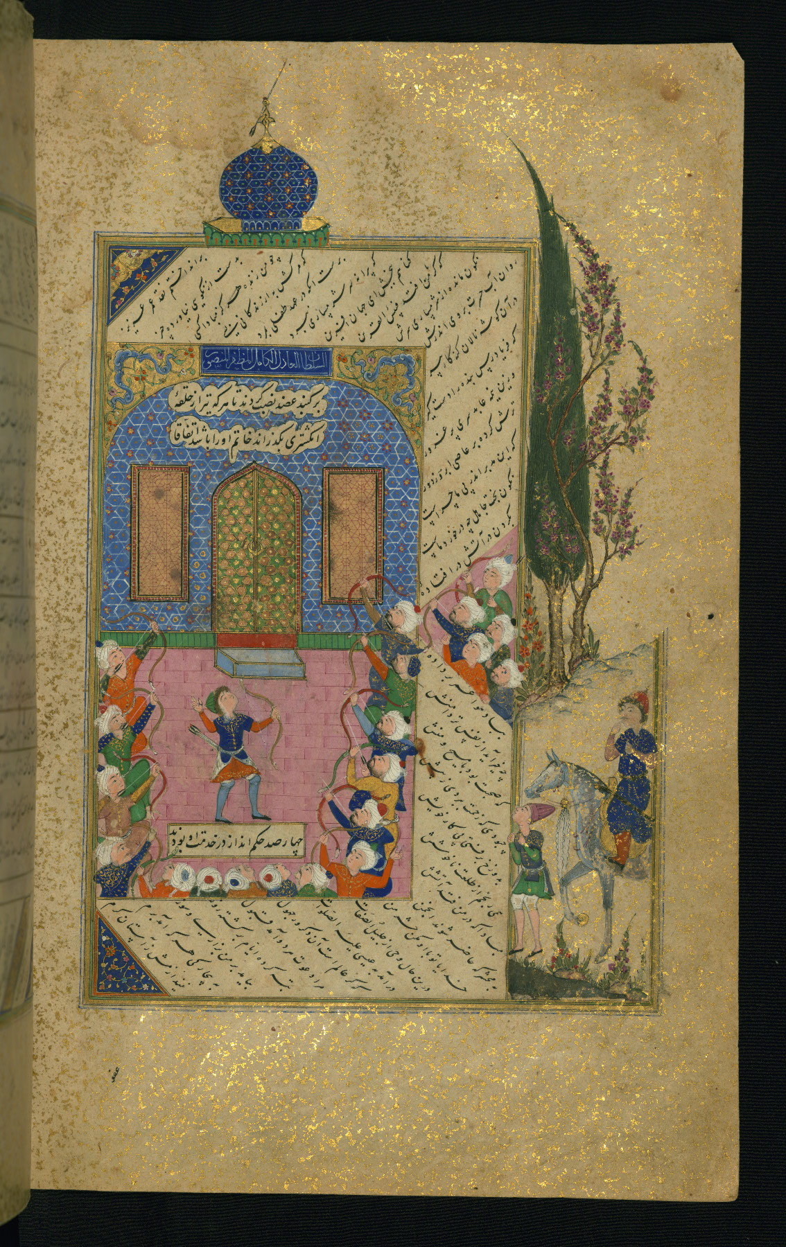 - Label: This is the right side of a double-page illuminated frontispiece introducing the text of the Gulistān.