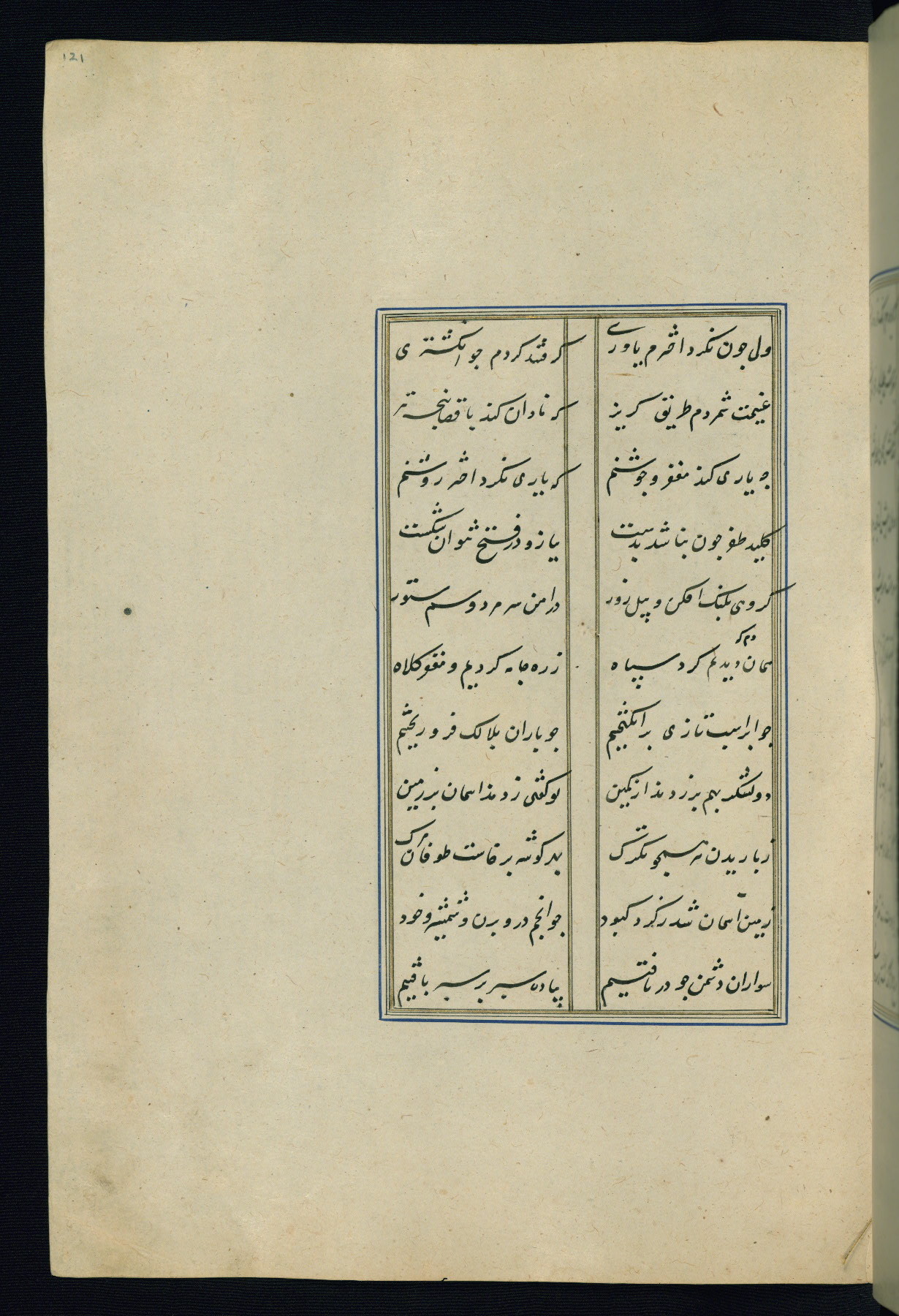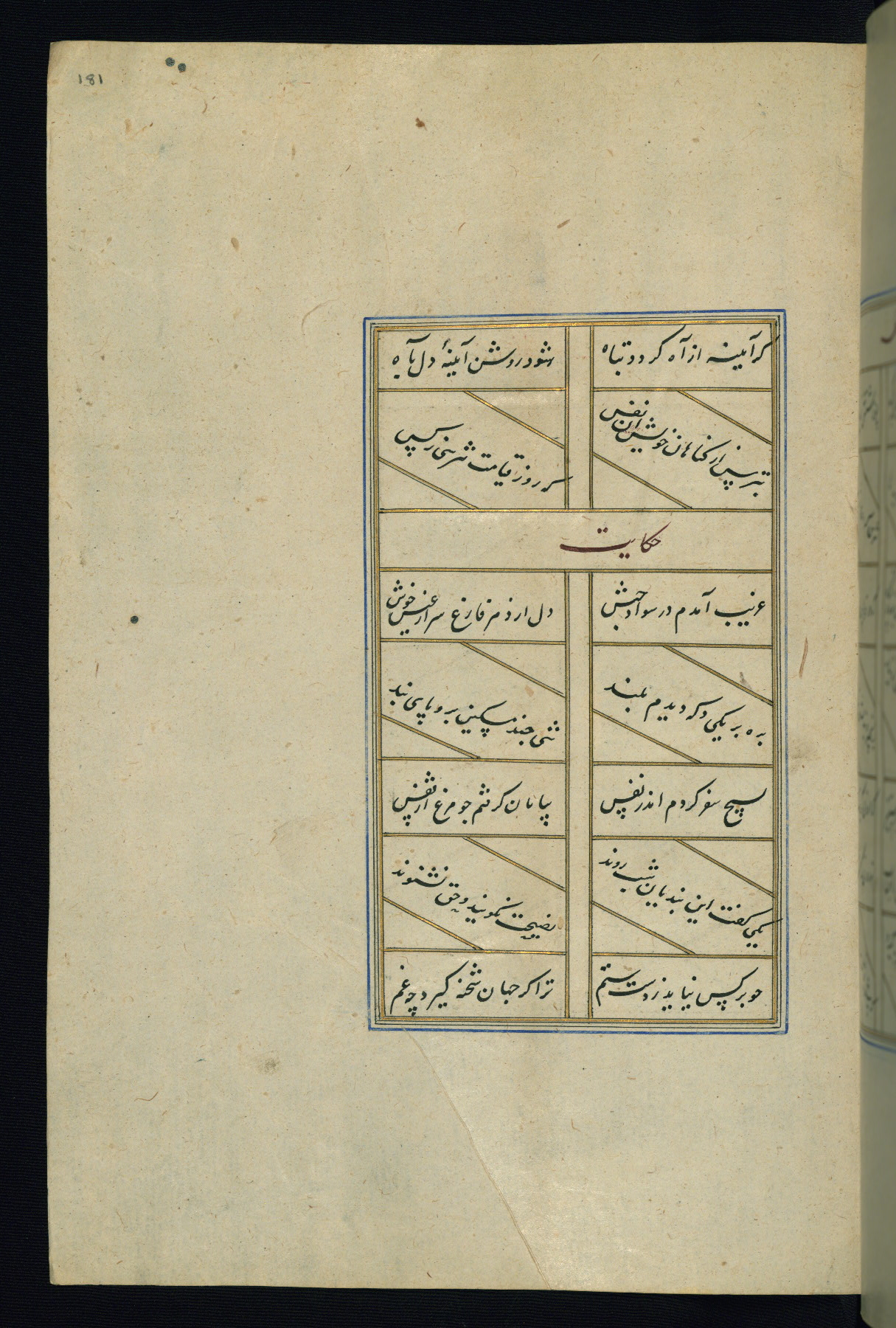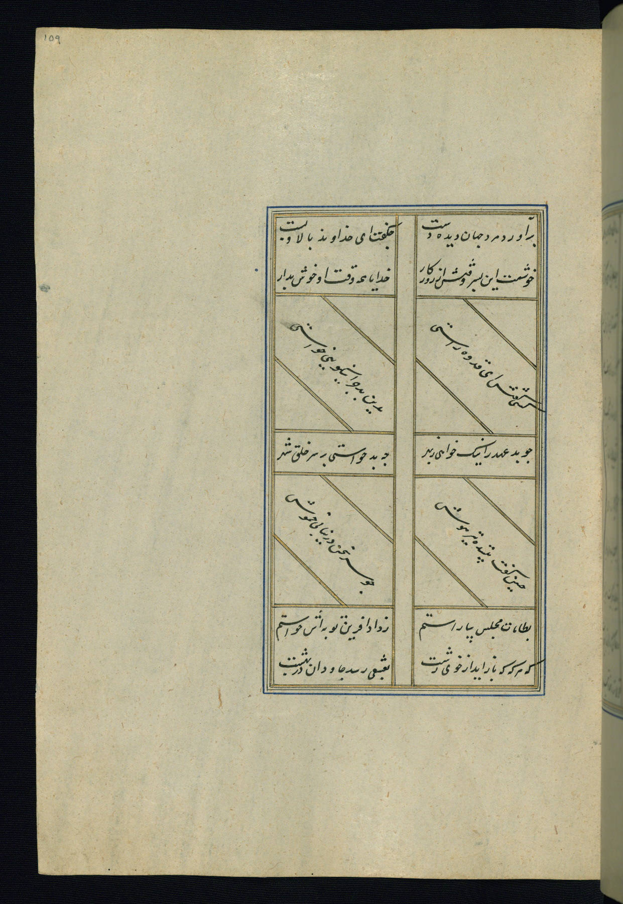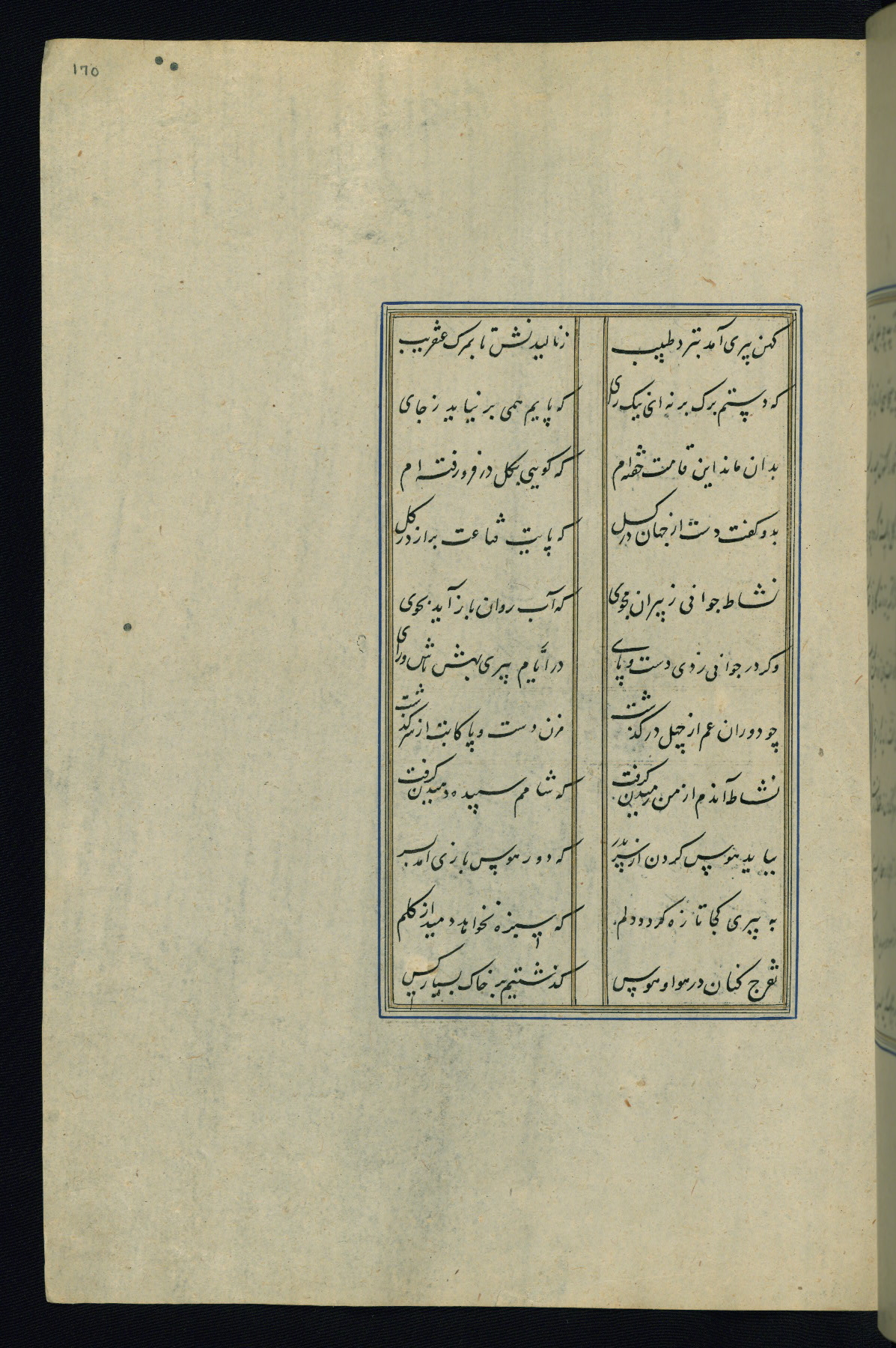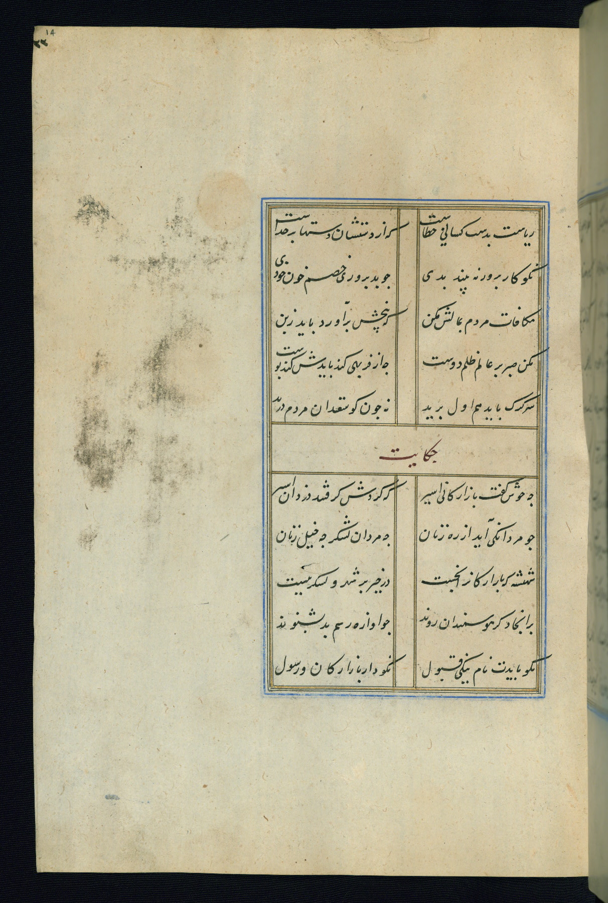 This is an illuminated and illustrated Safavid copy of the Būstān (The garden or The orchard), composed by Sa’dī (d. 691 AH / 1292 CE). It was written in black nasta’līq script in the ninth century AH / sixteenth CE in Iran. The codex opens with a frontispiece with the title Kitāb-i būstān inscribed in an illuminated medallion (fol. 1a), followed by a double-page illustration of a banquet scene in a landscape (fols. 1b-2a). Additionally, there are five paintings illustrating the text (fols. 25a, 55b, 58a, 93b, and 119b). The brown leather, blind-stamped binding decorated with a central oval and pendants is not contemporary with the manuscript.