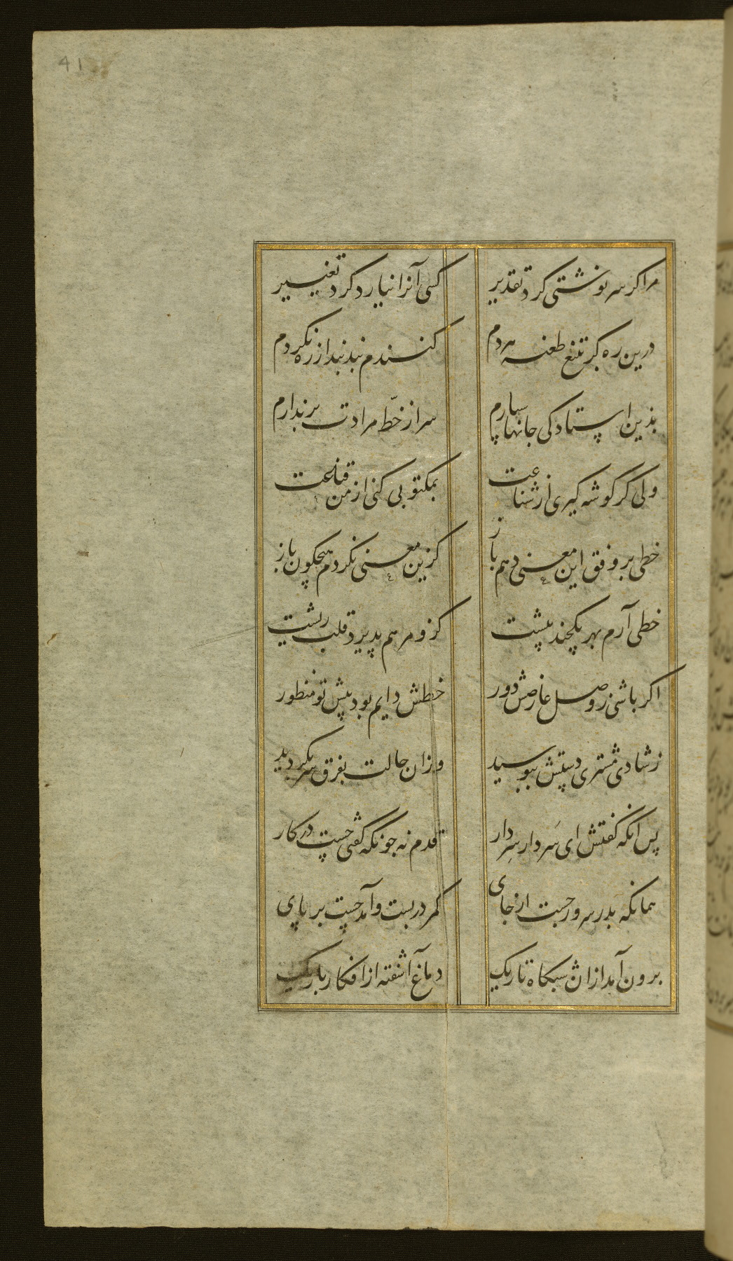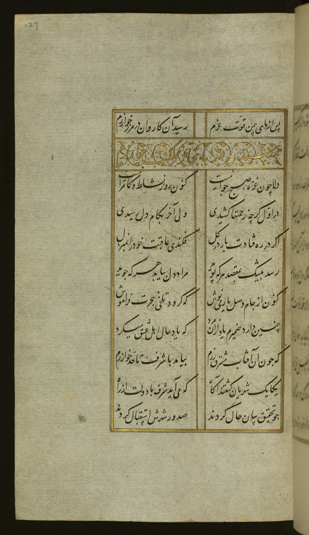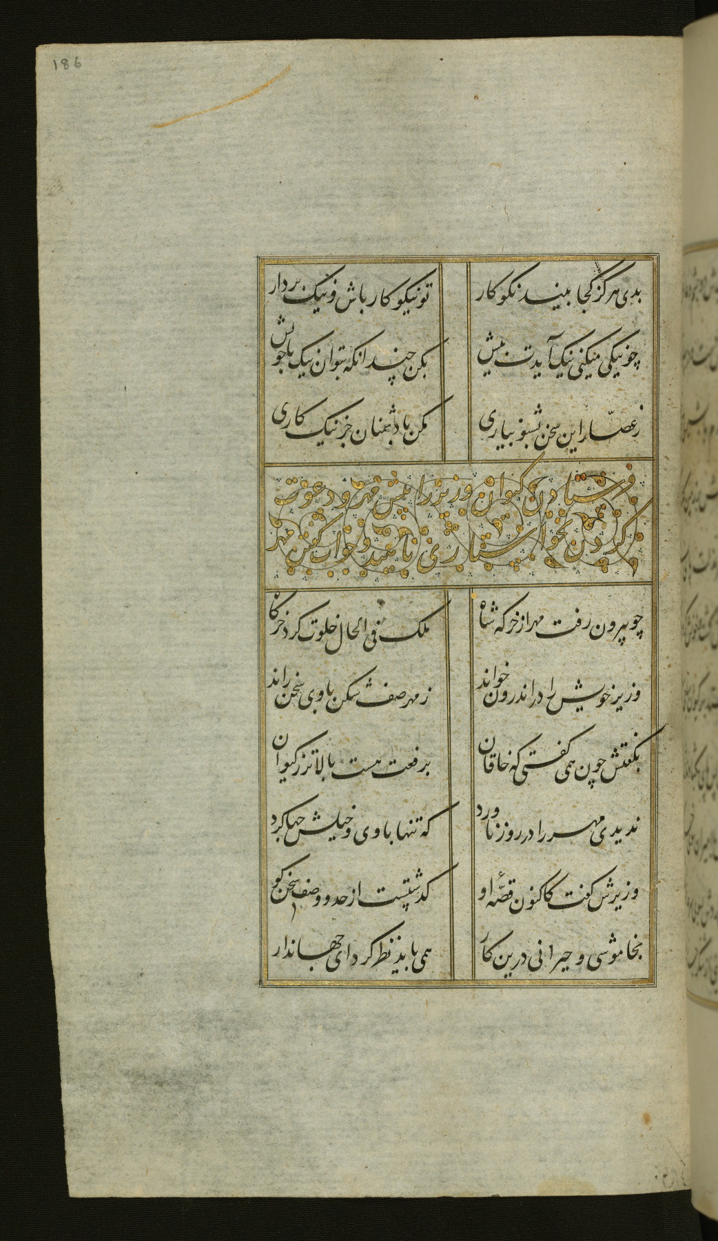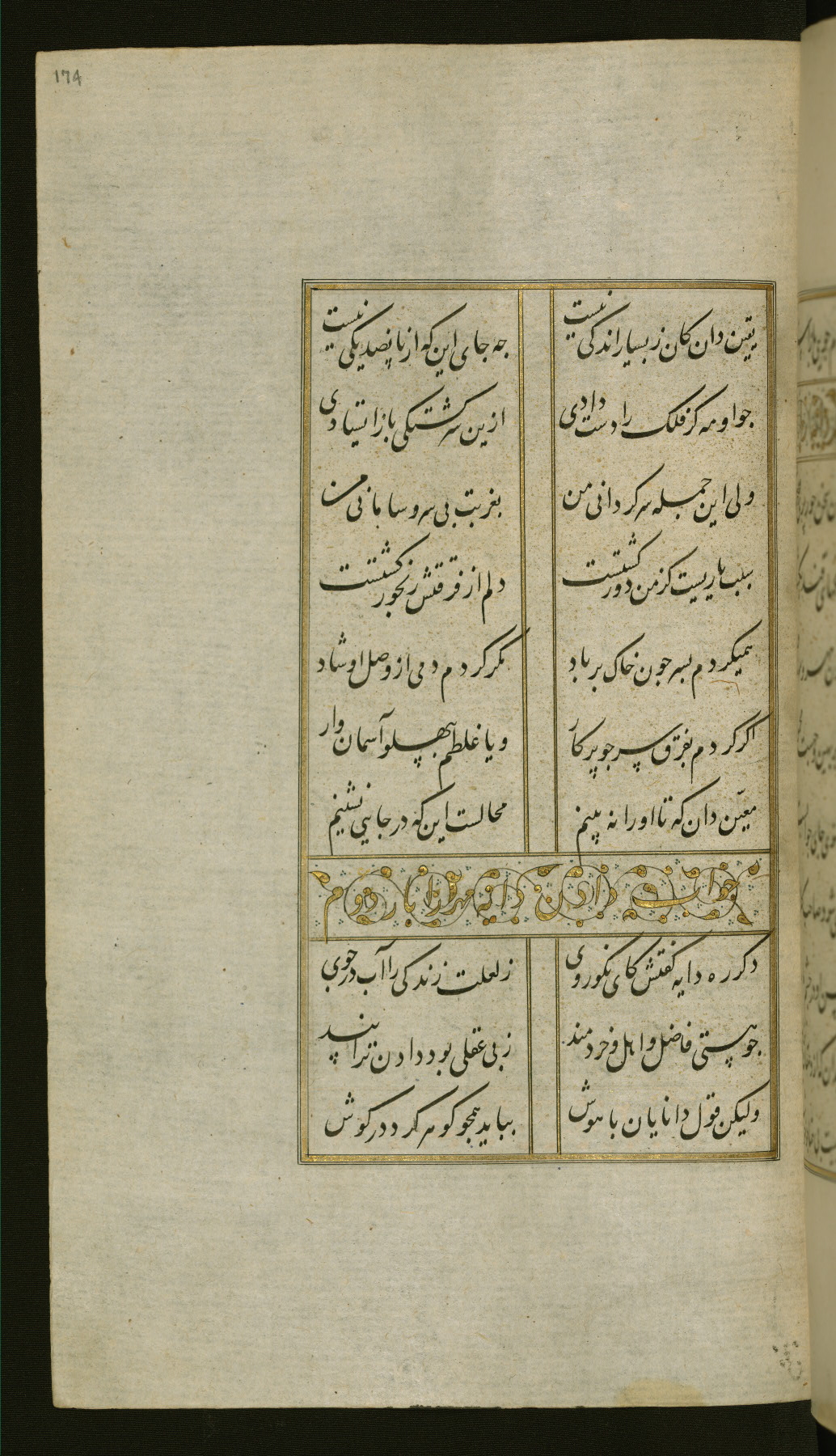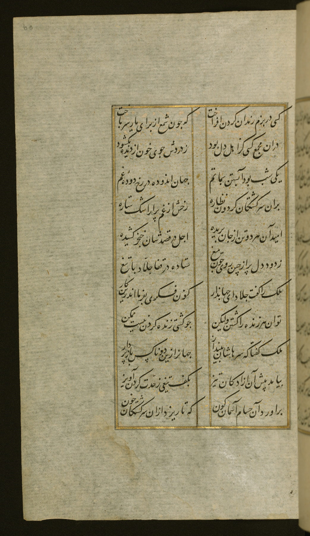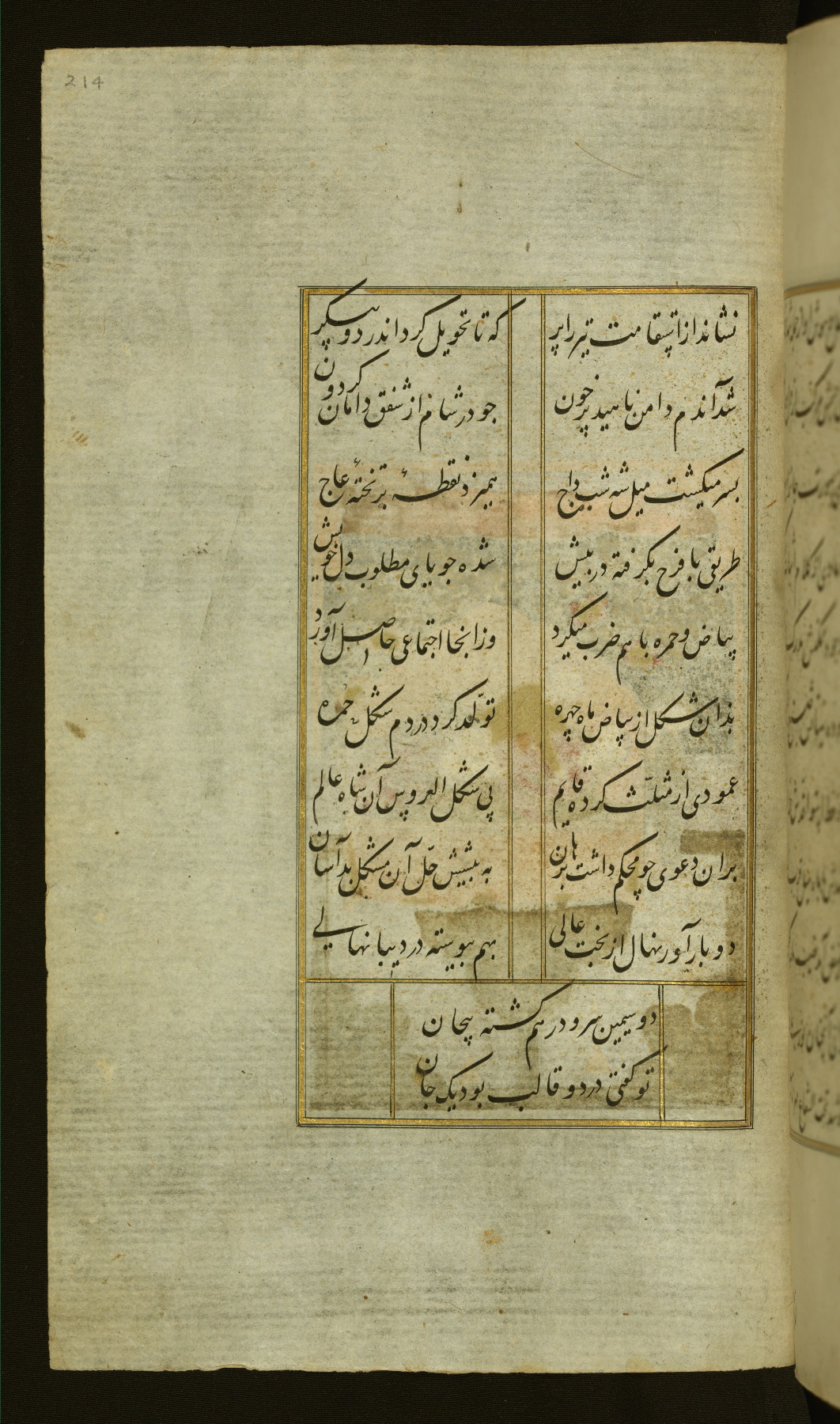 This manuscript is an illustrated copy of the well-known poem recounting the platonic love story between Mihr (the Sun), the son of Shāhpūr, and his vizier's son Mushtarī (Jupiter). The story of 90 chapters was composed by Muḥammad ibn Aḥmad ‘Aṣṣār Tabrīzī (d. 784 AH / 1382 CE). The present copy was written in nasta‘līq script by Murshid al-Kātib in 881 AH / 1476 CE. Considering the number of surviving manuscripts in which this calligrapher’s name is found, it seems he was particularly prolific. The present codex is illustrated with nine paintings. The gold-brushed leather binding with doublures of red leather decorated with filigree work is original to the manuscript.