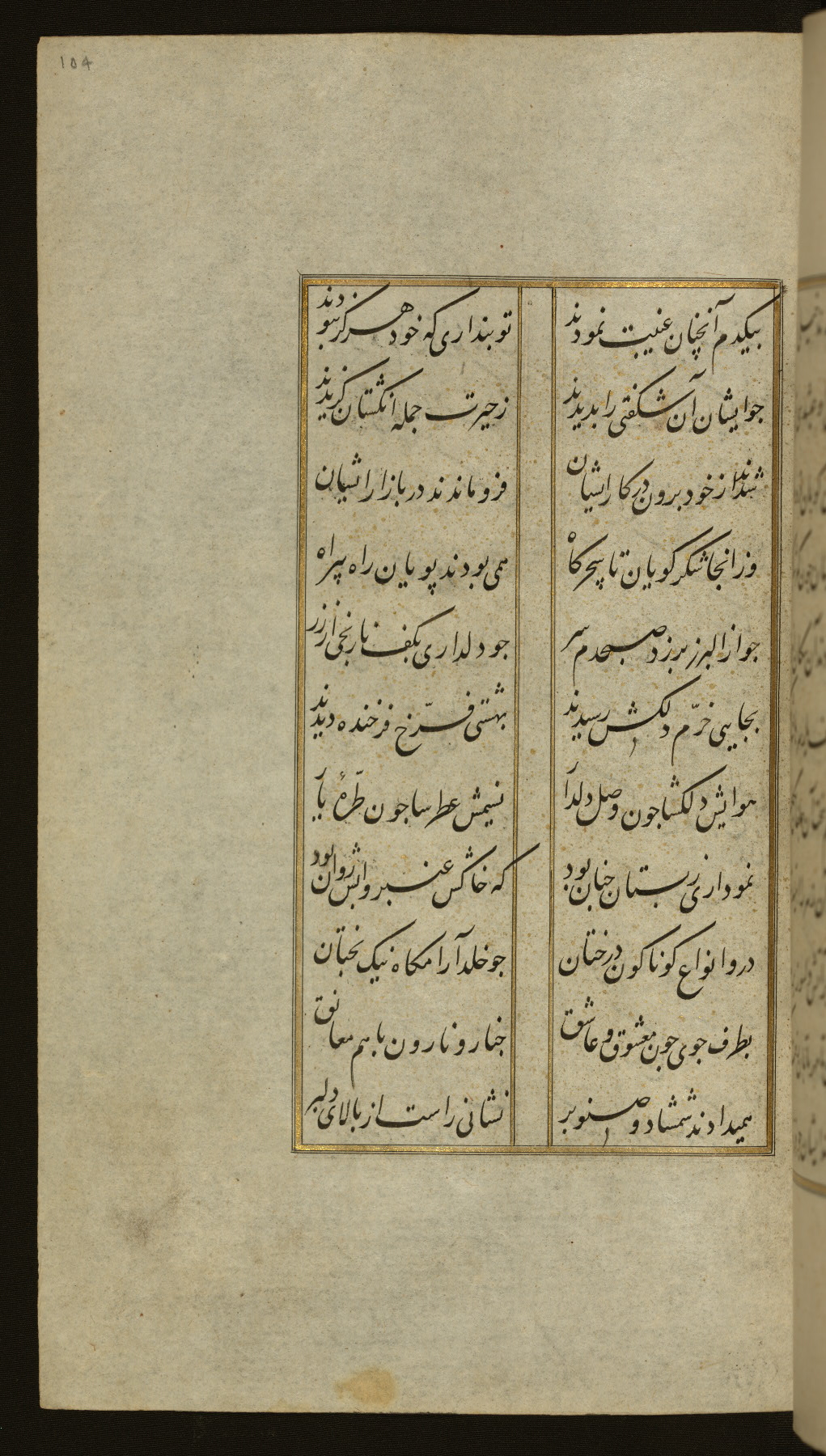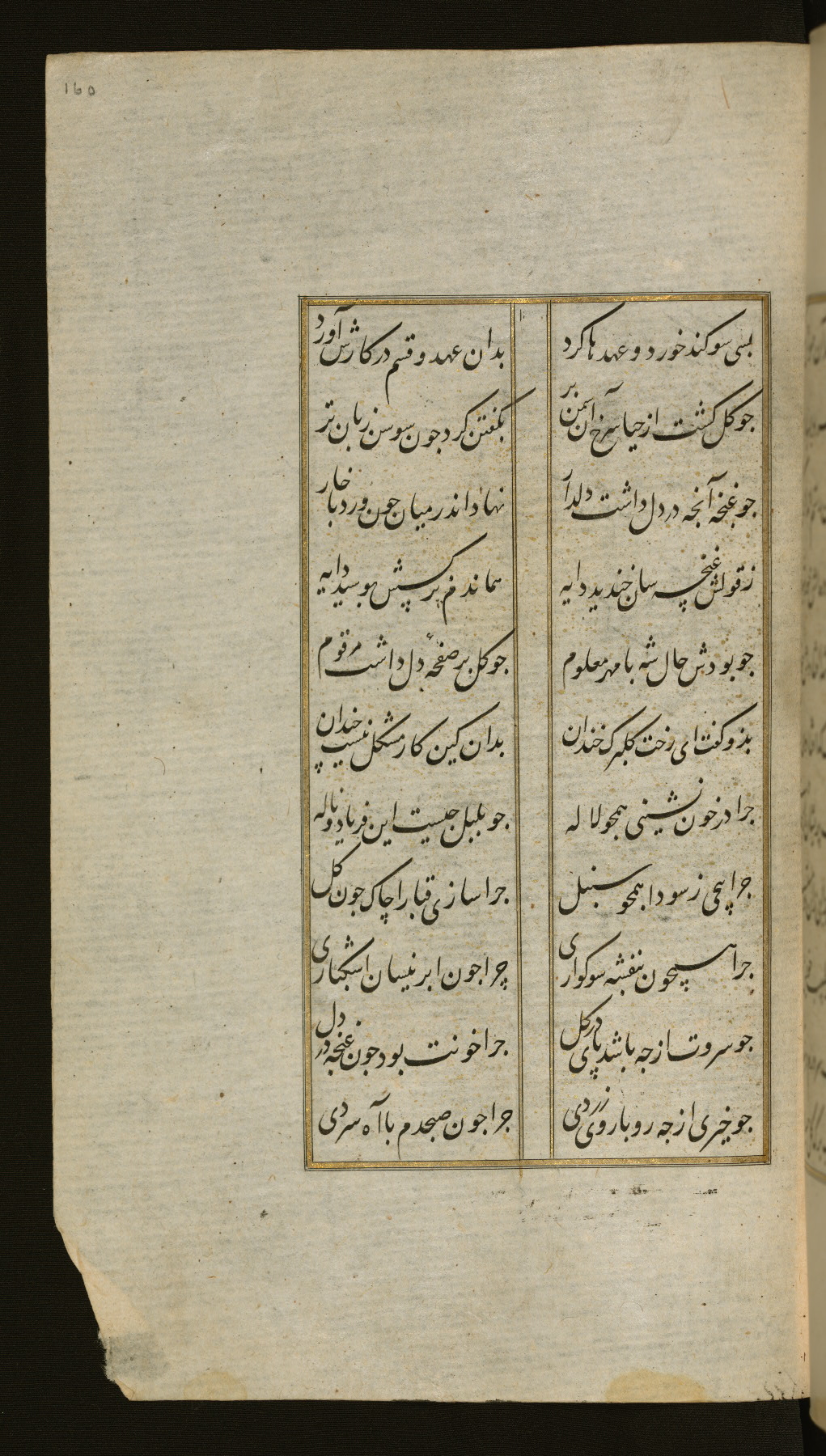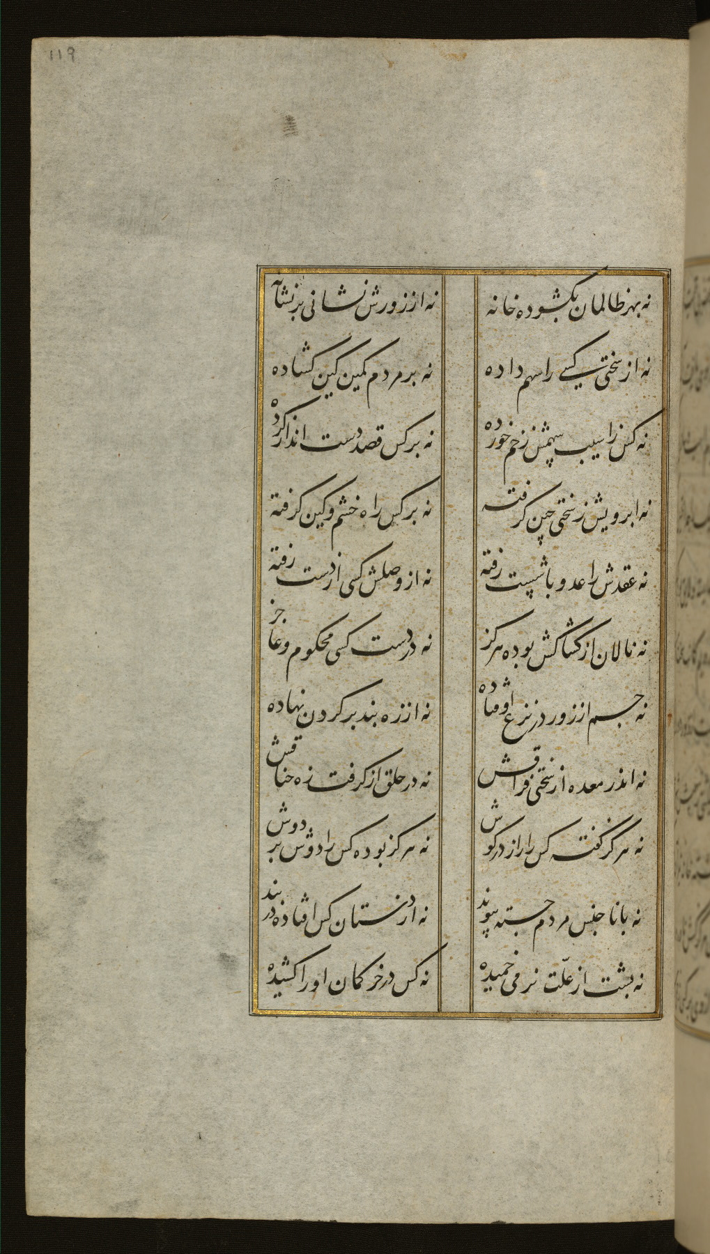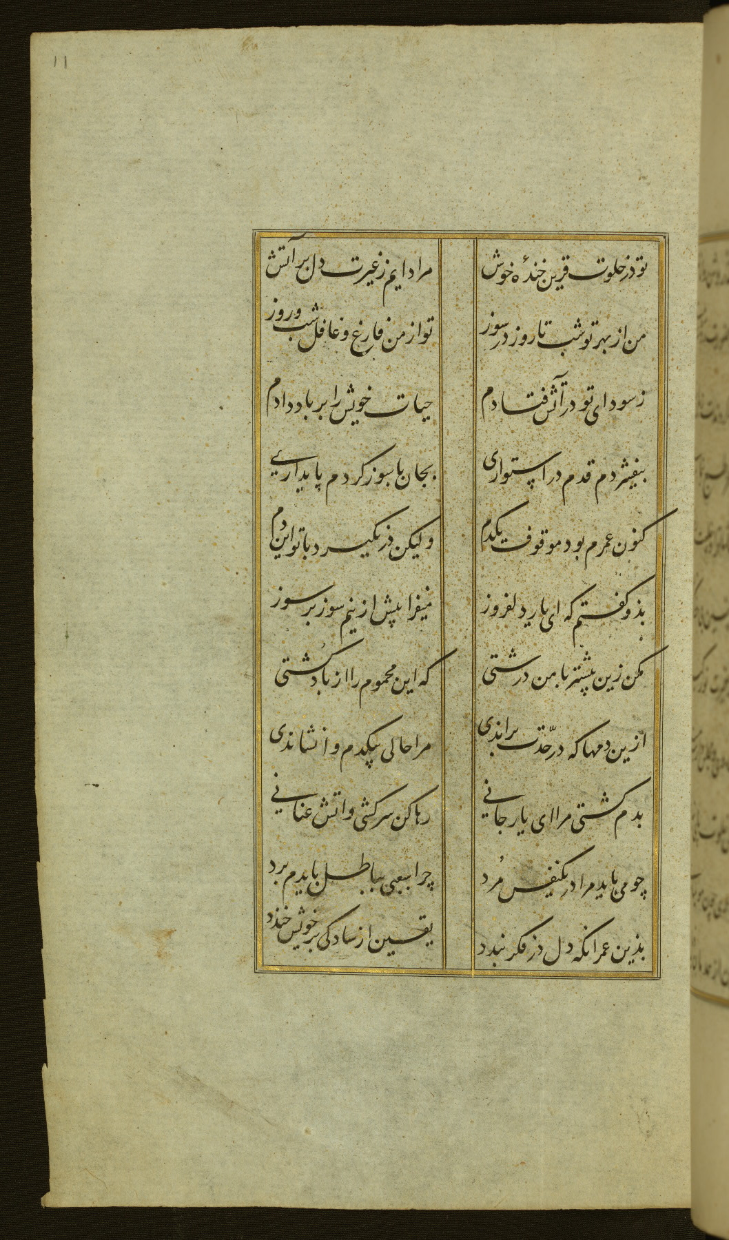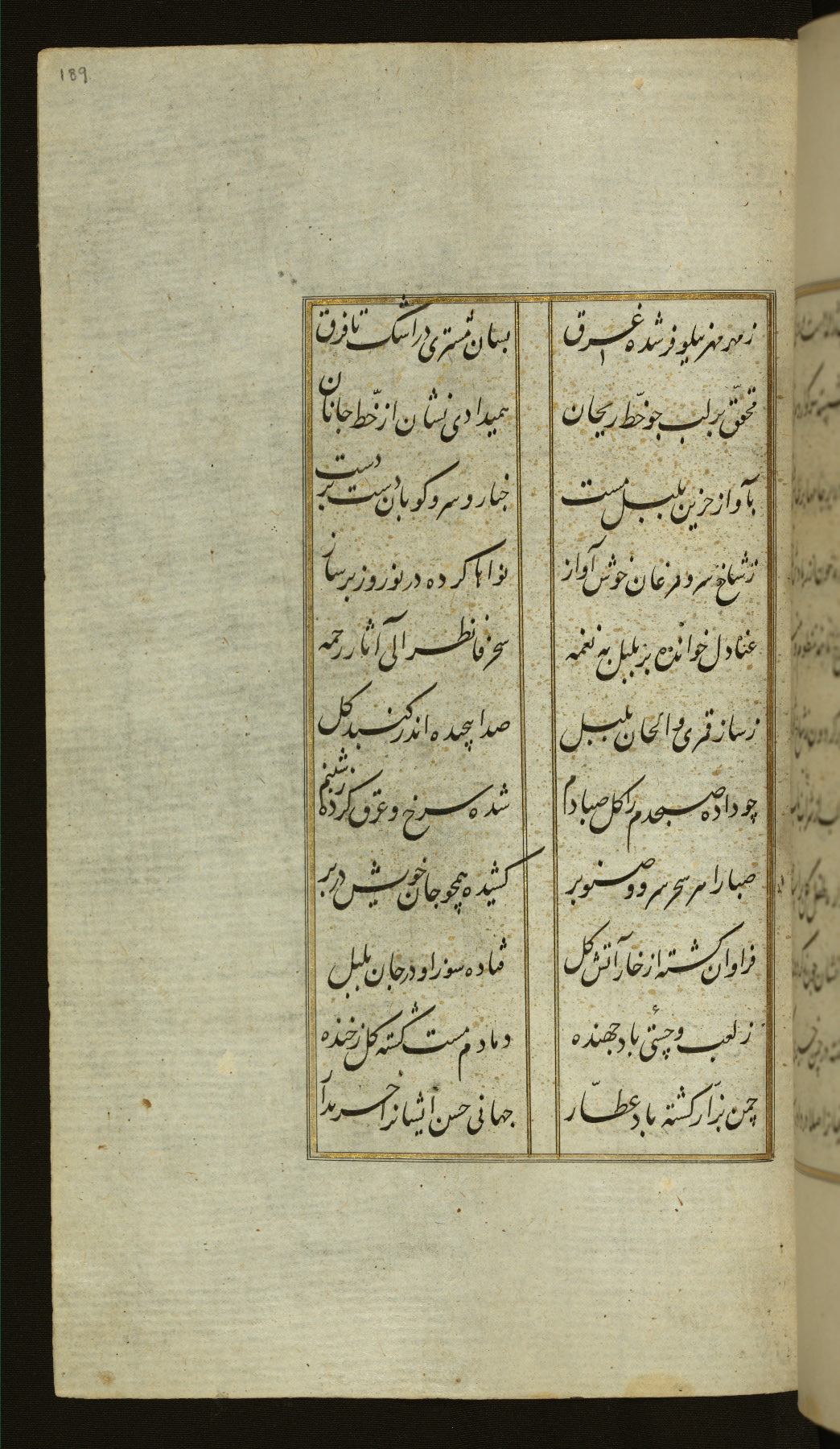 This manuscript is an illustrated copy of the well-known poem recounting the platonic love story between Mihr (the Sun), the son of Shāhpūr, and his vizier's son Mushtarī (Jupiter). The story of 90 chapters was composed by Muḥammad ibn Aḥmad ‘Aṣṣār Tabrīzī (d. 784 AH / 1382 CE). The present copy was written in nasta‘līq script by Murshid al-Kātib in 881 AH / 1476 CE. Considering the number of surviving manuscripts in which this calligrapher’s name is found, it seems he was particularly prolific. The present codex is illustrated with nine paintings. The gold-brushed leather binding with doublures of red leather decorated with filigree work is original to the manuscript.