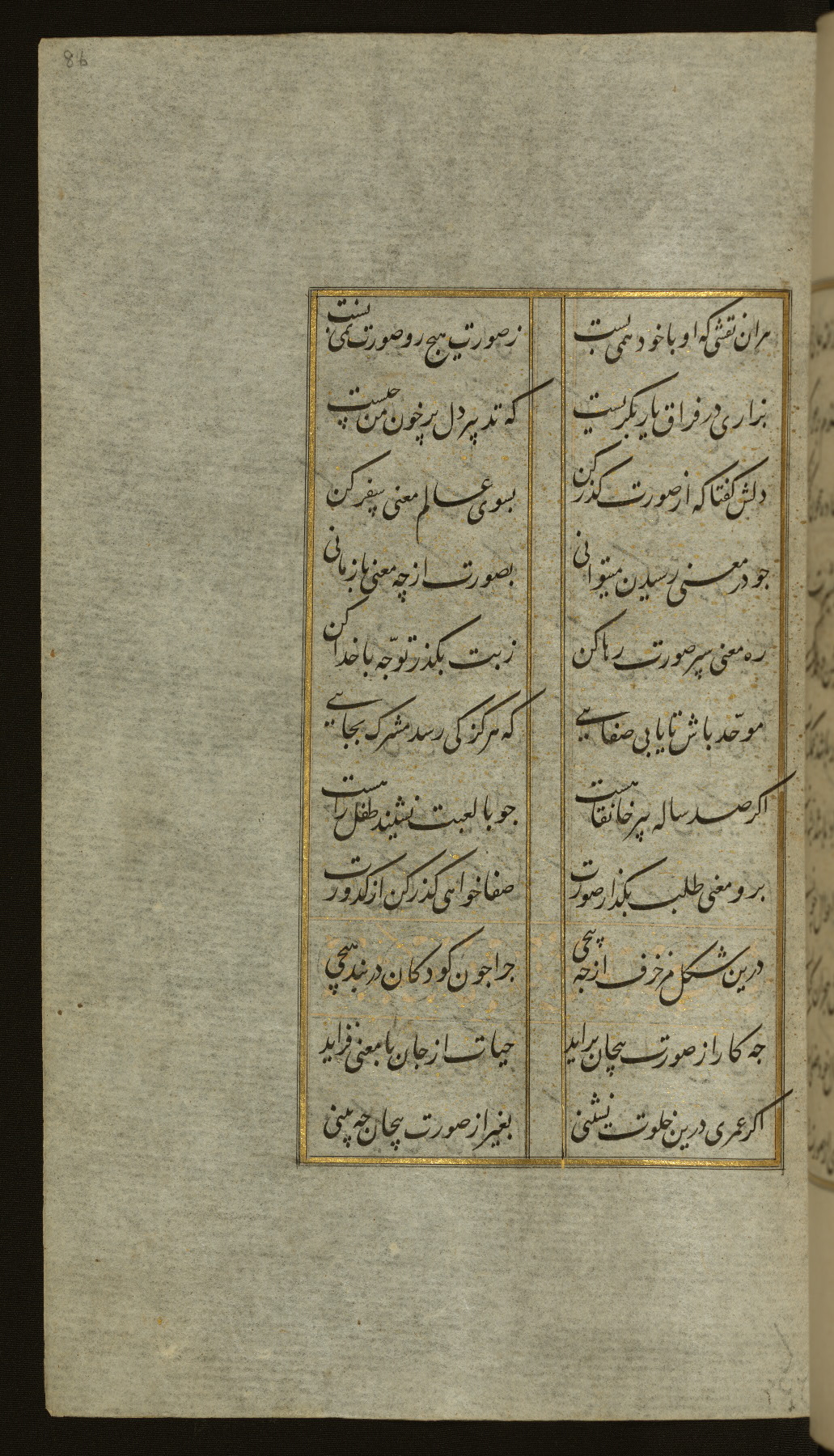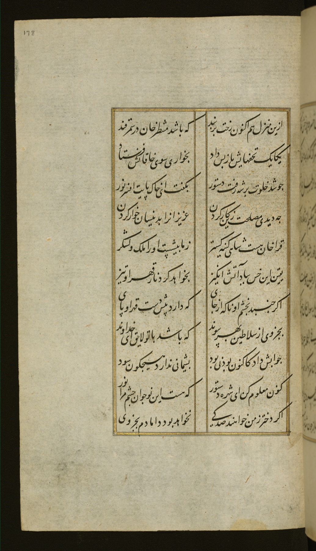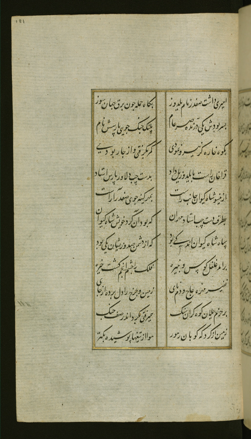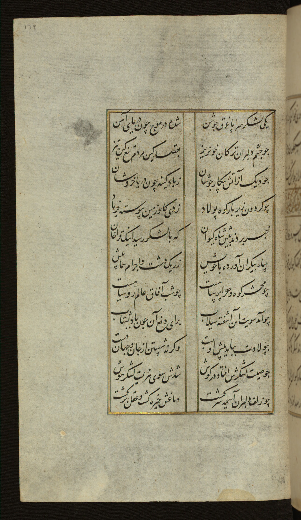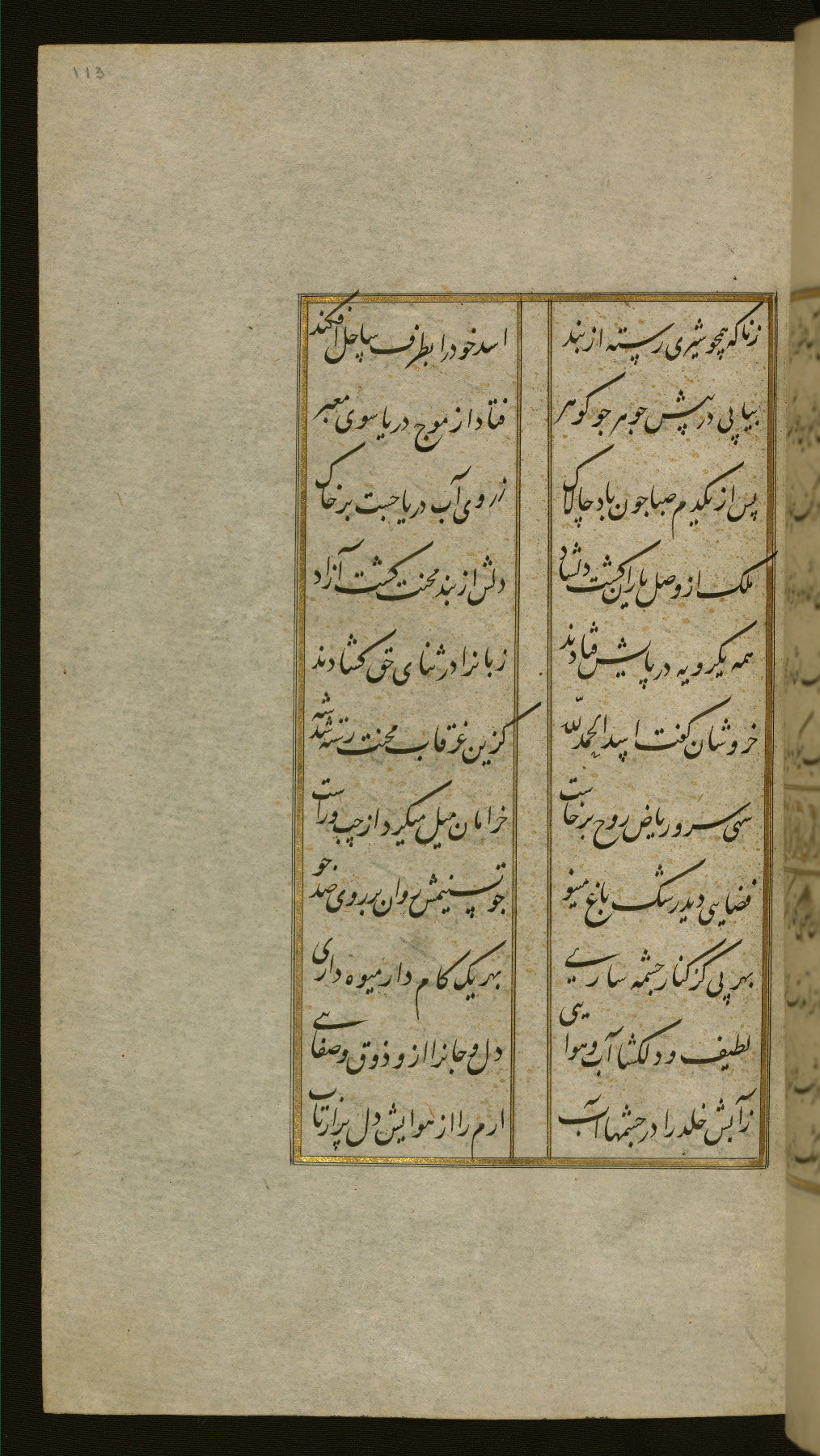 This manuscript is an illustrated copy of the well-known poem recounting the platonic love story between Mihr (the Sun), the son of Shāhpūr, and his vizier's son Mushtarī (Jupiter). The story of 90 chapters was composed by Muḥammad ibn Aḥmad ‘Aṣṣār Tabrīzī (d. 784 AH / 1382 CE). The present copy was written in nasta‘līq script by Murshid al-Kātib in 881 AH / 1476 CE. Considering the number of surviving manuscripts in which this calligrapher’s name is found, it seems he was particularly prolific. The present codex is illustrated with nine paintings. The gold-brushed leather binding with doublures of red leather decorated with filigree work is original to the manuscript.