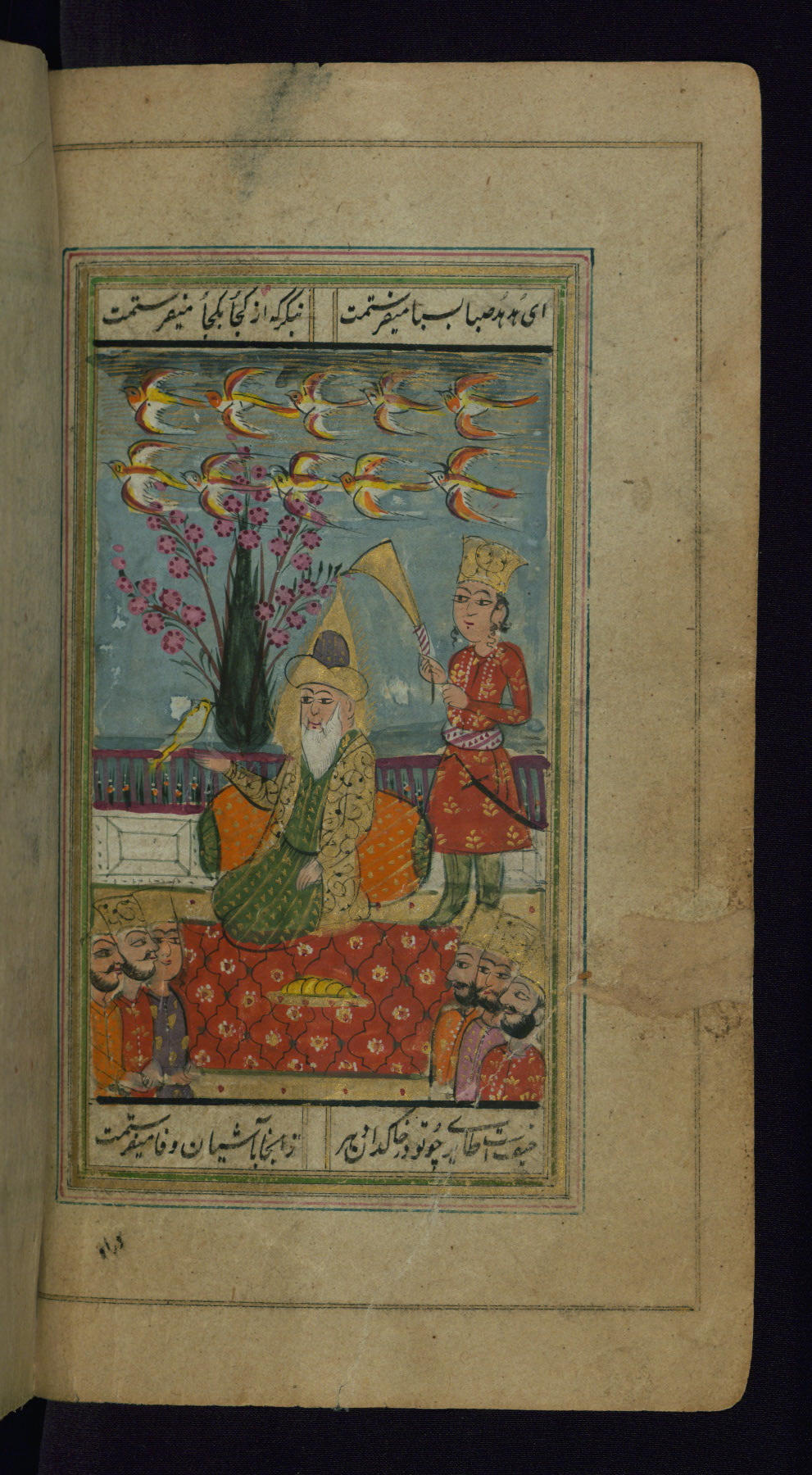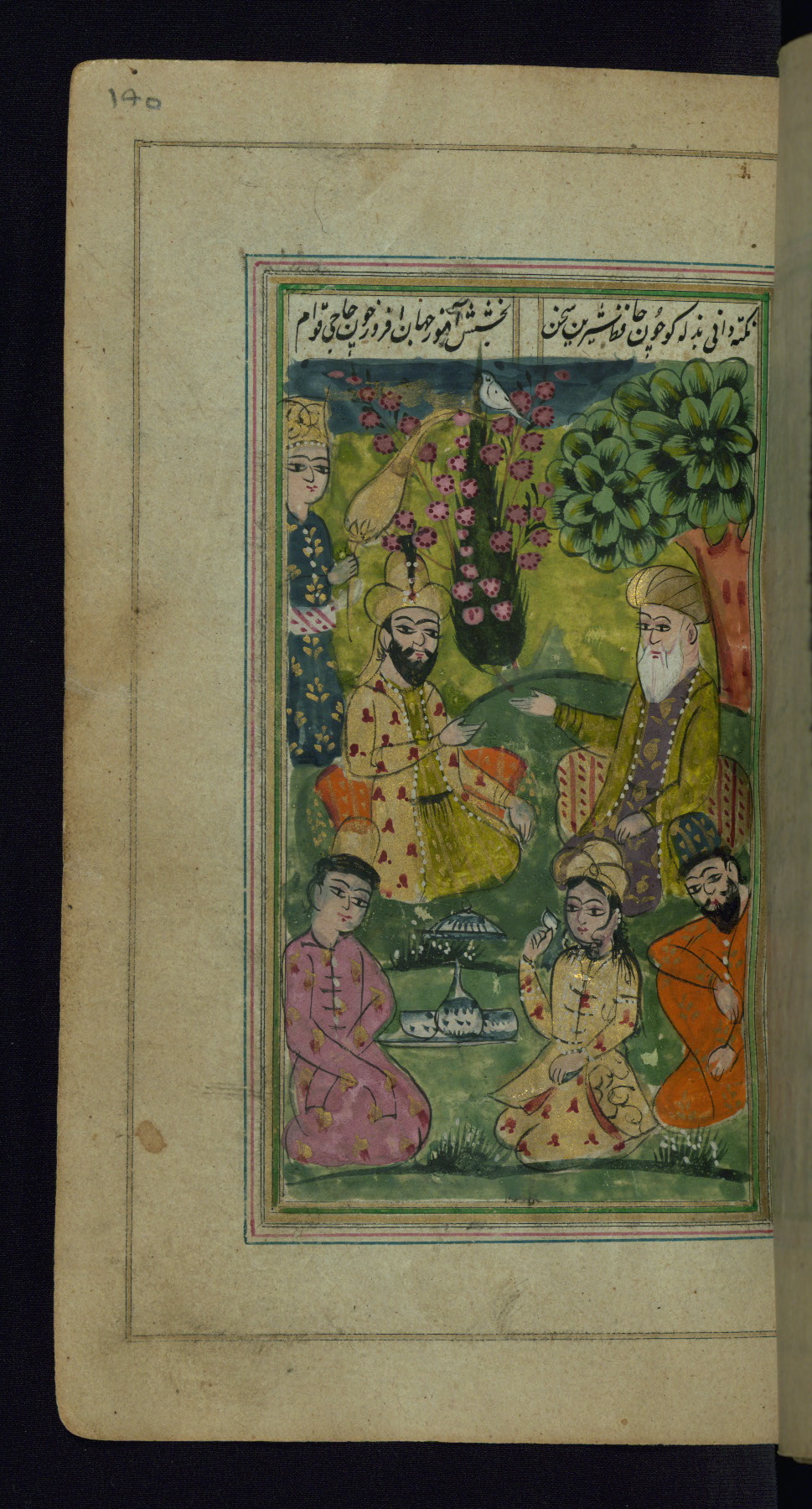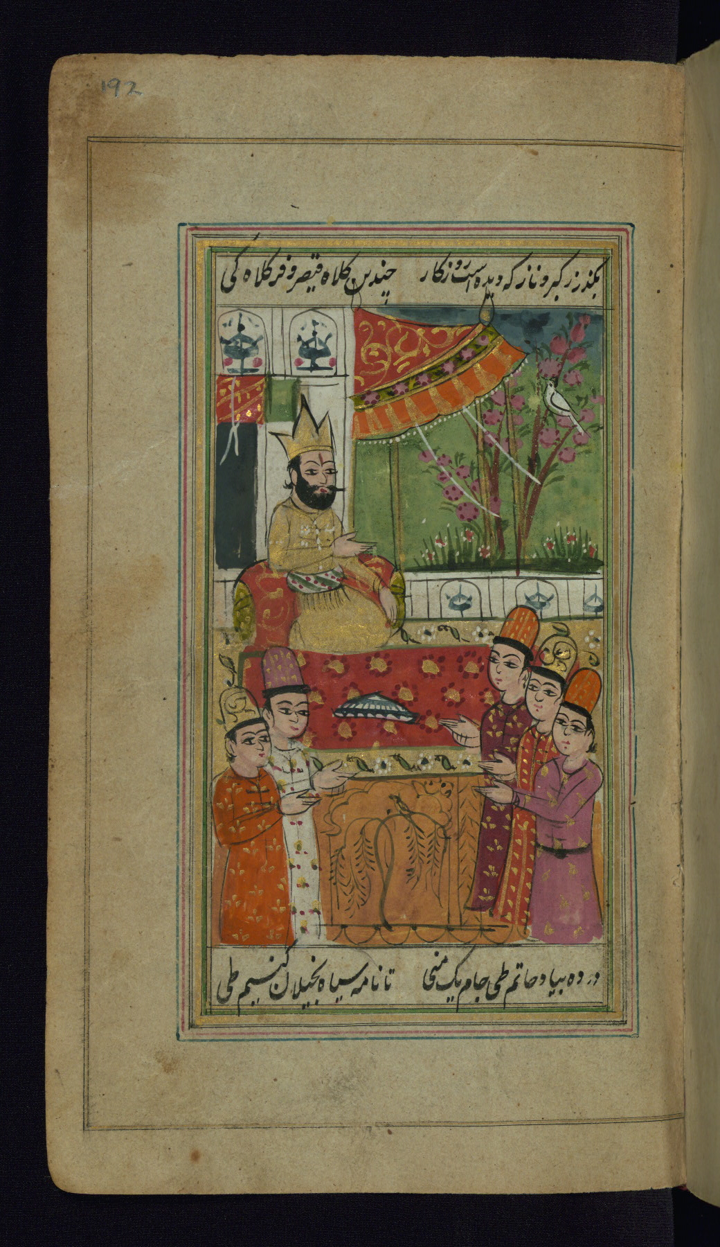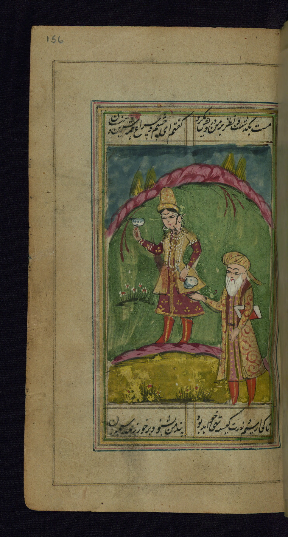- Label: This scene refers to the first couplet on the page, referring to Jamshīd and his magic bowl (jām).