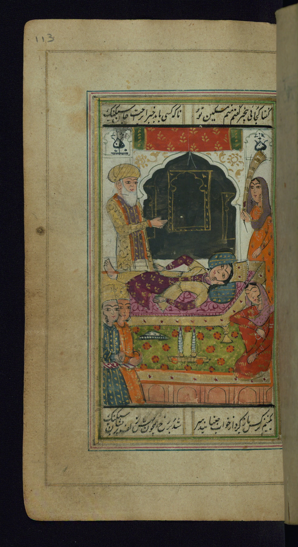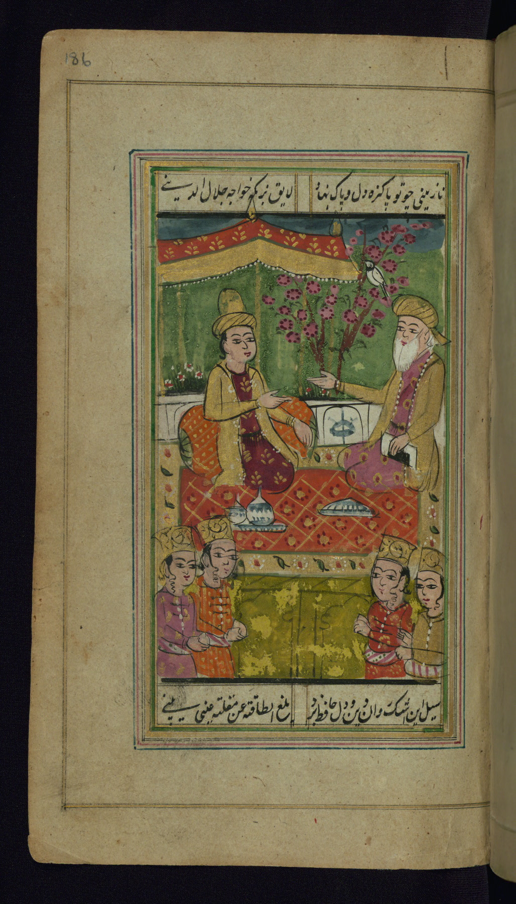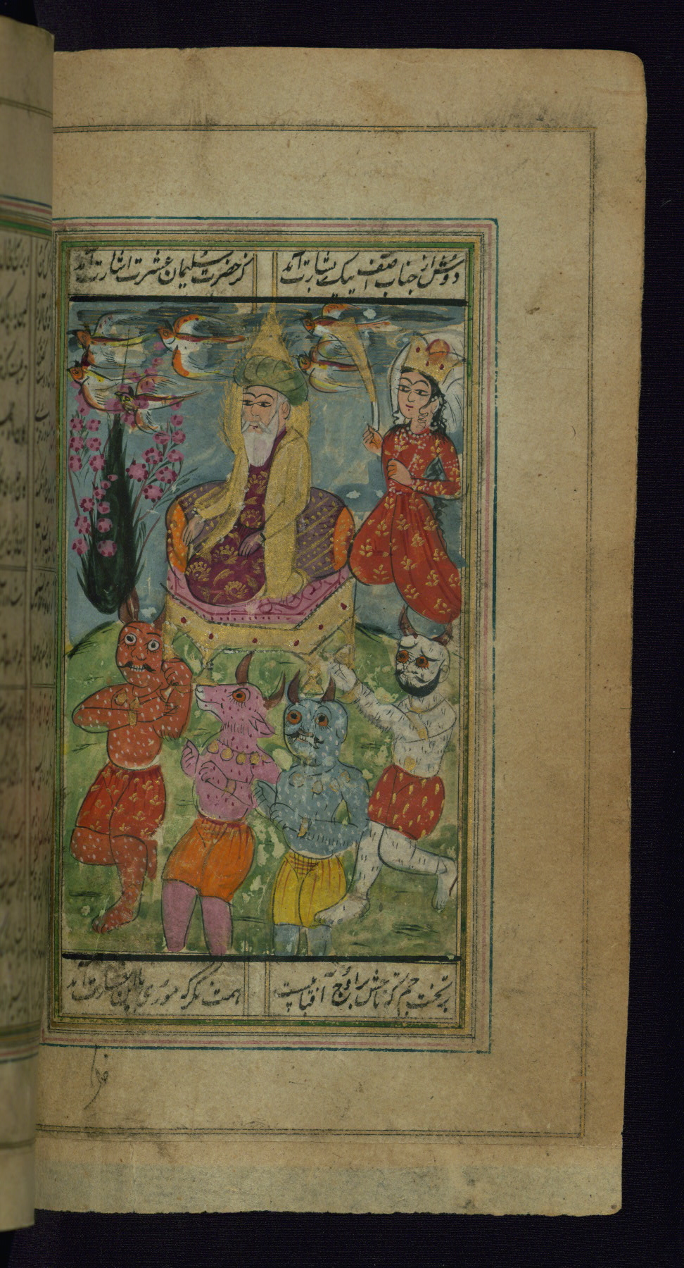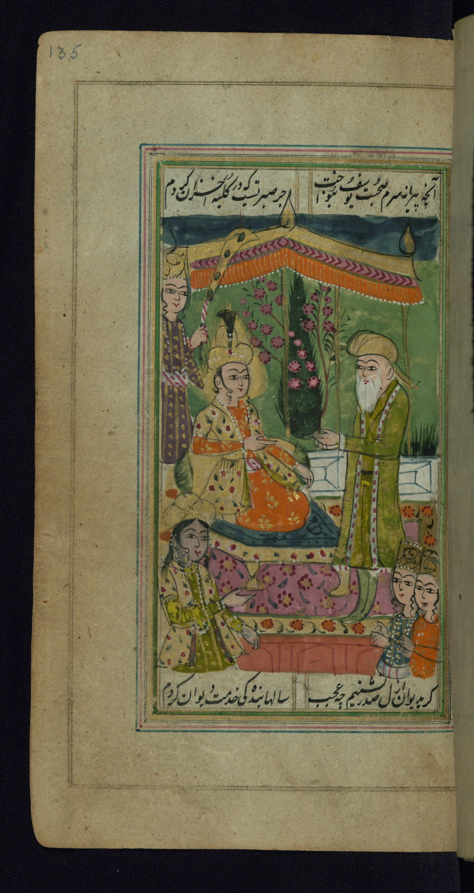 - Label: This scene refers to the first couplet on the page, referring to Jamshīd and his magic bowl (jām).