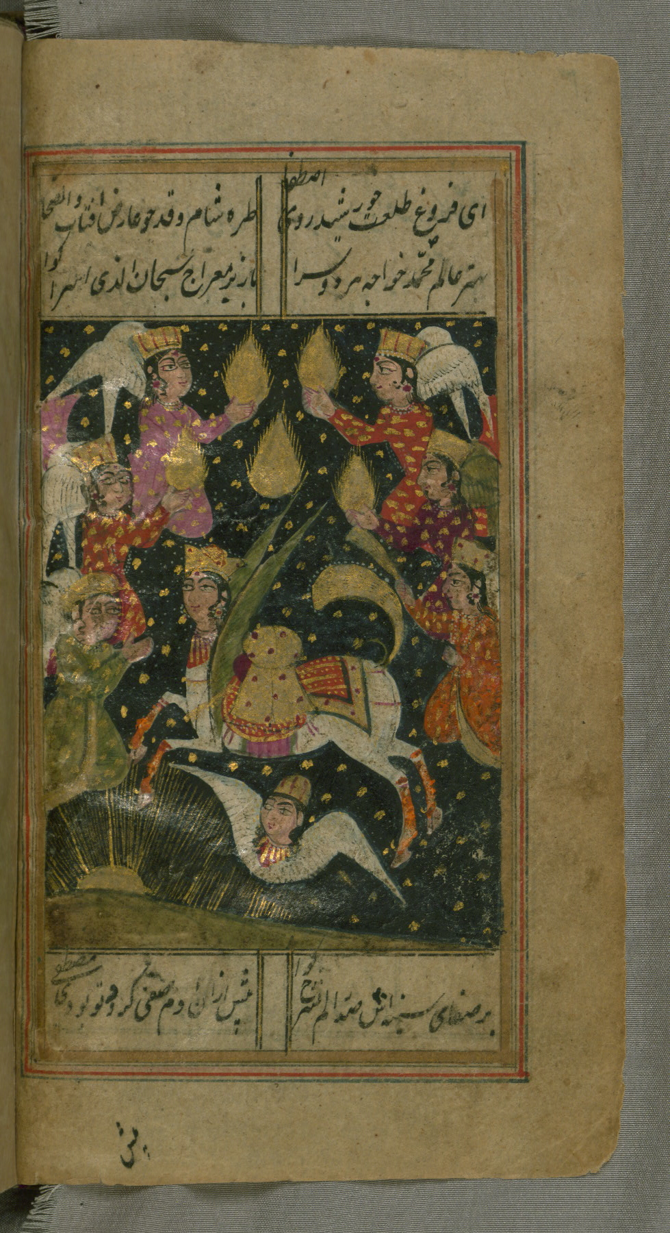 This is an illustrated and illuminated copy of the collection of poems (dīvān) by Shams al-Dīn Muḥammad Ḥāfiz al-Shīrāzī (fl. eighth century AH / fourteenth CE), produced in India, possibly Kashmir, in the thirteenth century AH / nineteenth CE. It opens with an illuminated headpiece with the doxological formula (basmalah) (fol. 1b); there are twenty illustrations. The lacquer binding with central floral design is contemporary with the manuscript.