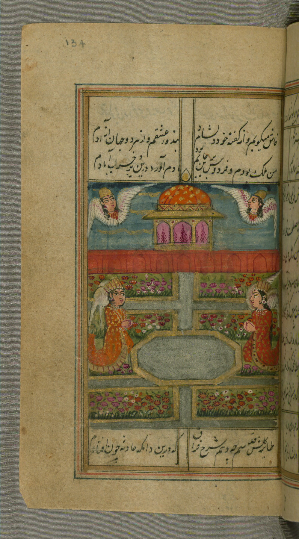 - Title: Paradise represented by a pavilion in a garden with water pools and angels