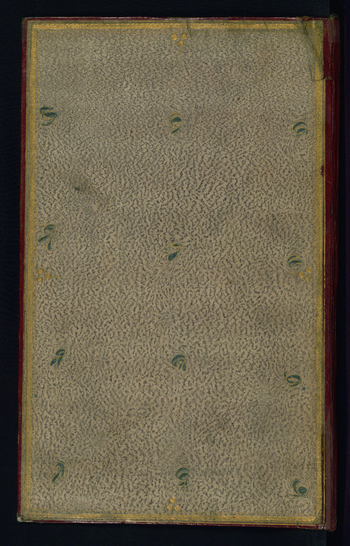 This is a tenth-century AH / sixteenth CE Safavid copy of the first collection of poetry, or Dīvān-i avval (also known as Fātiḥat al-shabāb), of Nūr al-Dīn Jāmī (d. 898 AH / 1492 CE), written in 884 AH / 1479 CE. The binding is Ottoman and is attributable to the twelfth century AH / eighteenth CE. It is not contemporary with the manuscript. It is of the type sometimes referred to as çahârkûşe' cild, from the Persian chahār gūshah (four corners), where the spine and edges of the boards are covered with leather and the main area consists of paper, in this case marbled paper.