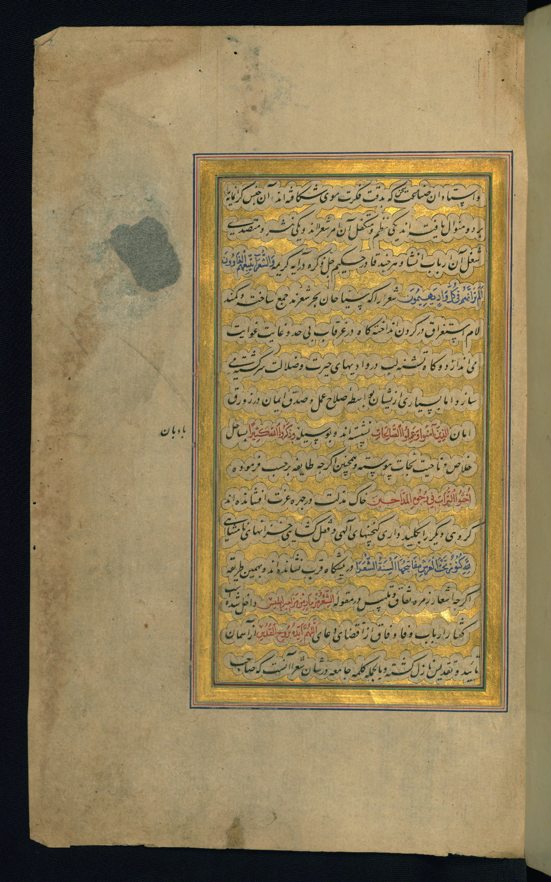 - Hand note: Written in black nastaʿlīq script with incidentals in red and blue (only at the beginning of the codex)