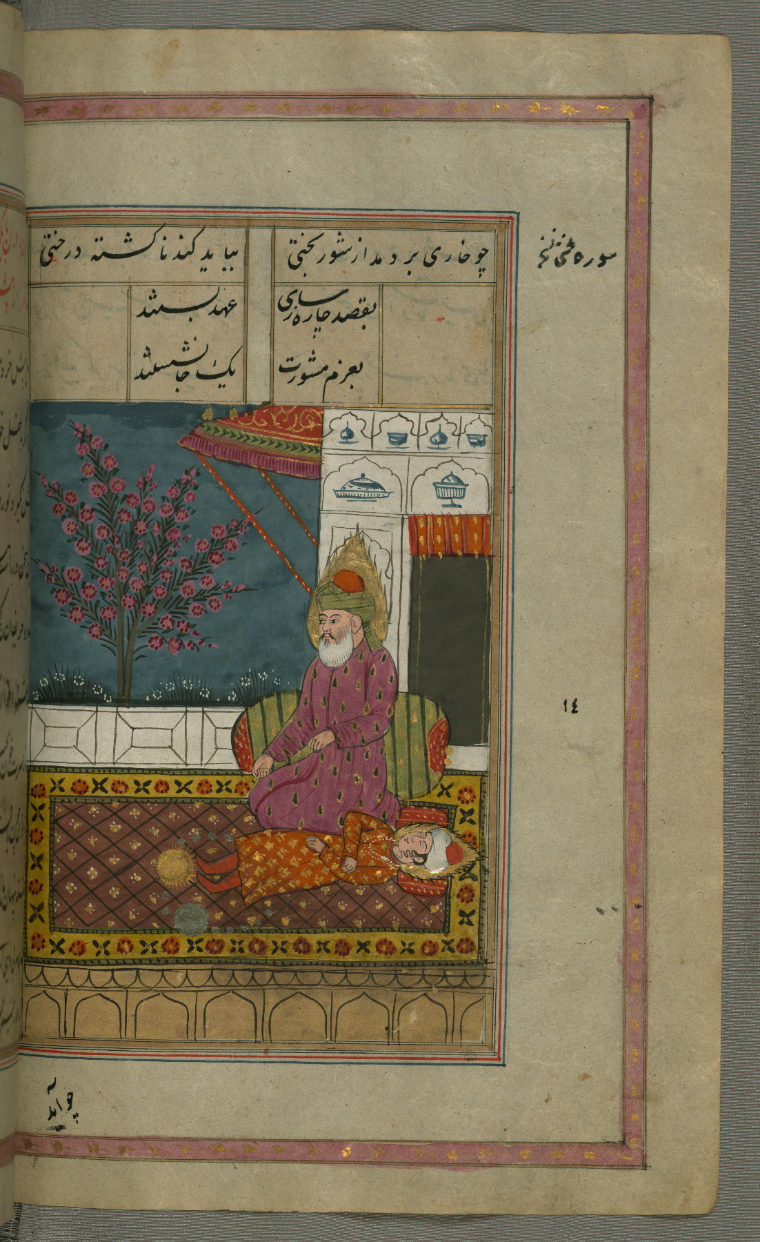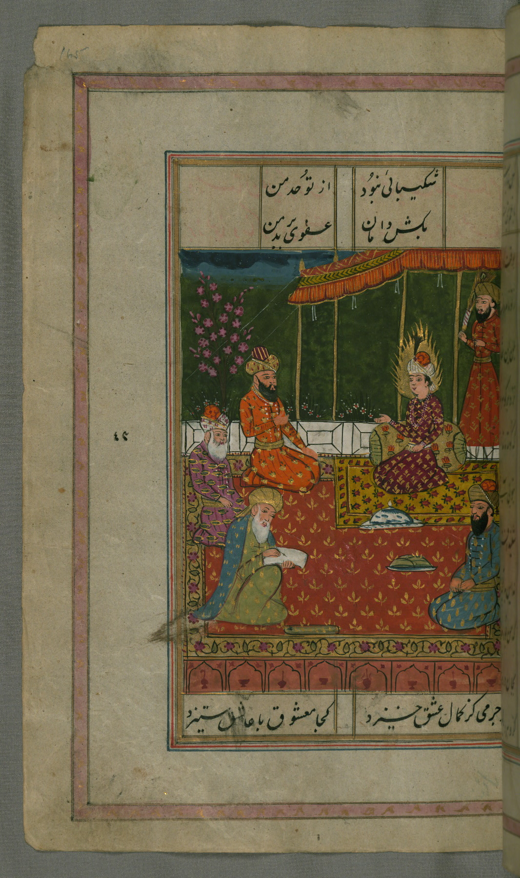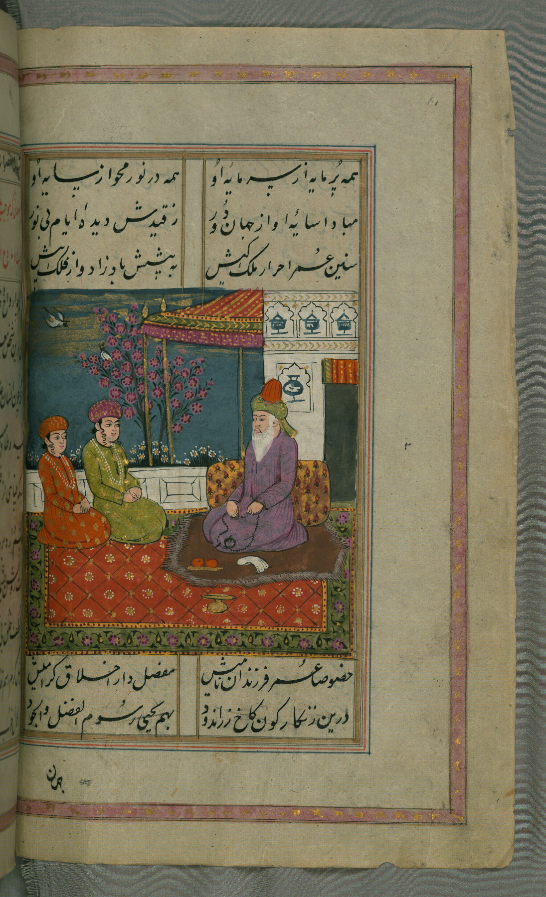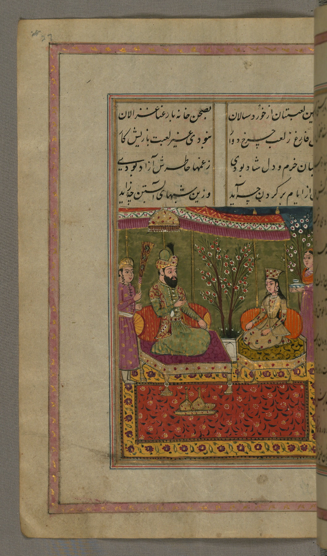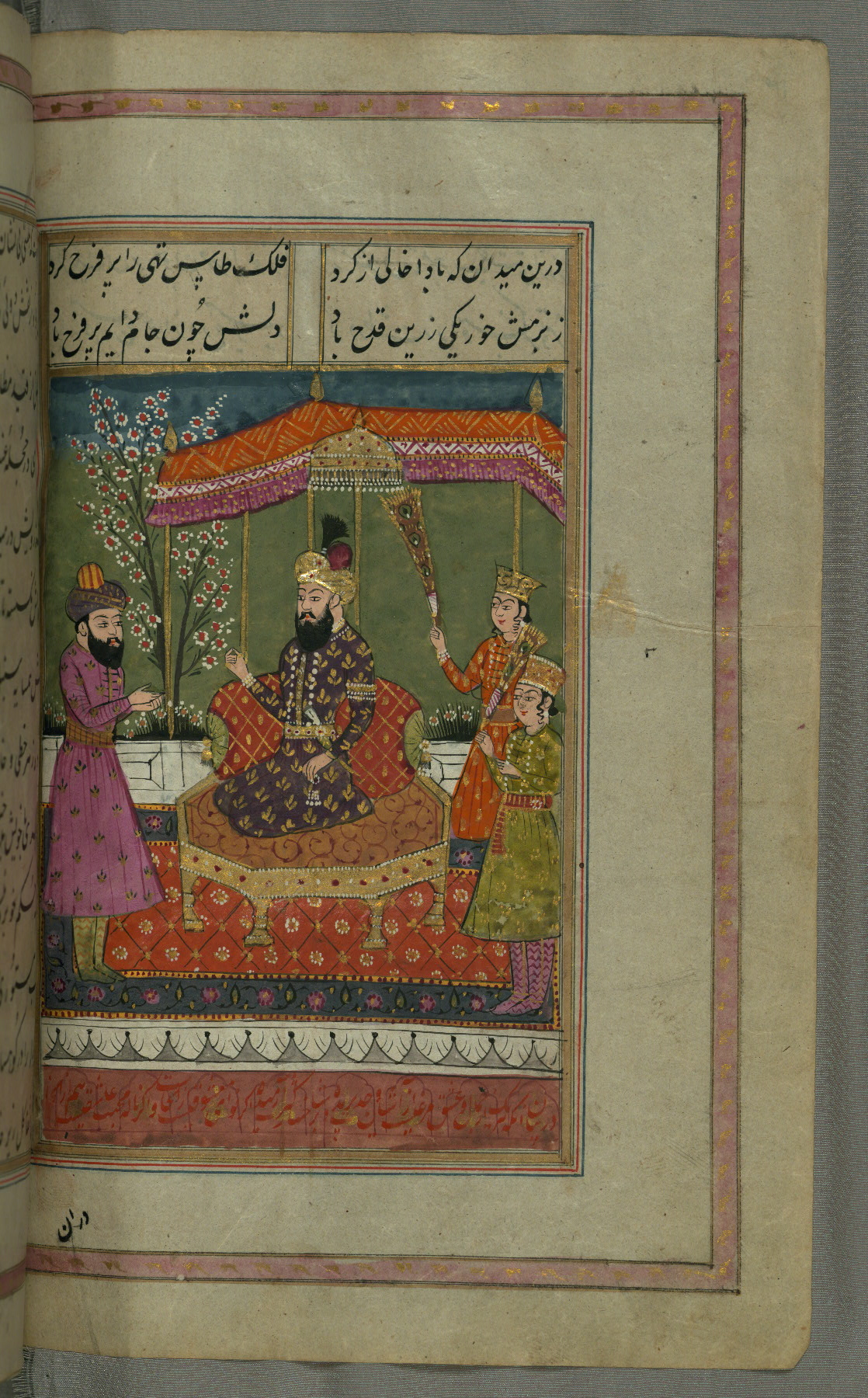 - Title: Khvājah Faqr, to whom an accompanying poem is dedicated, seated on the throne