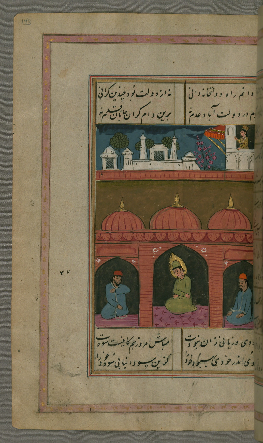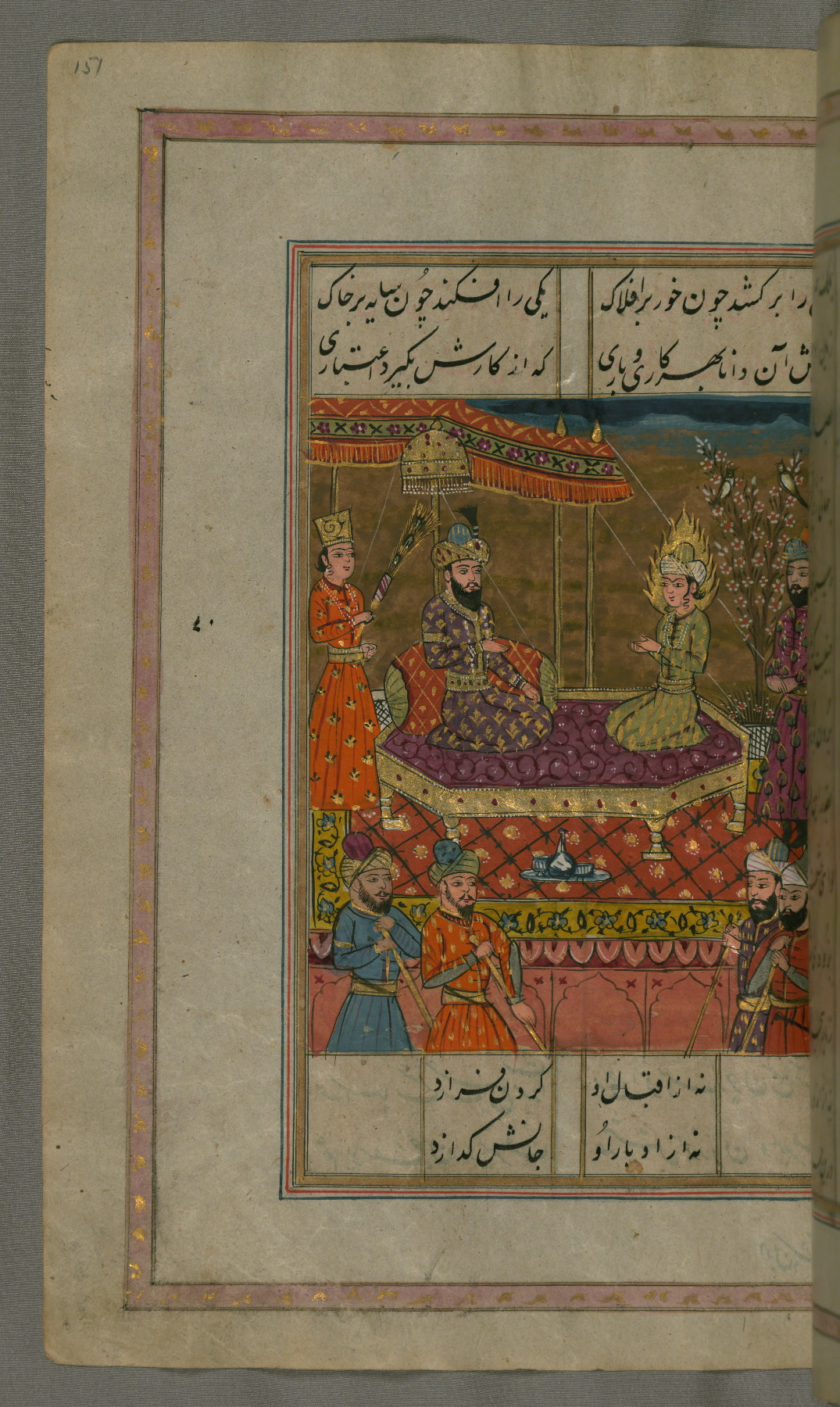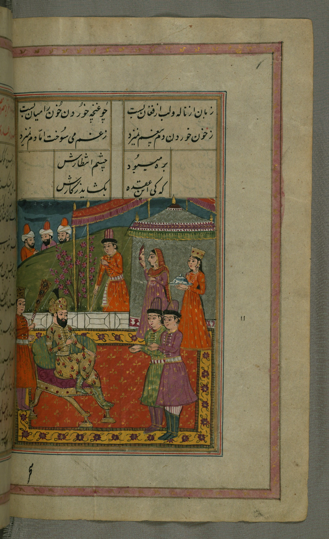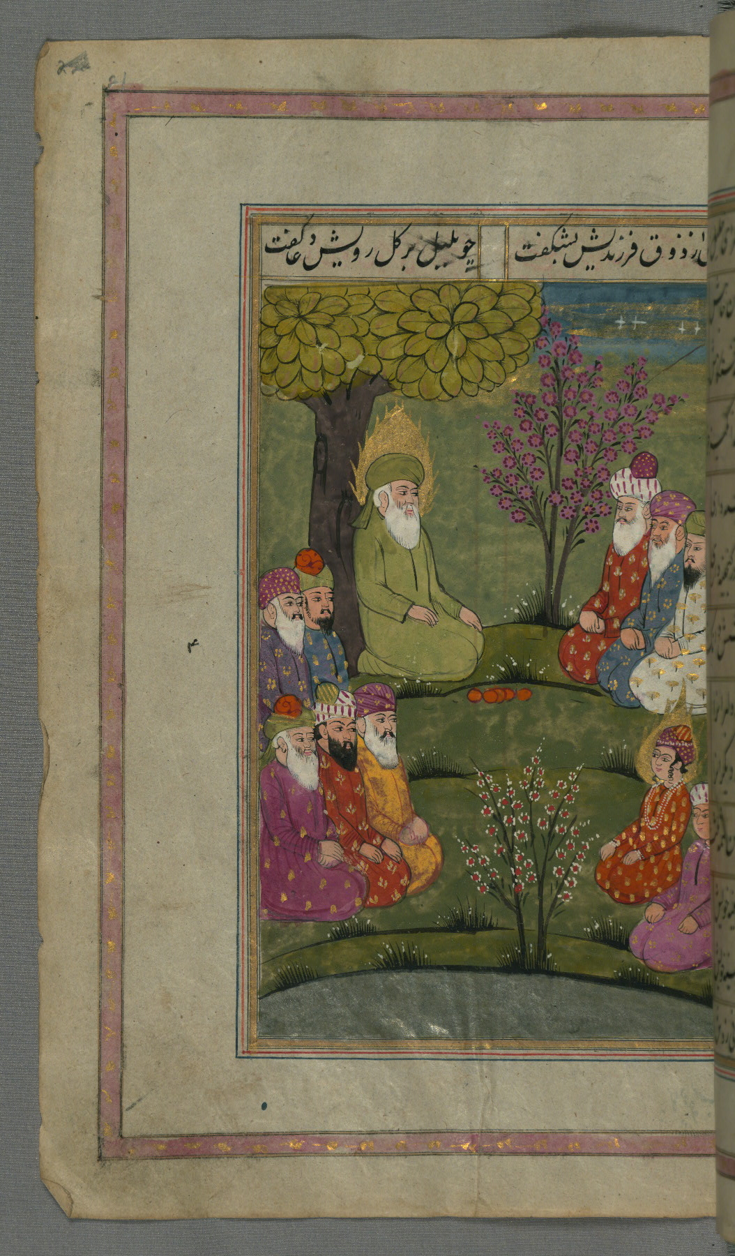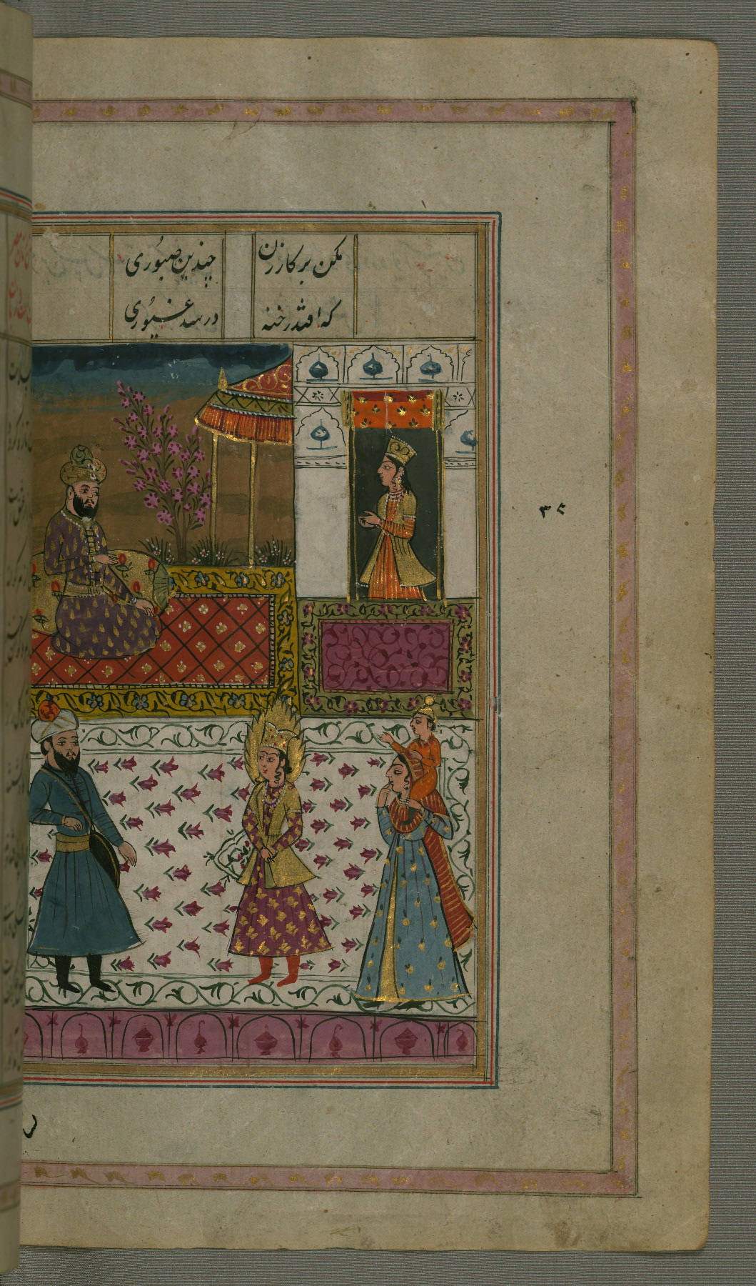 - Title: Khvājah Faqr, to whom an accompanying poem is dedicated, seated on the throne