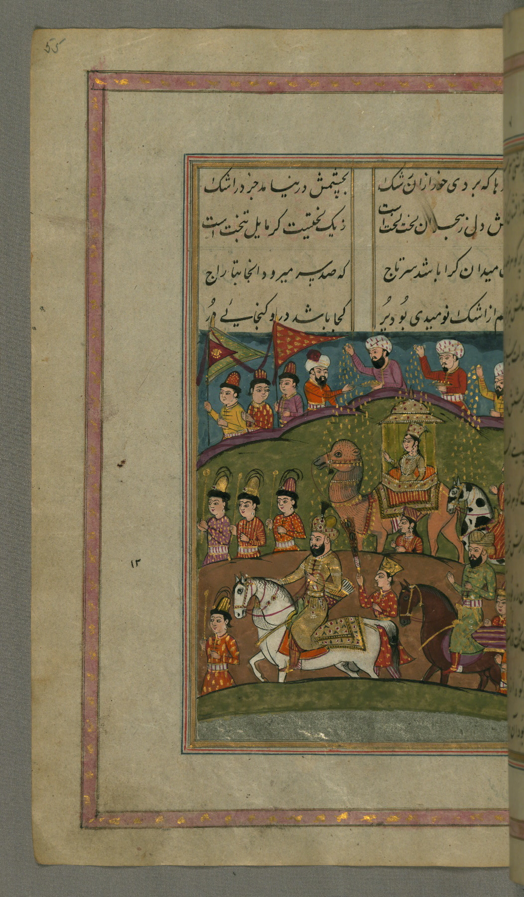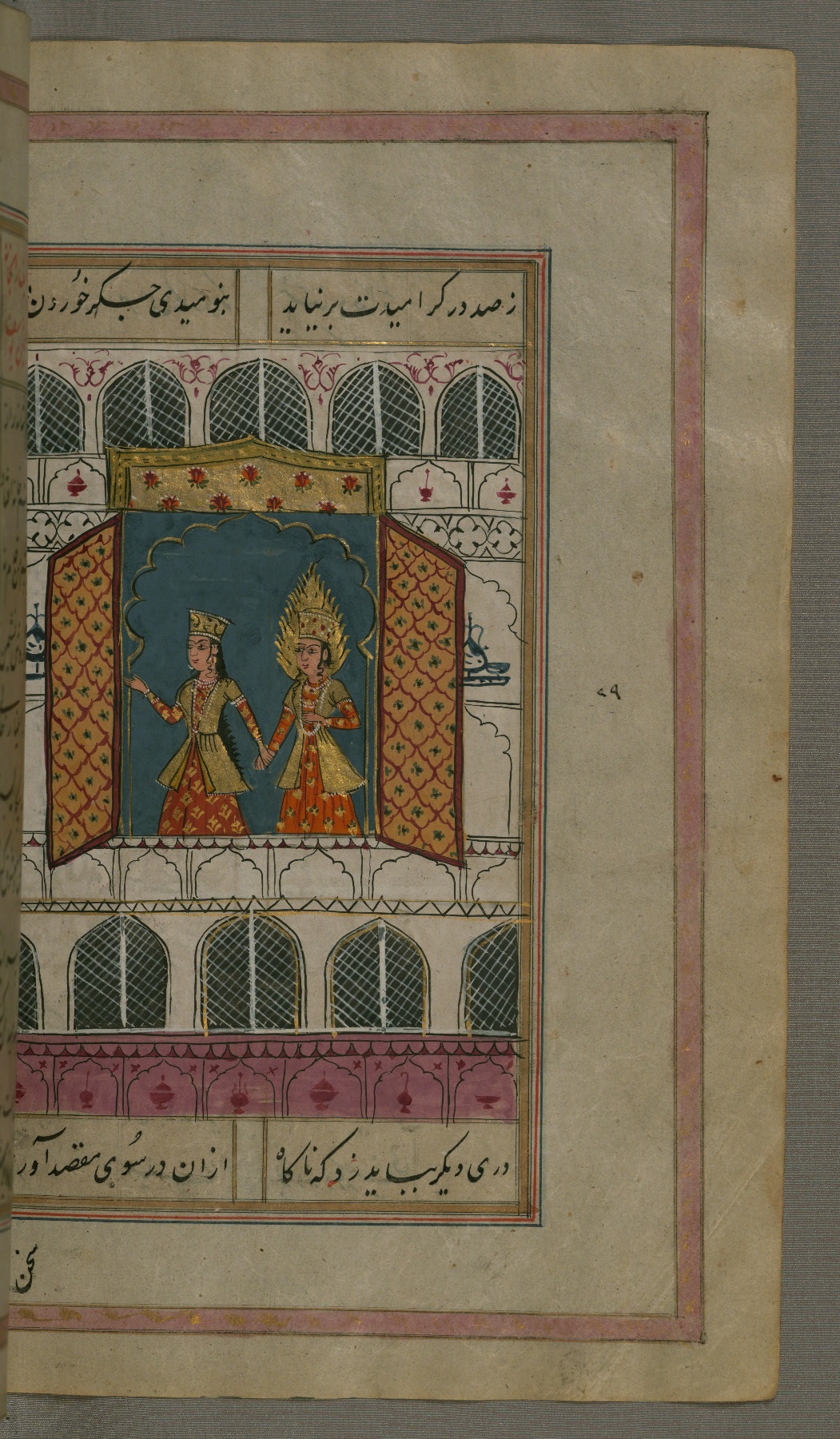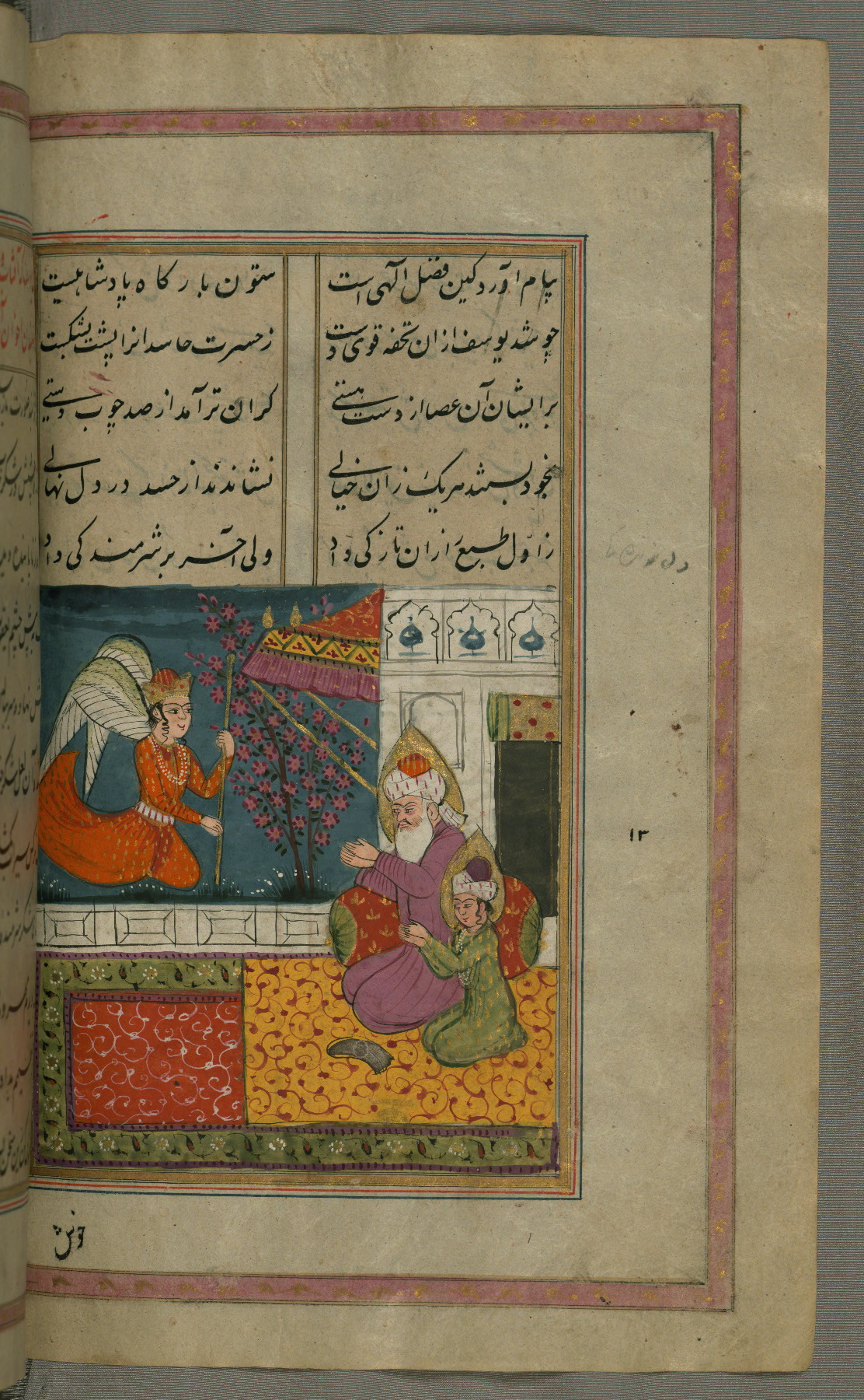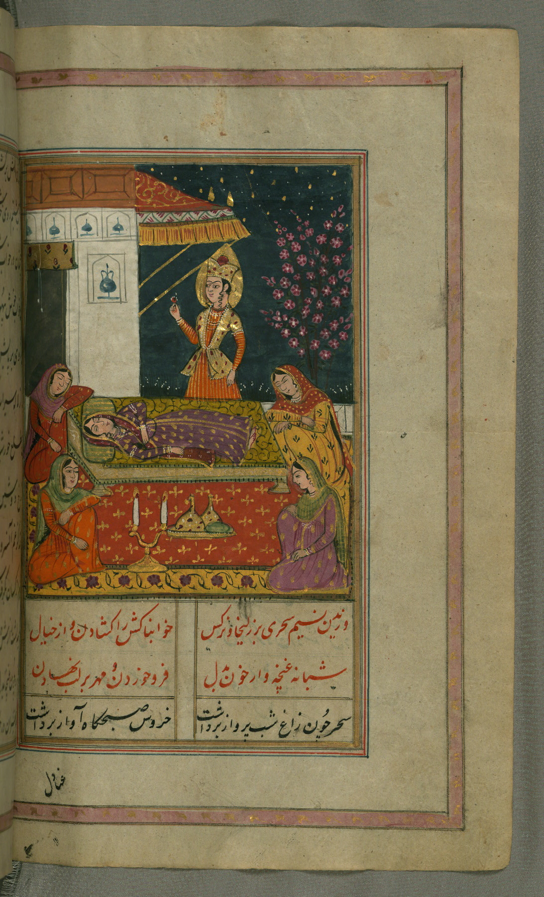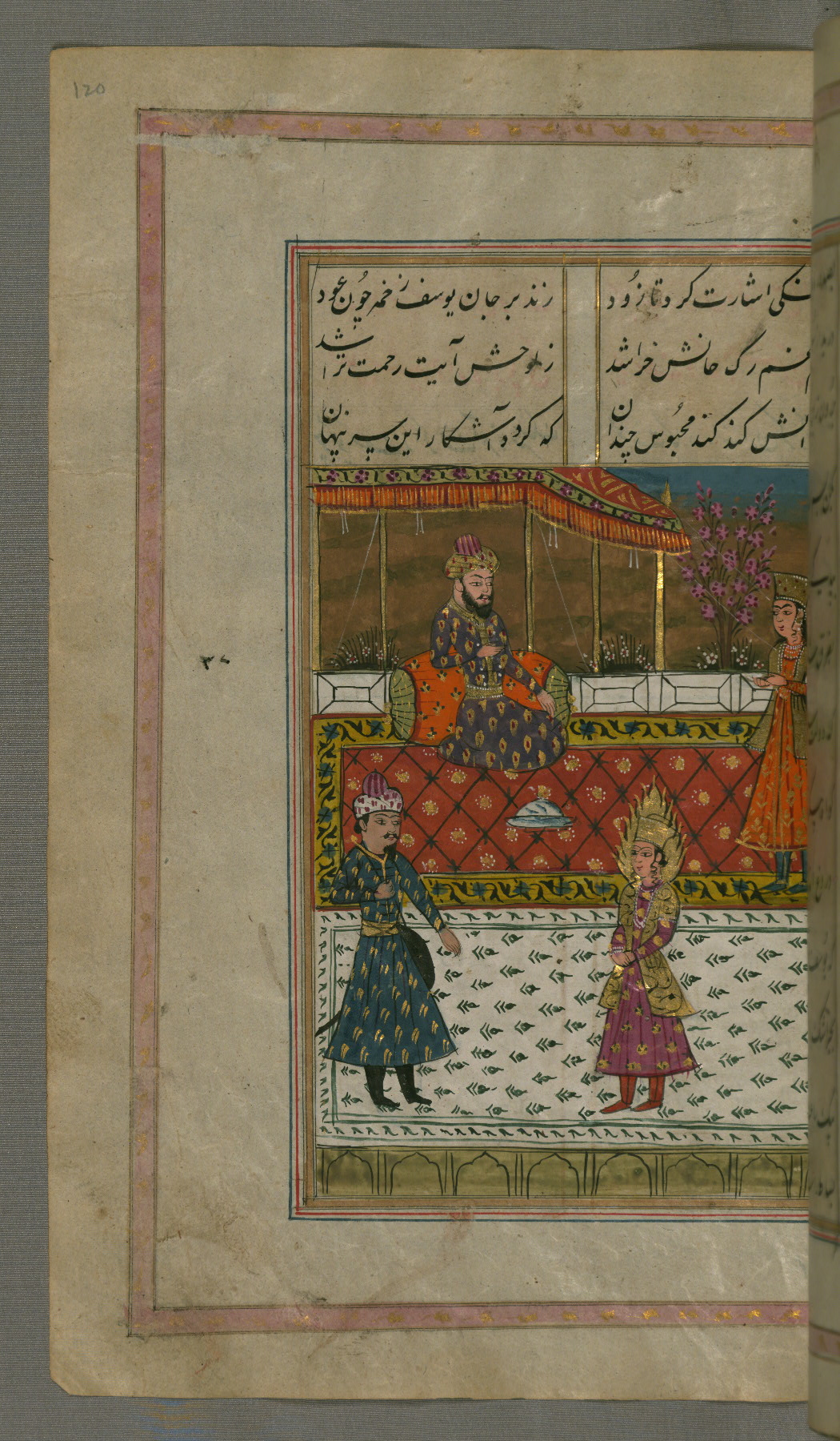 This is an illuminated and illustrated copy of the famous story of Joseph and the Potiphar's wife (Yūsuf va Zulaykhā) by Jāmī (d. 898 AH / 1492 CE). The manuscript was written in India in the late twelfth century AH / eighteenth CE in black nastaʿlīq script. There are forty-seven paintings illustrating the text. The lacquer binding with floral decoration is attributable to the thirteenth century AH / nineteenth CE.