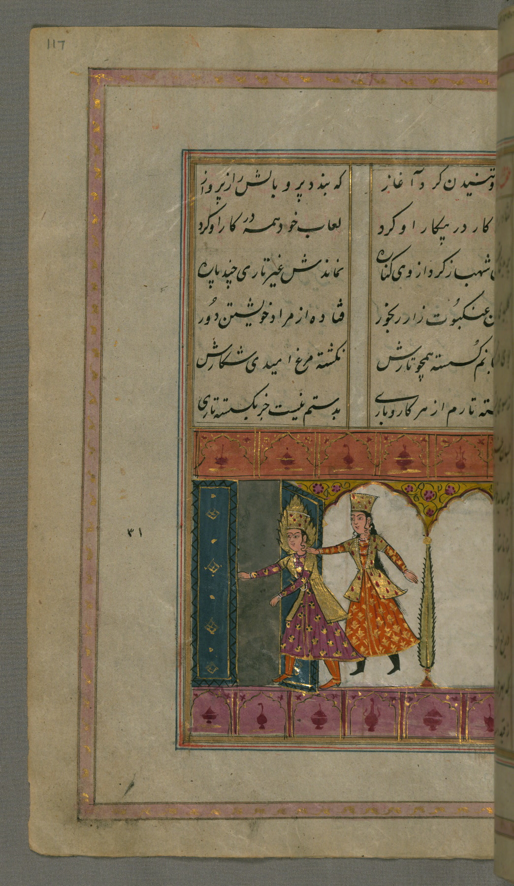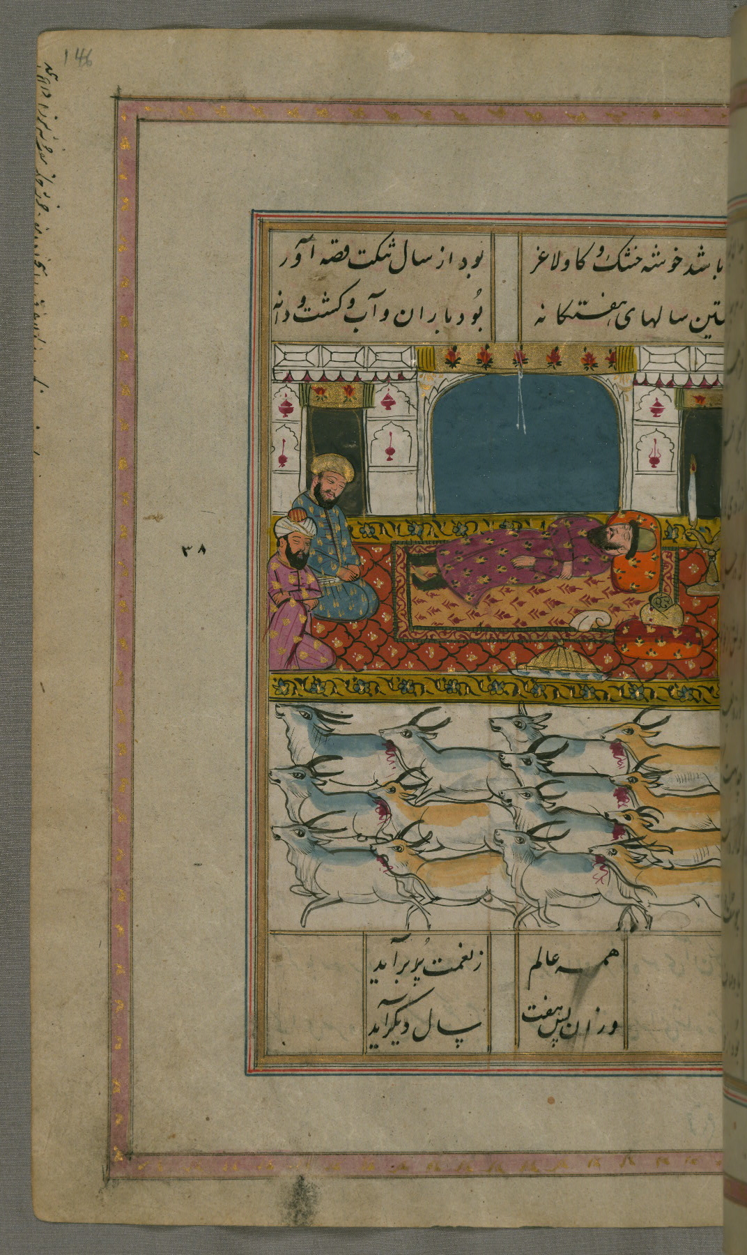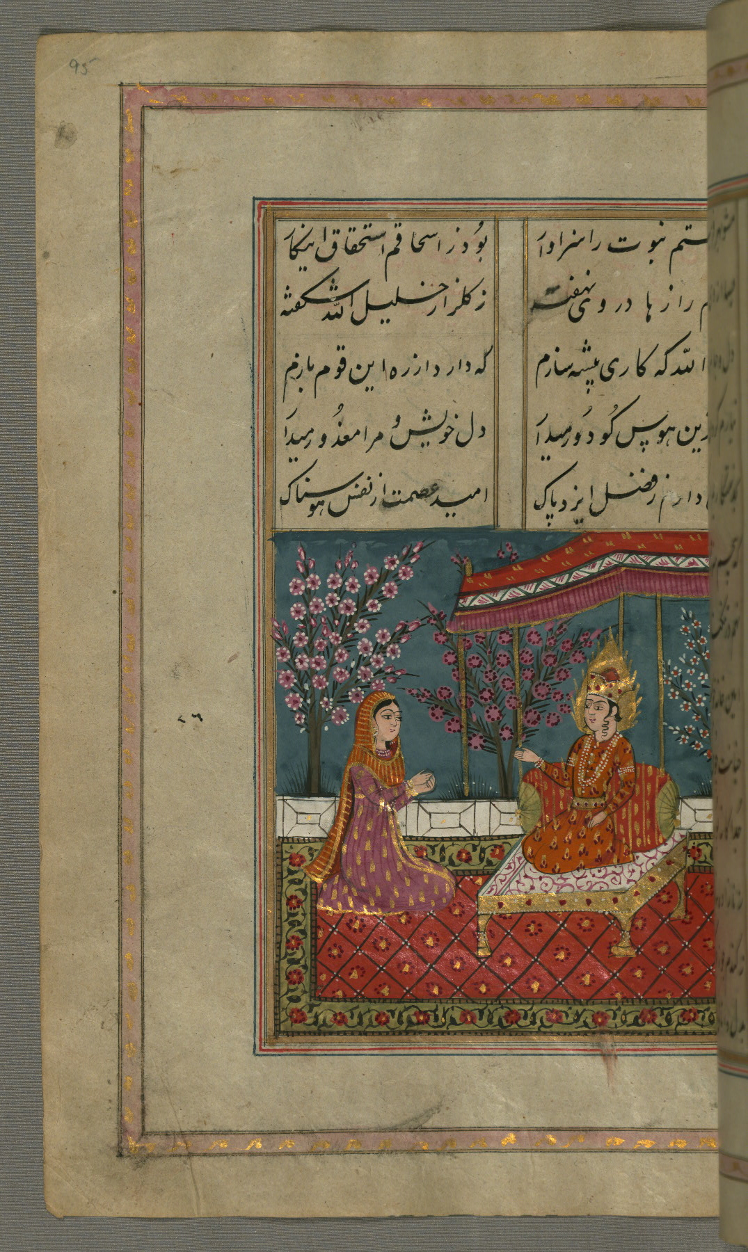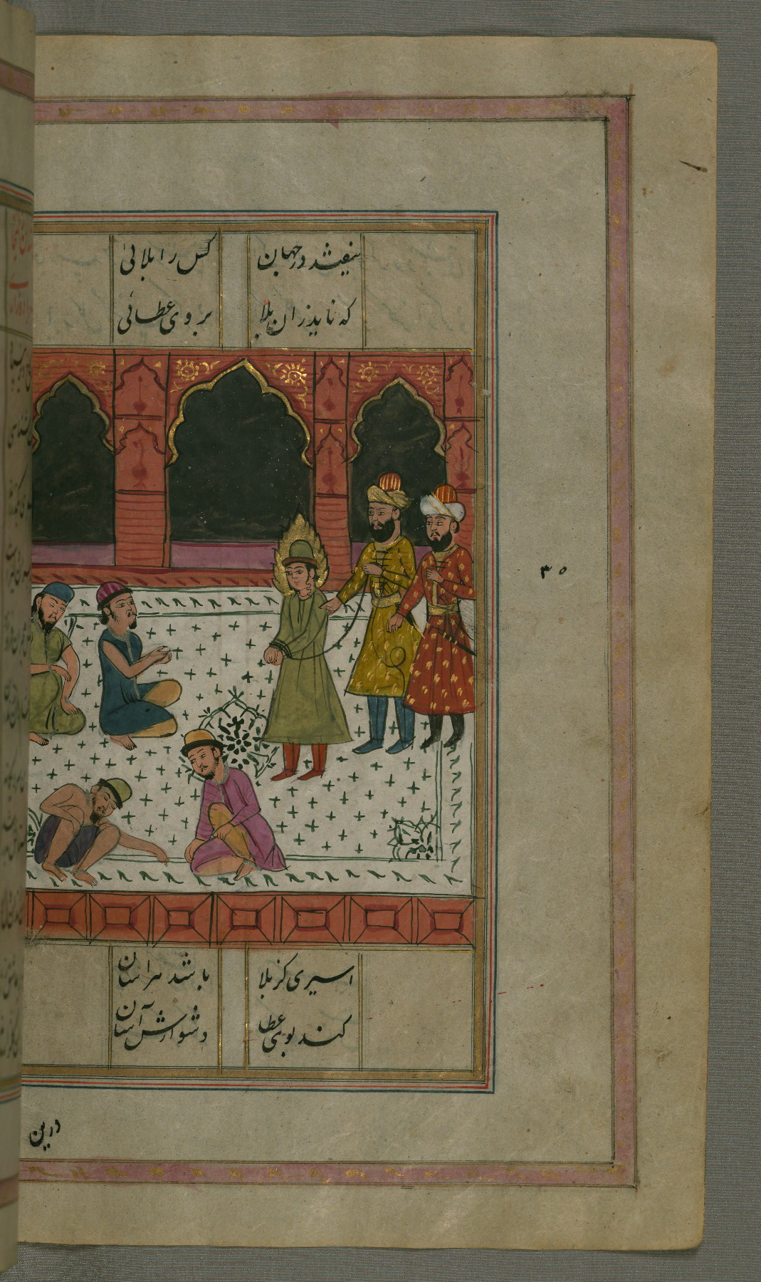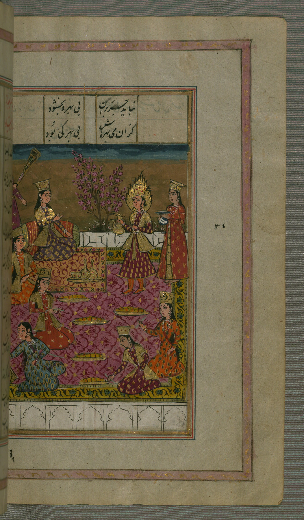 This is an illuminated and illustrated copy of the famous story of Joseph and the Potiphar's wife (Yūsuf va Zulaykhā) by Jāmī (d. 898 AH / 1492 CE). The manuscript was written in India in the late twelfth century AH / eighteenth CE in black nastaʿlīq script. There are forty-seven paintings illustrating the text. The lacquer binding with floral decoration is attributable to the thirteenth century AH / nineteenth CE.