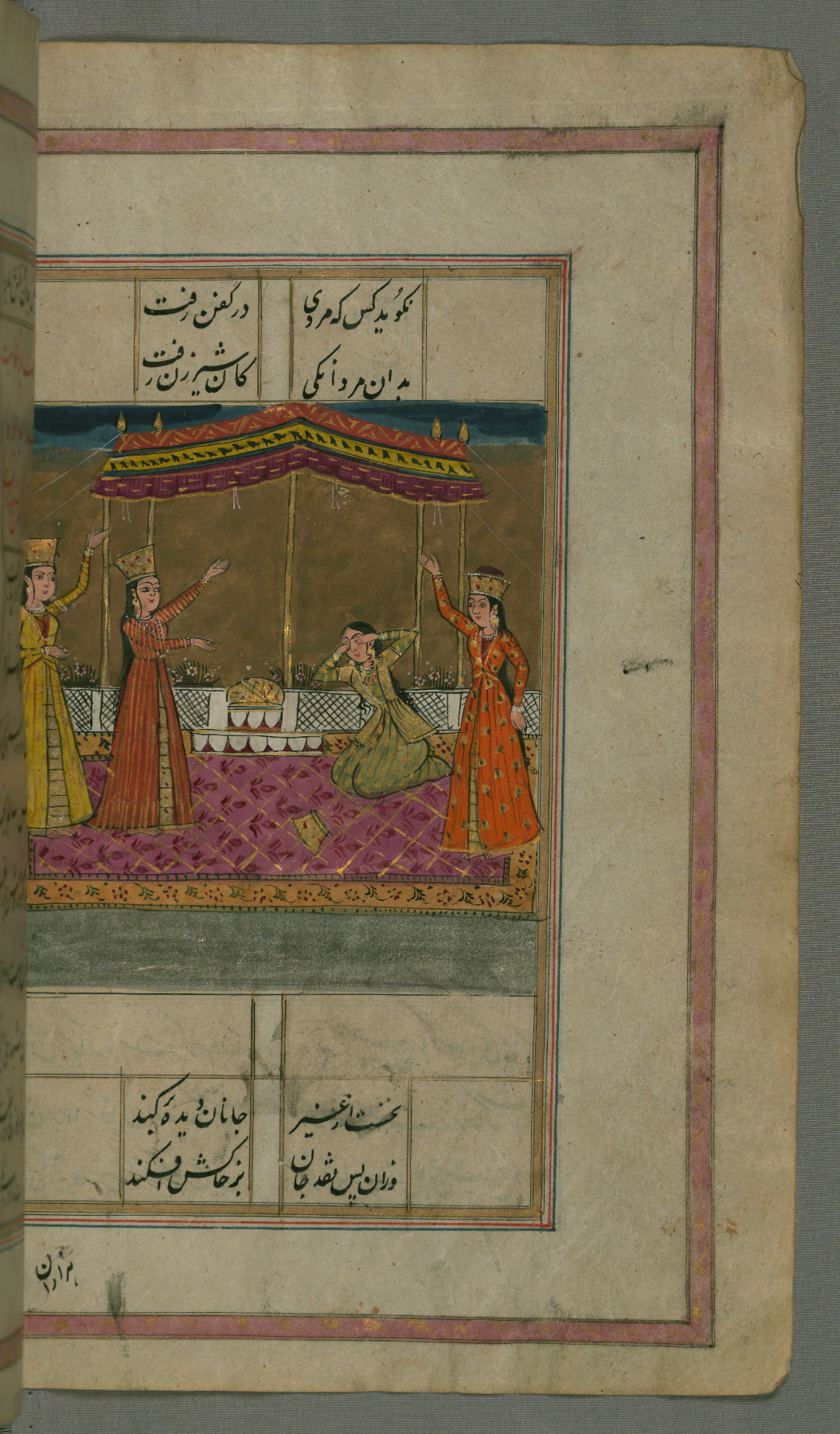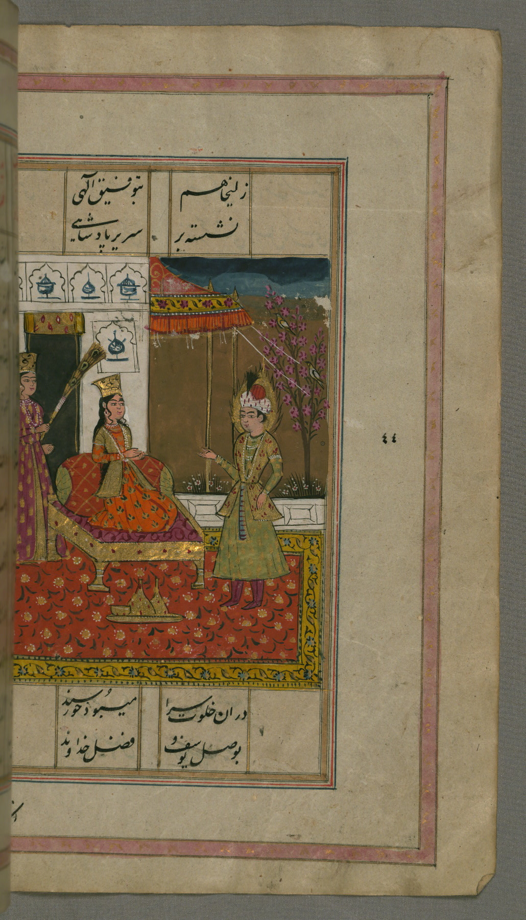 - Title: Zulaykhā, peeking through a hole in her tent, discovers that the vizier is not Joseph