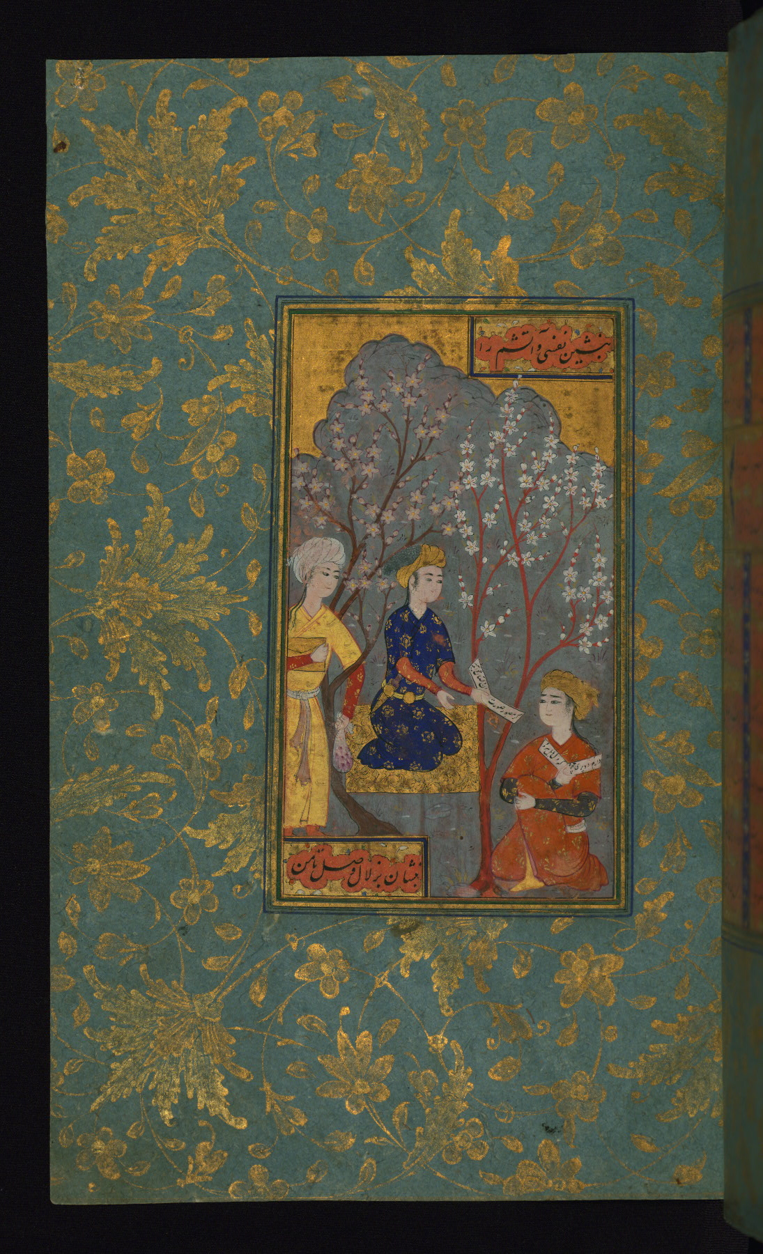 - Label: In a garden, three men gather and exchange poetic verses.