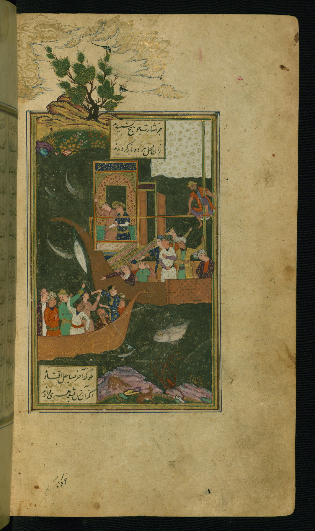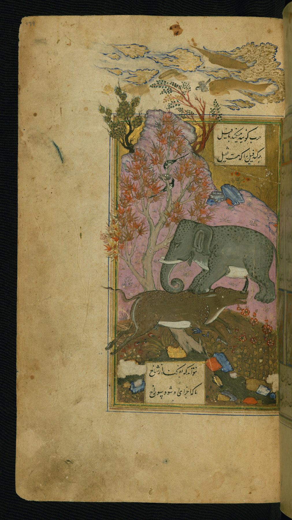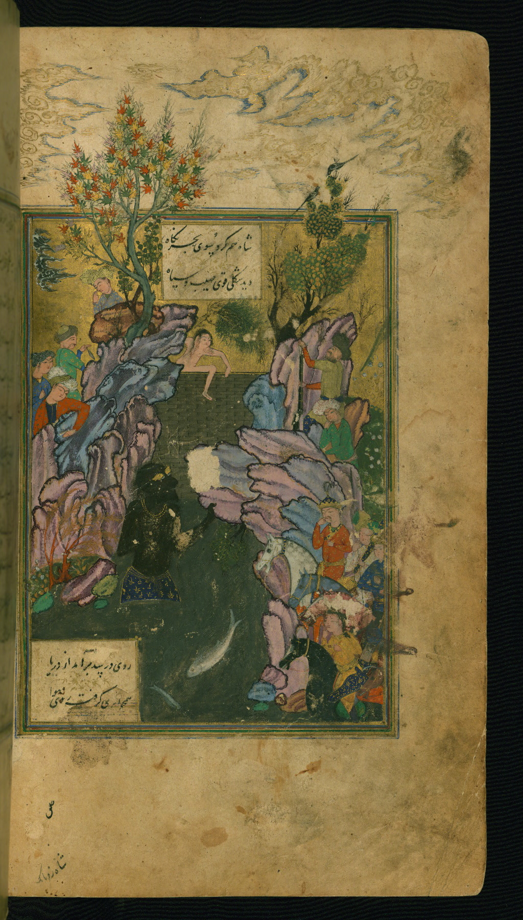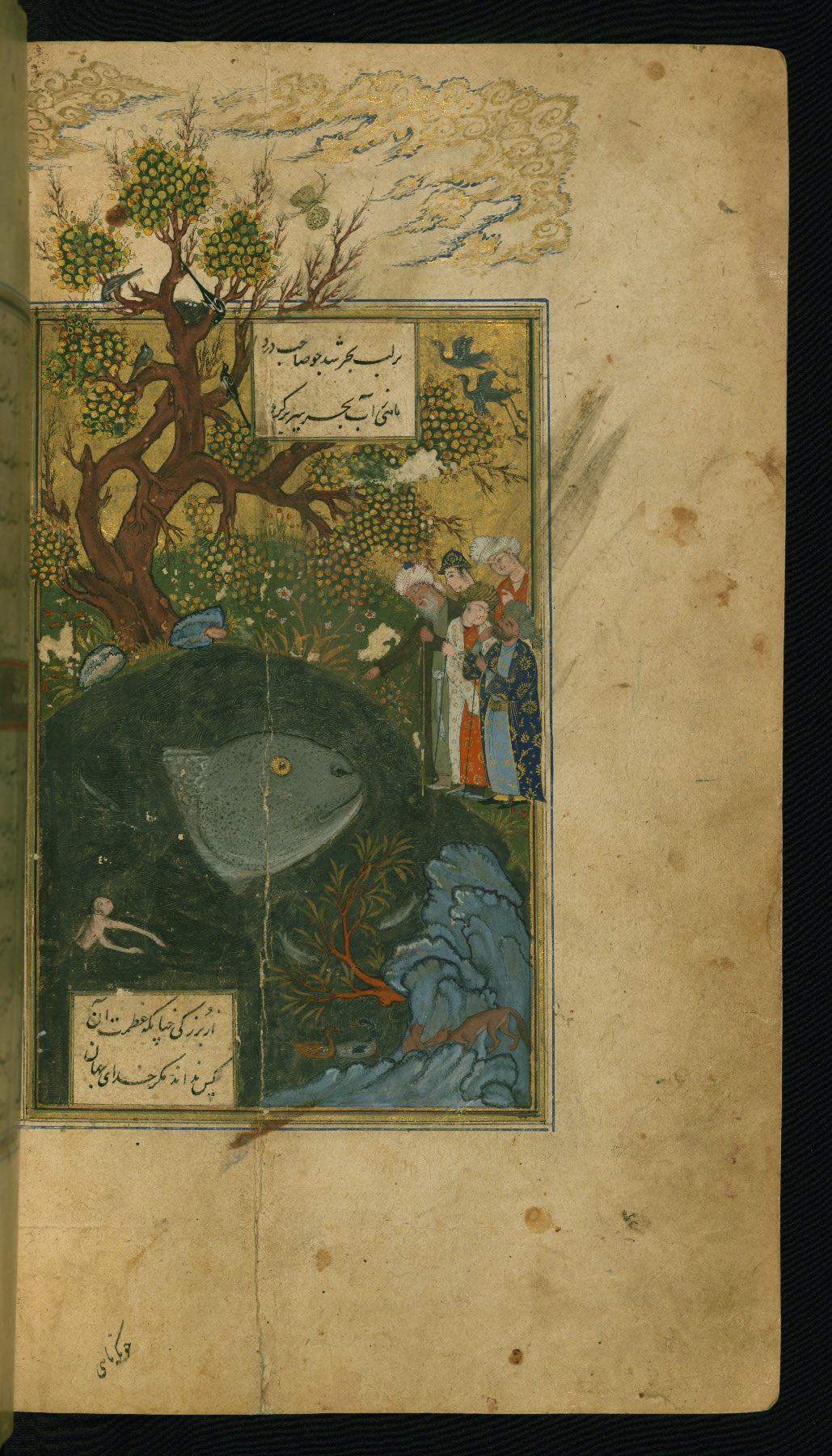 This is an abridged metrical paraphrase of the second maqālah of ʿAjāʾib al-makhlūqāt (The wonders of creation) by Zakariyāʾ al-Qazwīnī (d. 682 AH / 1283 CE) with additions from other sources by Fakhr al-Dīn Ḥamzah ibn ʿAlī Āẕarī (d. 866 AH / 1461-2 CE). The text was copied in Herat (in present-day Afghanistan) in 1022 AH / 1613 CE in the library of the governor of Khurasan Ḥusayn Khān Shāmlū-yi Bīklirbīkī (Beglerbegi). The manuscript is illustrated with fourteen paintings in an early Safavid style from the eleventh century AH / seventeenth CE. The present binding is not original to the manuscript.