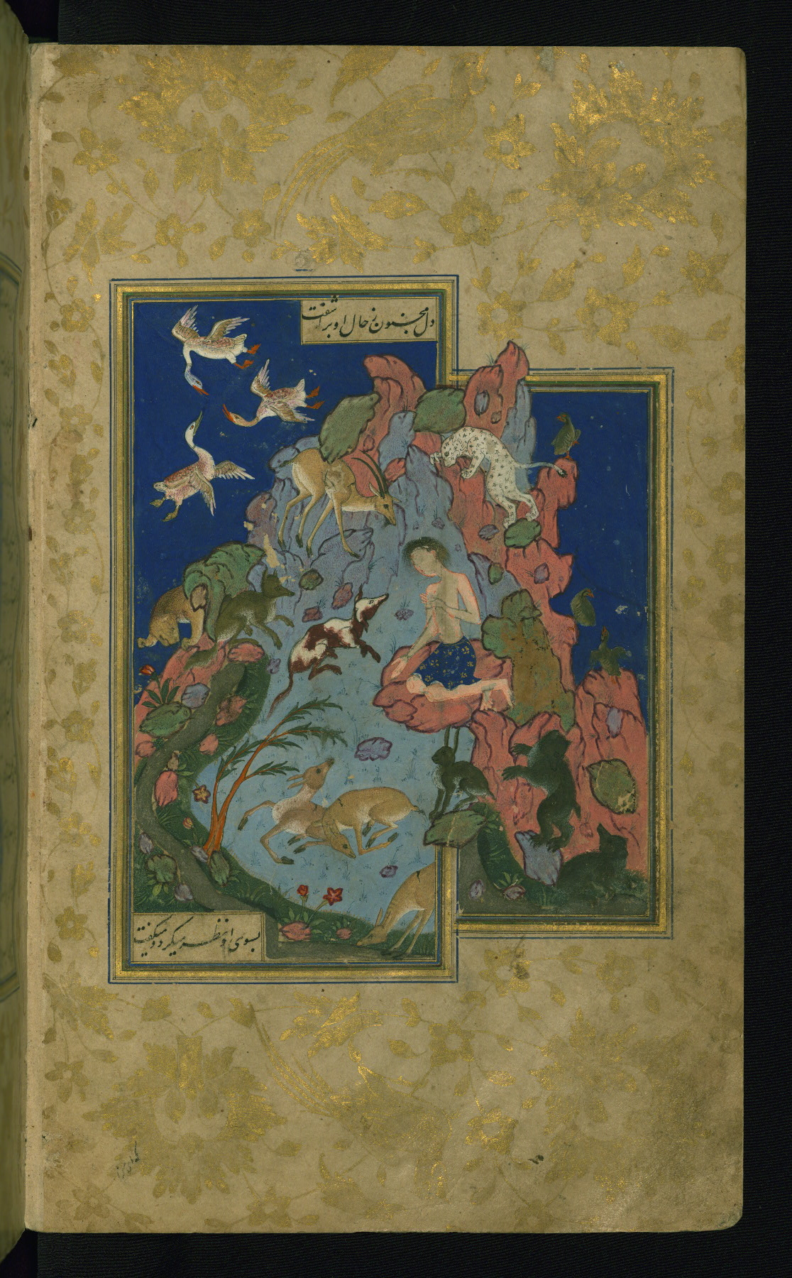This is an illuminated and illustrated Safavid copy of a mystic poem (masnavi) entitled Ṣifat al-ʿāshiqīn (Qualities of lovers) by Nūr al-Dīn Hilālī (d. 936 AH / 1529-30 CE). It was written in nastaʿlīq script by Muʿizz al-Dīn Muḥammad al-Ḥusaynī in 978 AH / 1570-1 CE. The manuscript opens with a double-page illustrated frontispiece (fols. 1b-2a), followed by a double-page illuminated incipit (fols. 2b-3a). Borders throughout the codex are illuminated with floral and bird motifs. The lacquer binding is original to the manuscript.