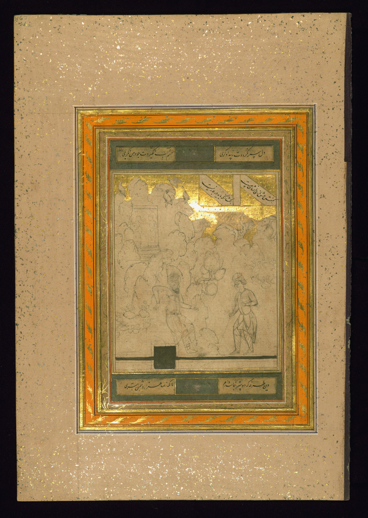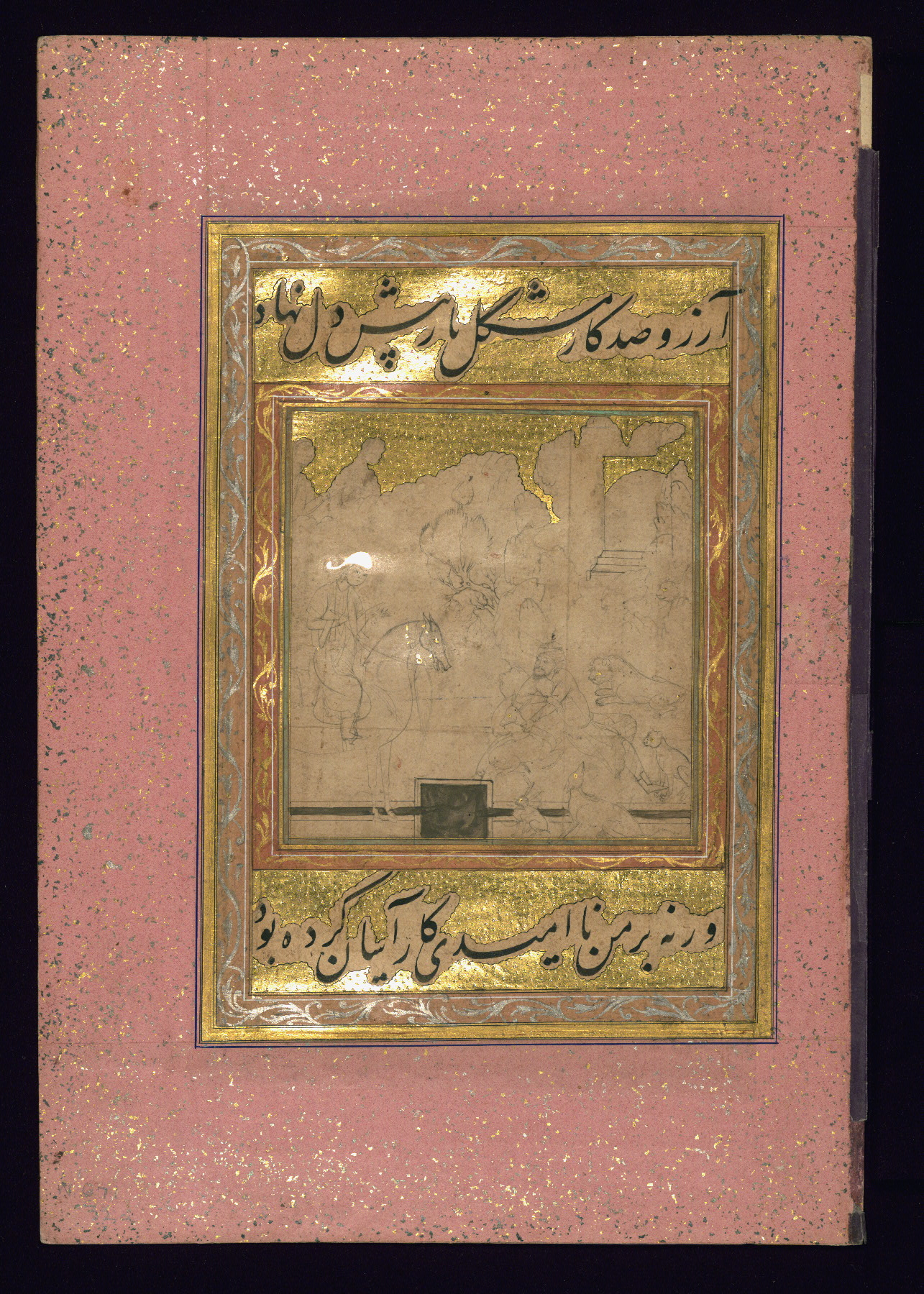 - Label: This is a drawing illustrating the story of Farhād, the sculptor, originally from Khusraw va Shīrīn.