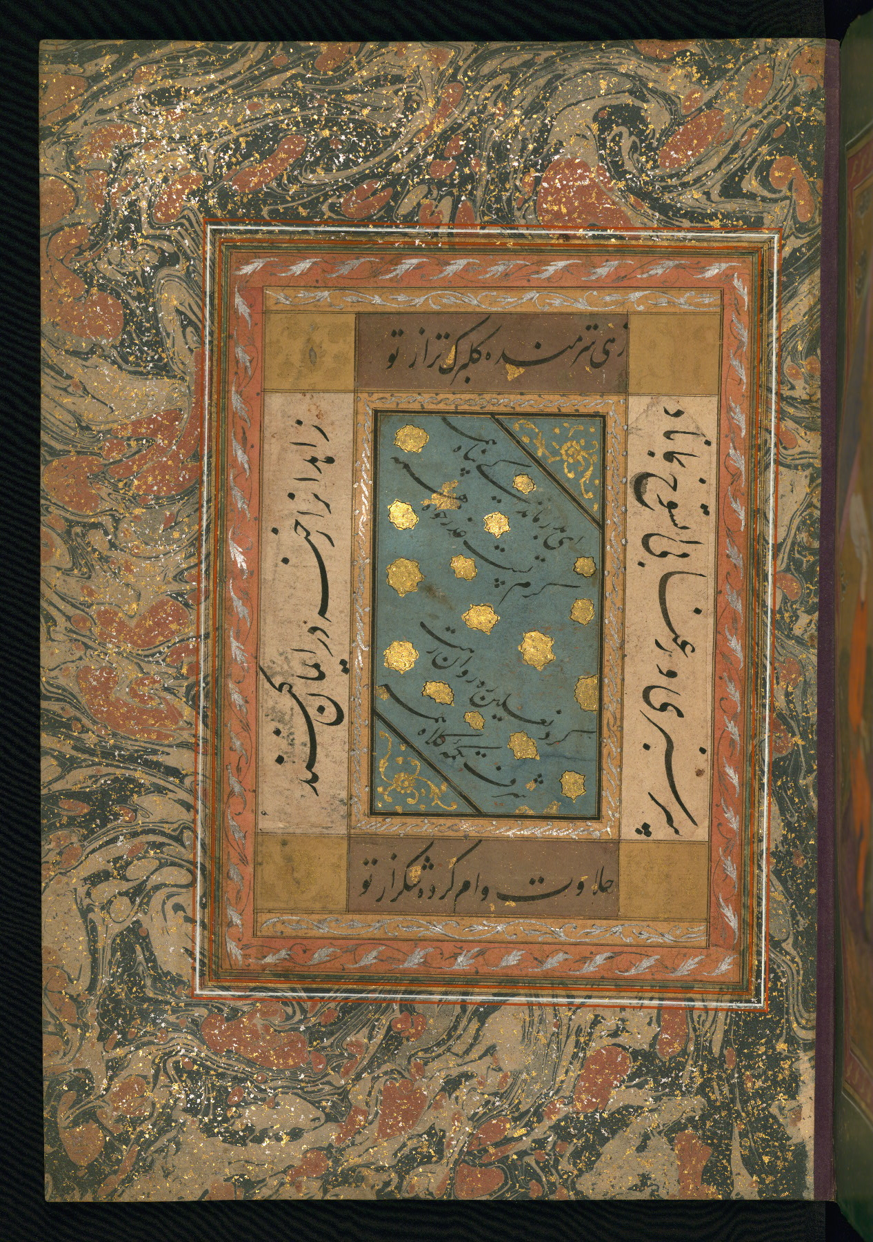 - Label: This calligraphy page is written in nastaʿlīq script by Sulṭān Murād al-Ḥusaynī.