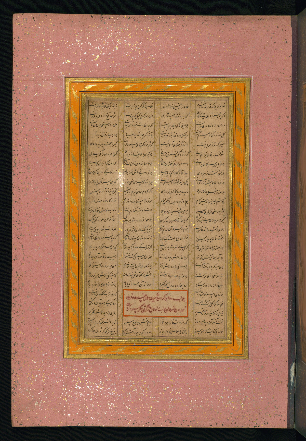 - Label: This calligraphy page is written in nastaʿlīq script and is from a manuscript of Khusraw va Shīrīn.