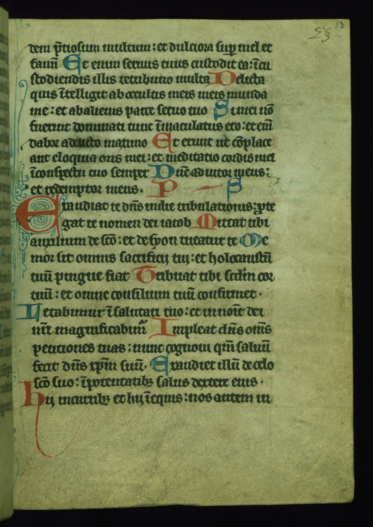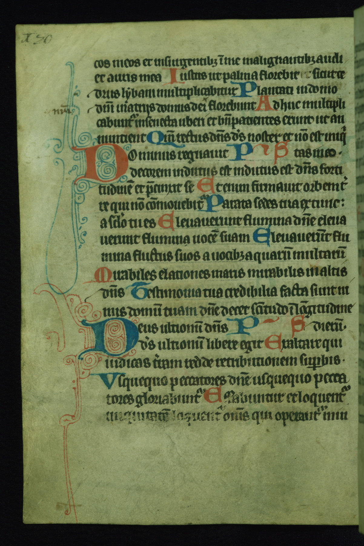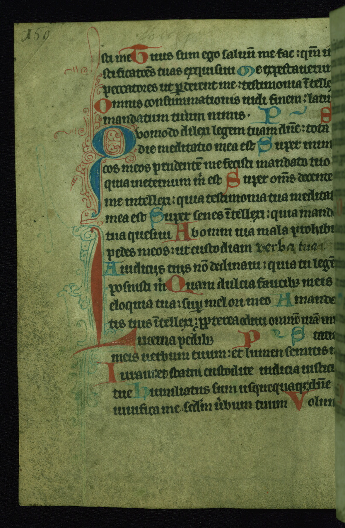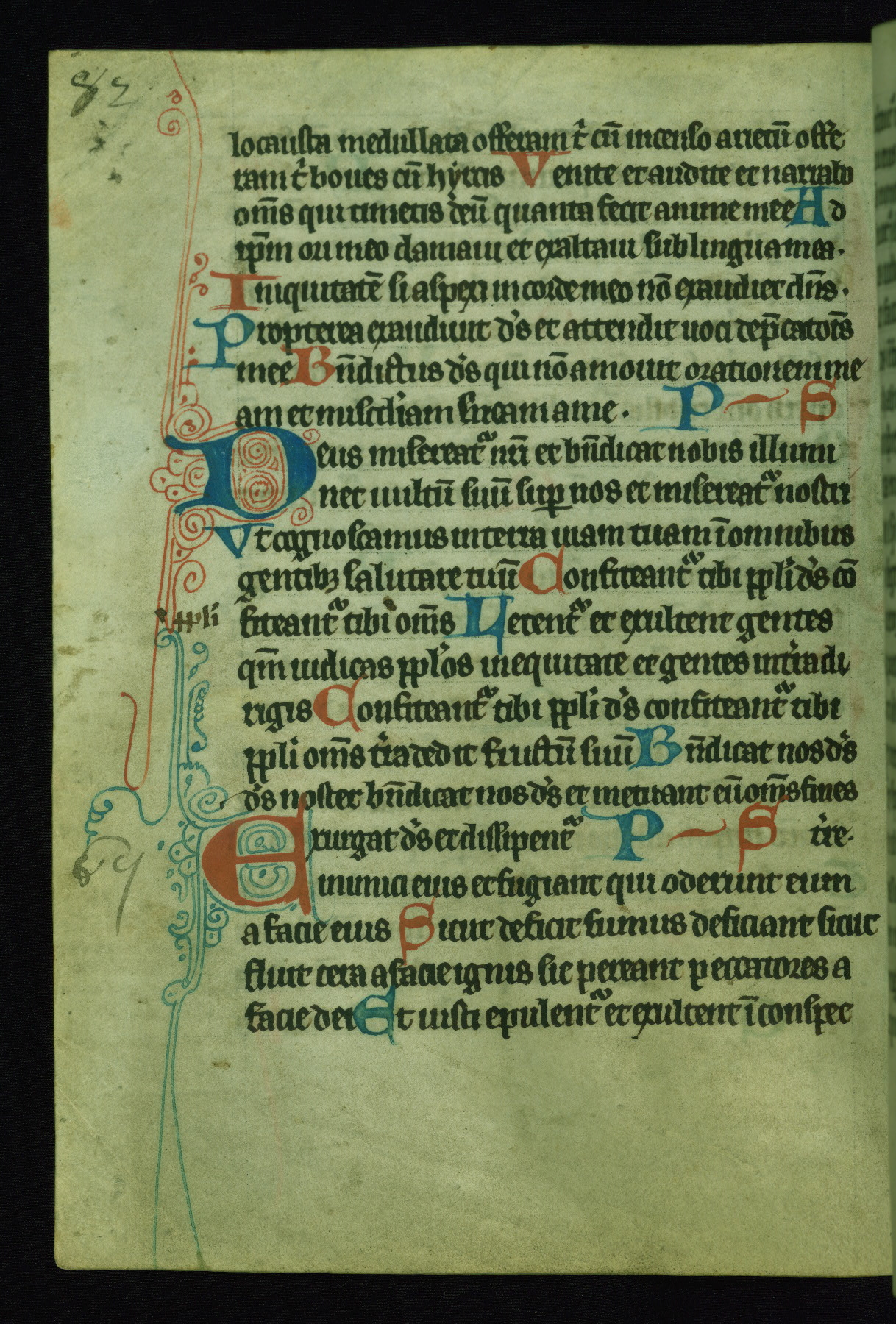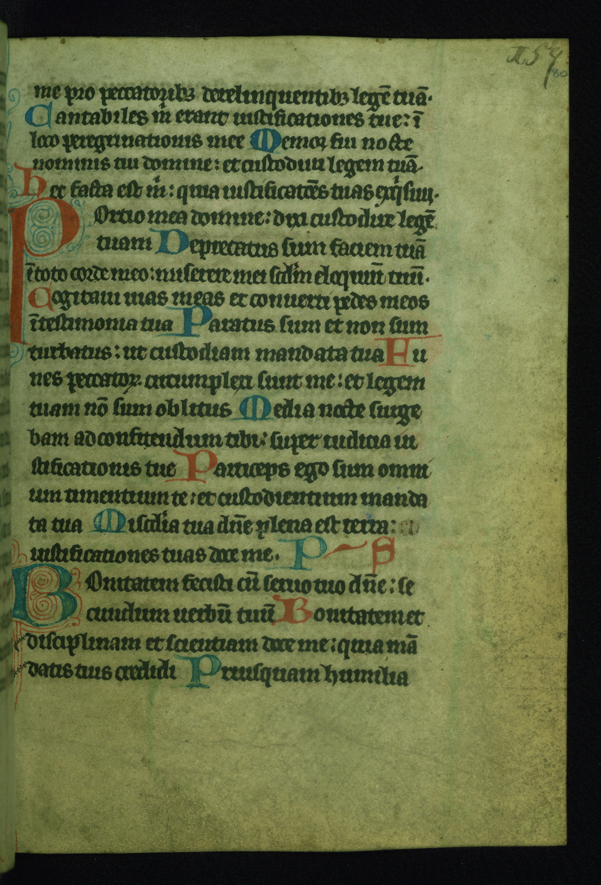 This Flemish Psalter was produced in the Hainaut region between 1265 and 1275. It was altered for Dominican use through the addition of antiphons in the margins in the late fifteenth century, at which point it was also rebound in its current inscribed leather binding. It was later among the books collected by Johann Anton Ramboux (1790-1866), a German painter and museum curator. The manuscript, which is illuminated throughout with twelve large historiated and inhabited initials, is a strong example of a group of manuscripts produced in the last quarter of the thirteenth century that combined the artistic styles of Hainaut and Liège, other examples including Paris, B.N. Lat. 1077, Biblioteca apostolica vaticana, BBR Ms. IV-1066, and Princeton University Art Museum 57.189.