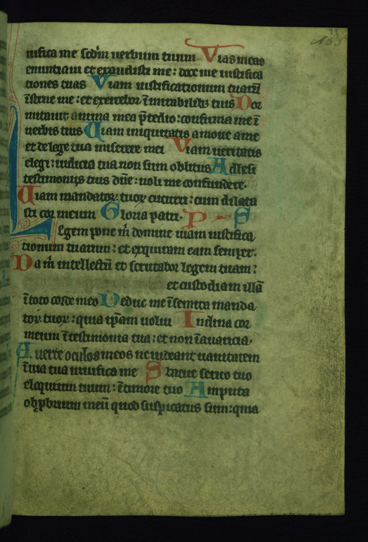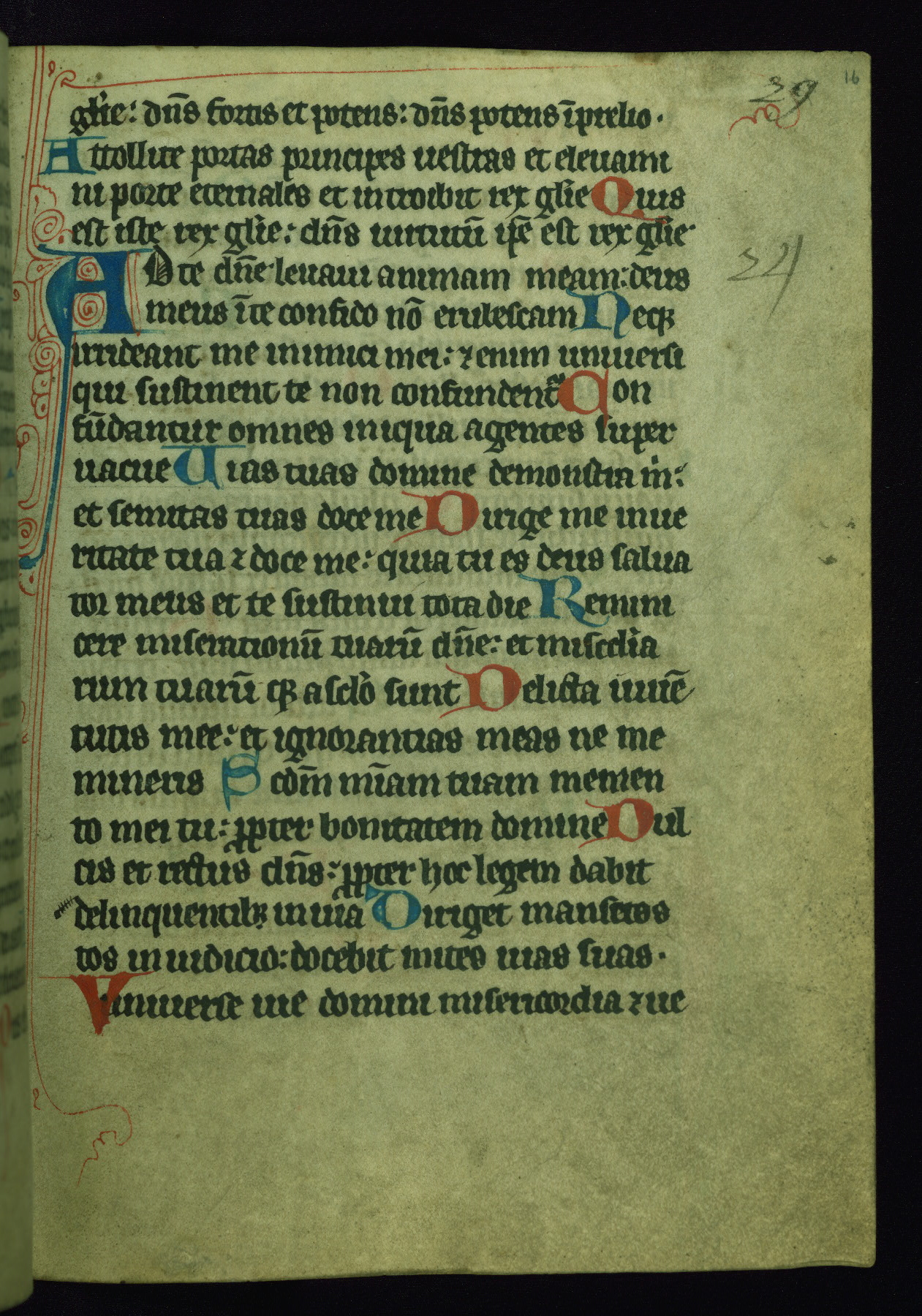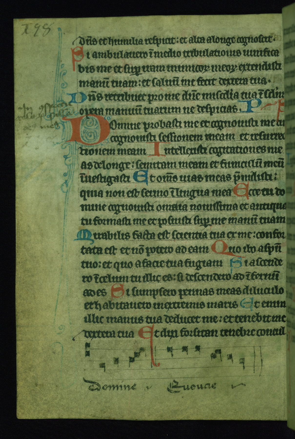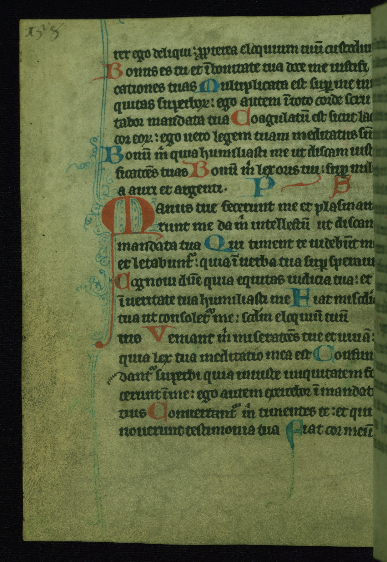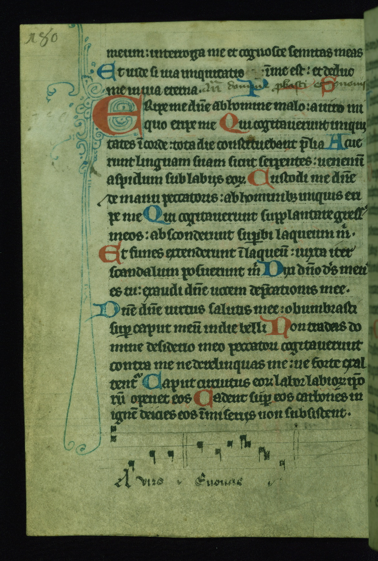 This Flemish Psalter was produced in the Hainaut region between 1265 and 1275. It was altered for Dominican use through the addition of antiphons in the margins in the late fifteenth century, at which point it was also rebound in its current inscribed leather binding. It was later among the books collected by Johann Anton Ramboux (1790-1866), a German painter and museum curator. The manuscript, which is illuminated throughout with twelve large historiated and inhabited initials, is a strong example of a group of manuscripts produced in the last quarter of the thirteenth century that combined the artistic styles of Hainaut and Liège, other examples including Paris, B.N. Lat. 1077, Biblioteca apostolica vaticana, BBR Ms. IV-1066, and Princeton University Art Museum 57.189.
