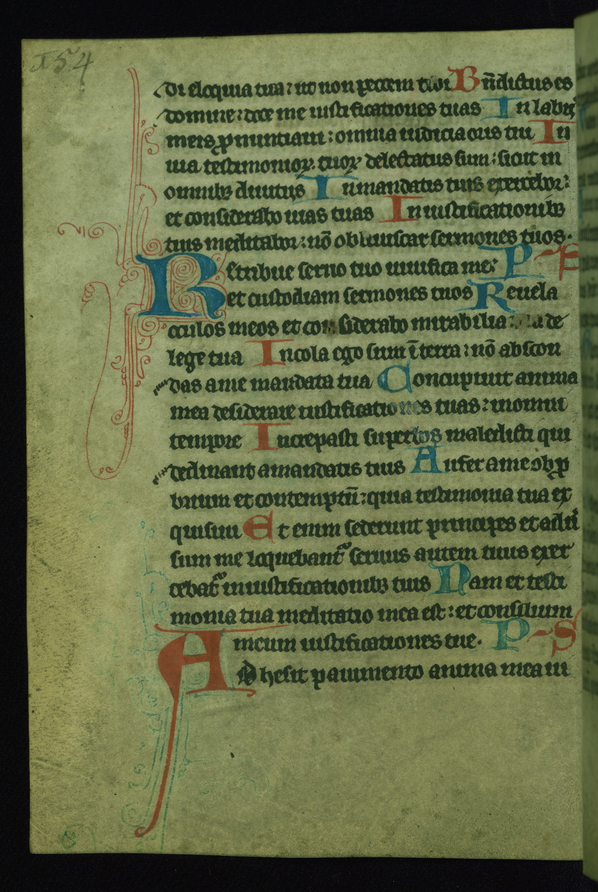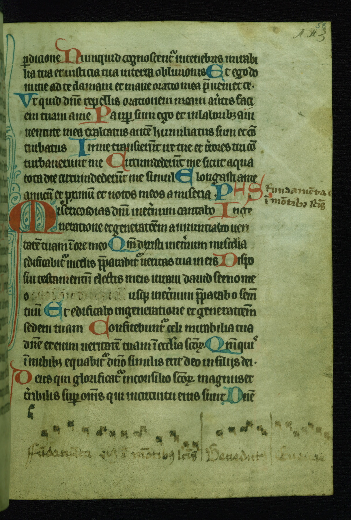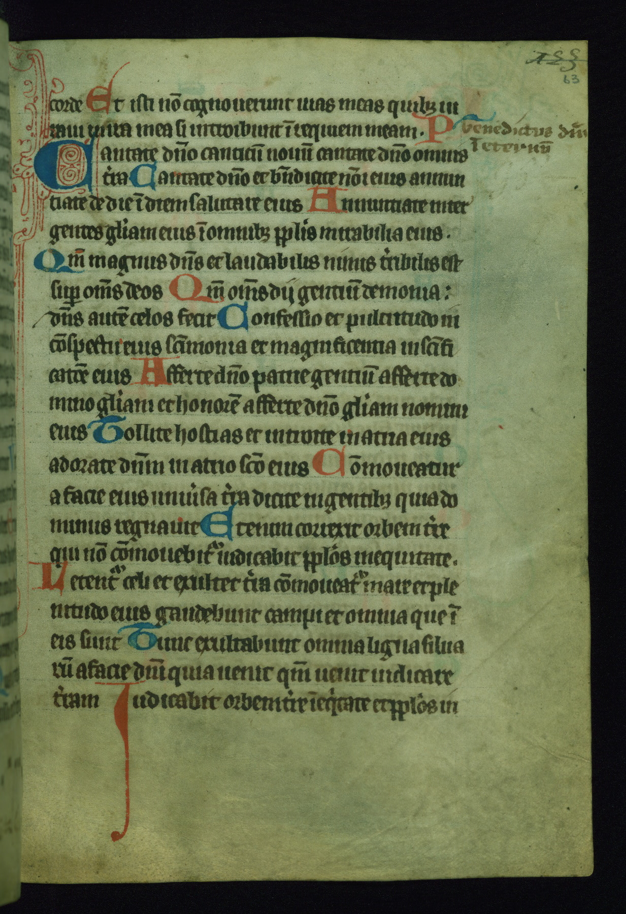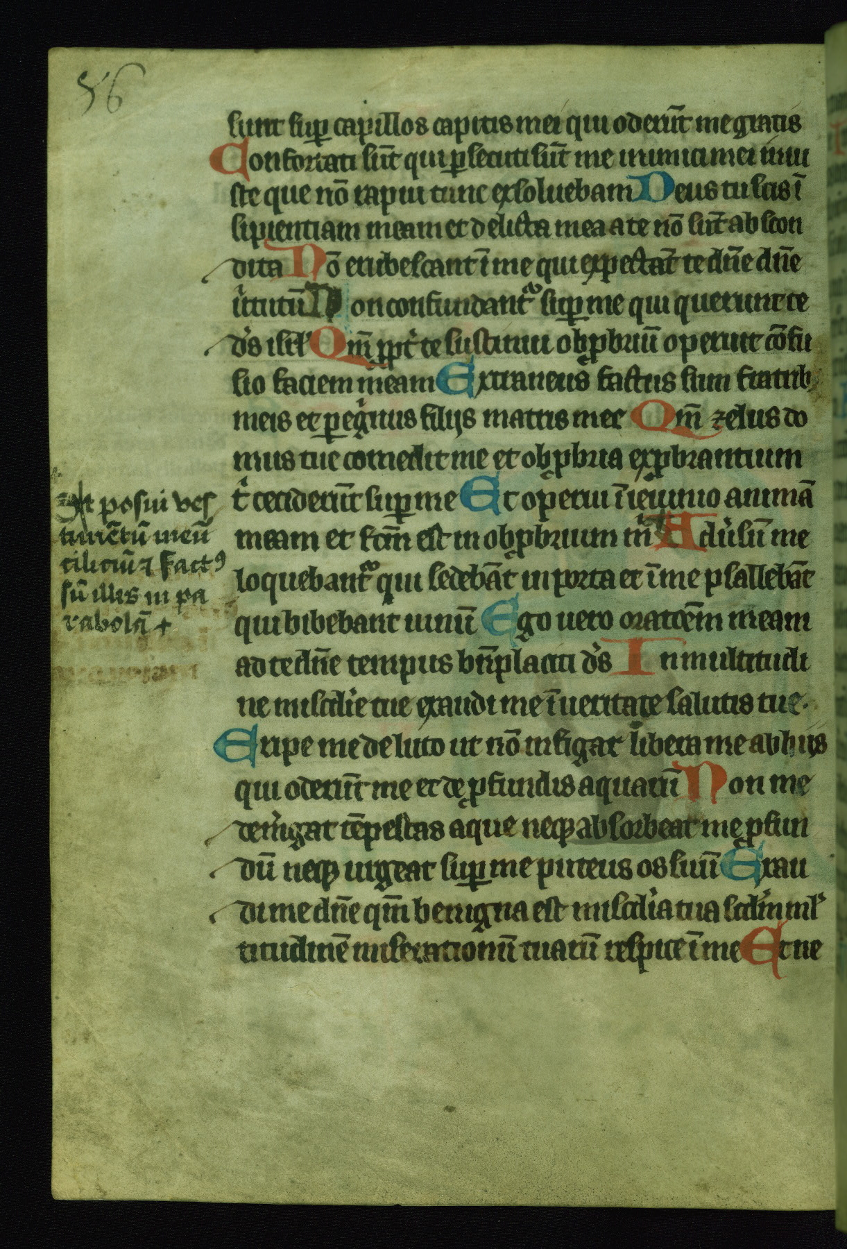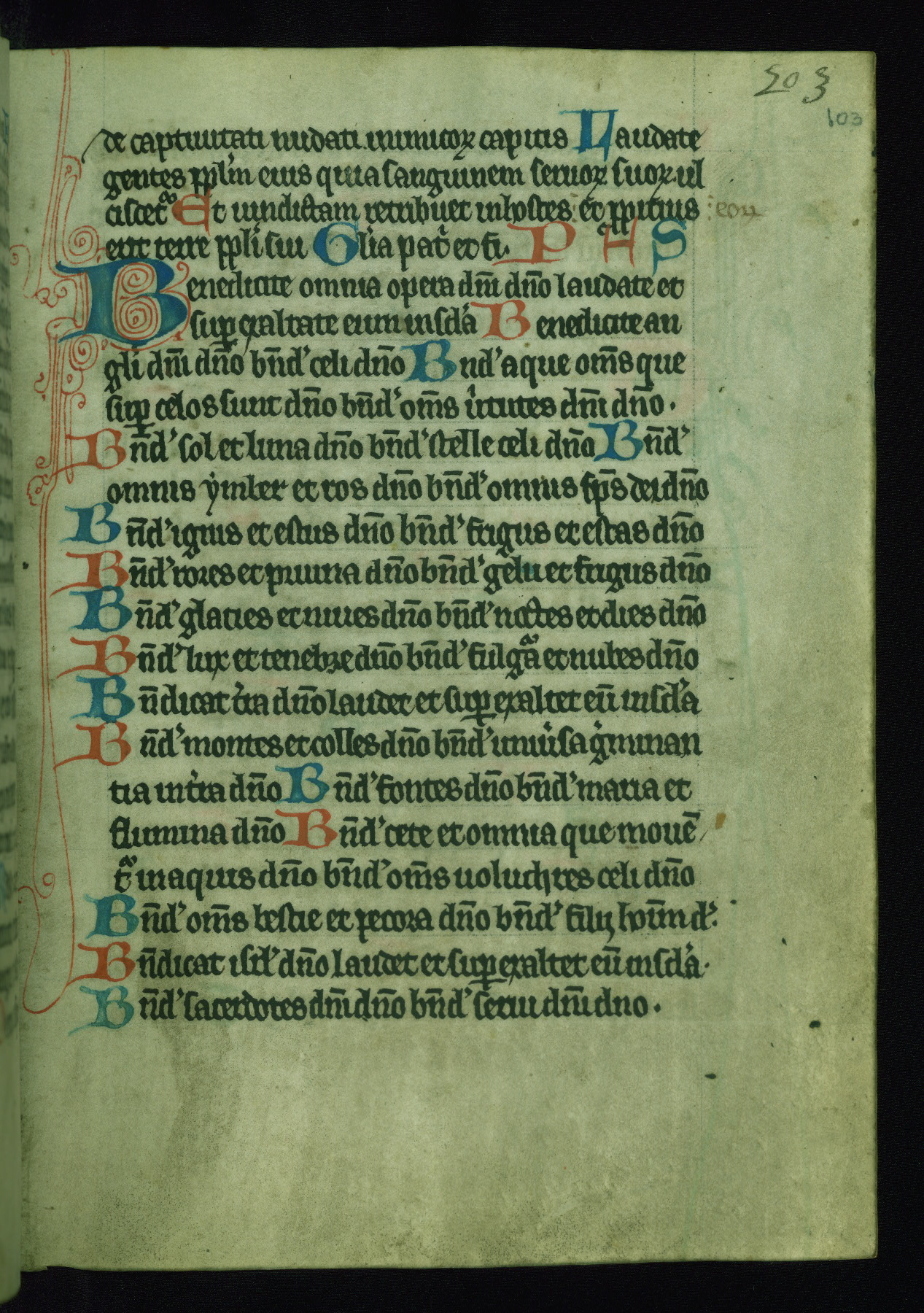 This Flemish Psalter was produced in the Hainaut region between 1265 and 1275. It was altered for Dominican use through the addition of antiphons in the margins in the late fifteenth century, at which point it was also rebound in its current inscribed leather binding. It was later among the books collected by Johann Anton Ramboux (1790-1866), a German painter and museum curator. The manuscript, which is illuminated throughout with twelve large historiated and inhabited initials, is a strong example of a group of manuscripts produced in the last quarter of the thirteenth century that combined the artistic styles of Hainaut and Liège, other examples including Paris, B.N. Lat. 1077, Biblioteca apostolica vaticana, BBR Ms. IV-1066, and Princeton University Art Museum 57.189.