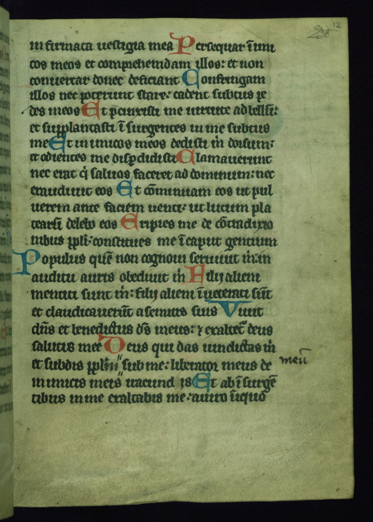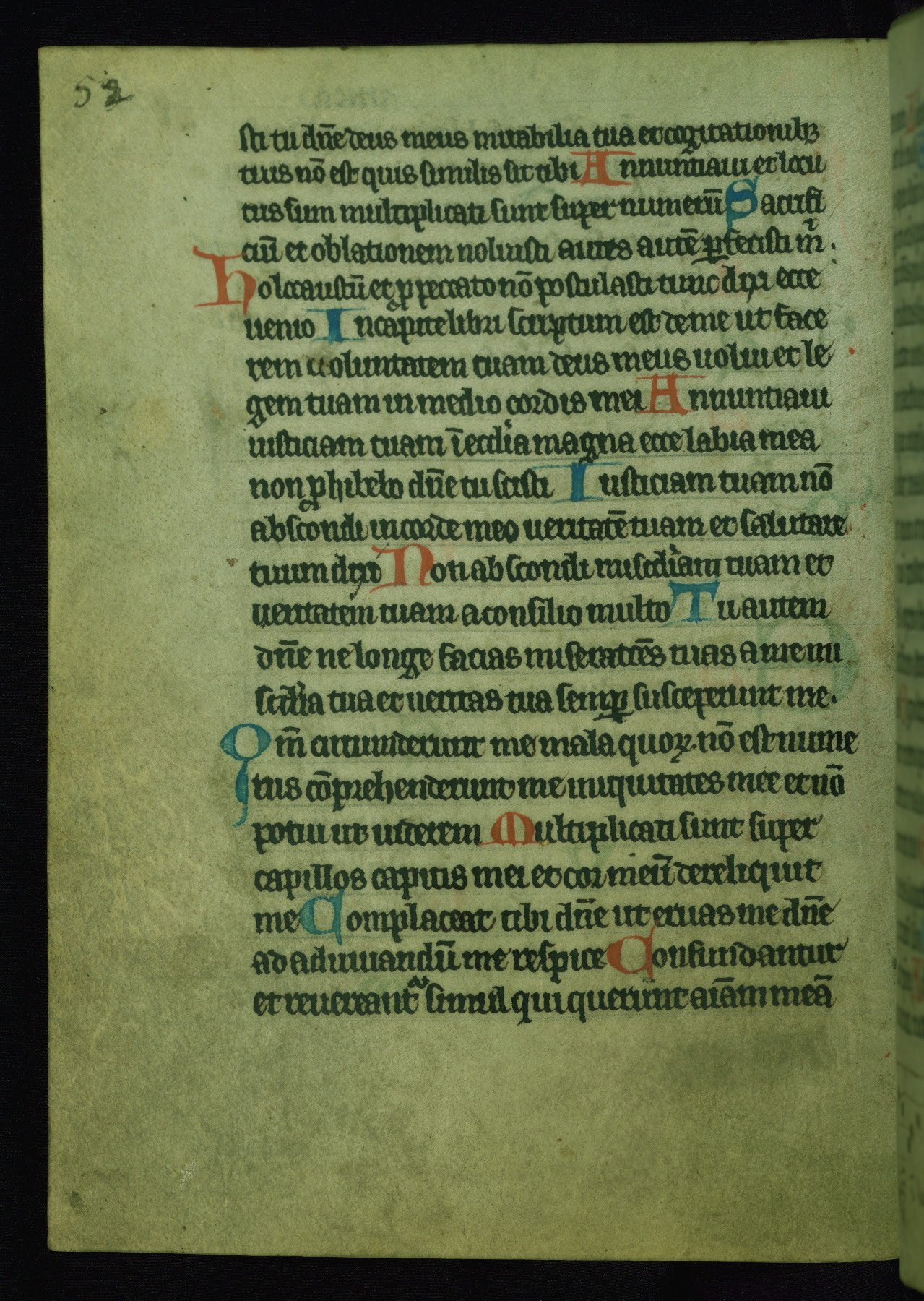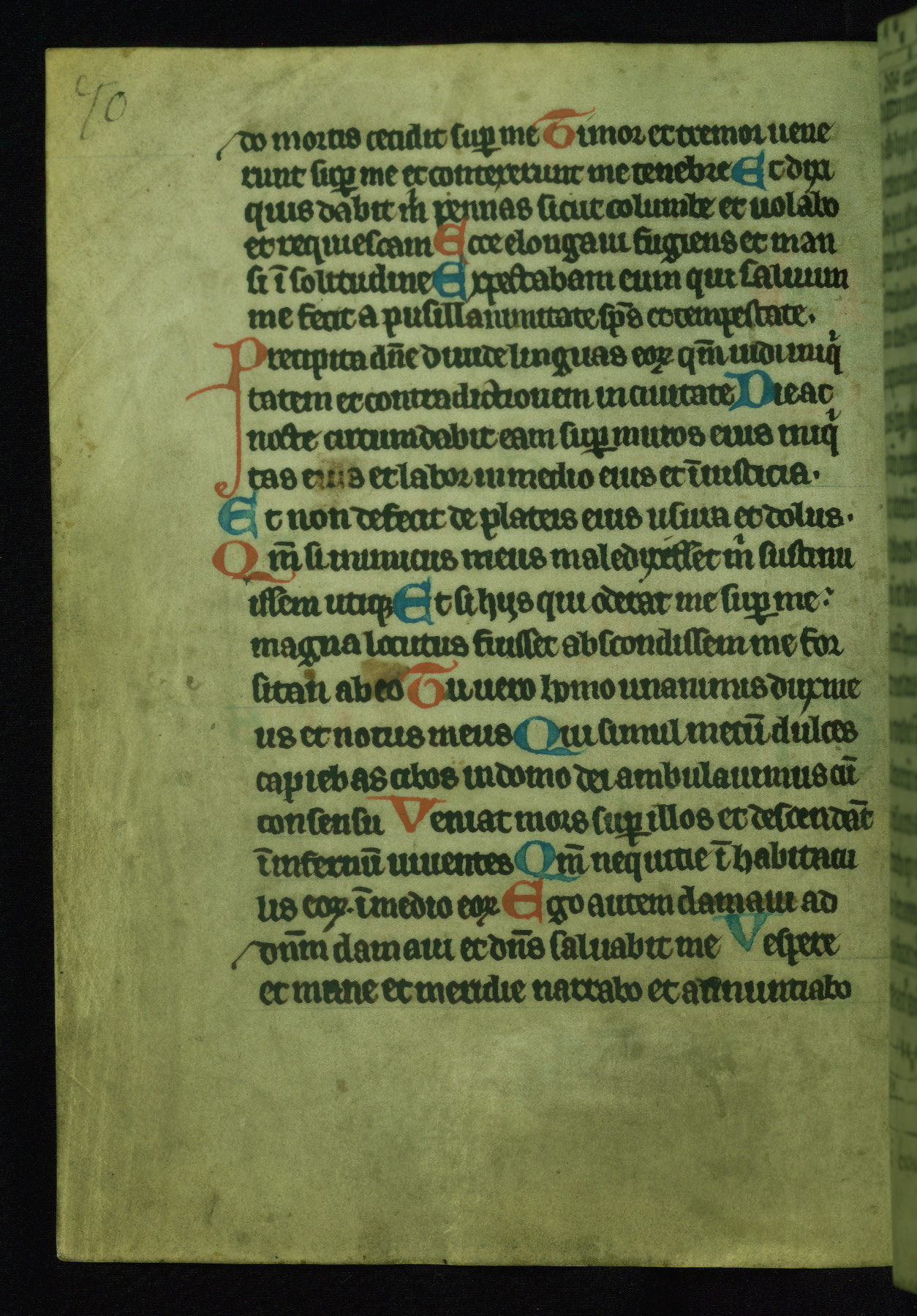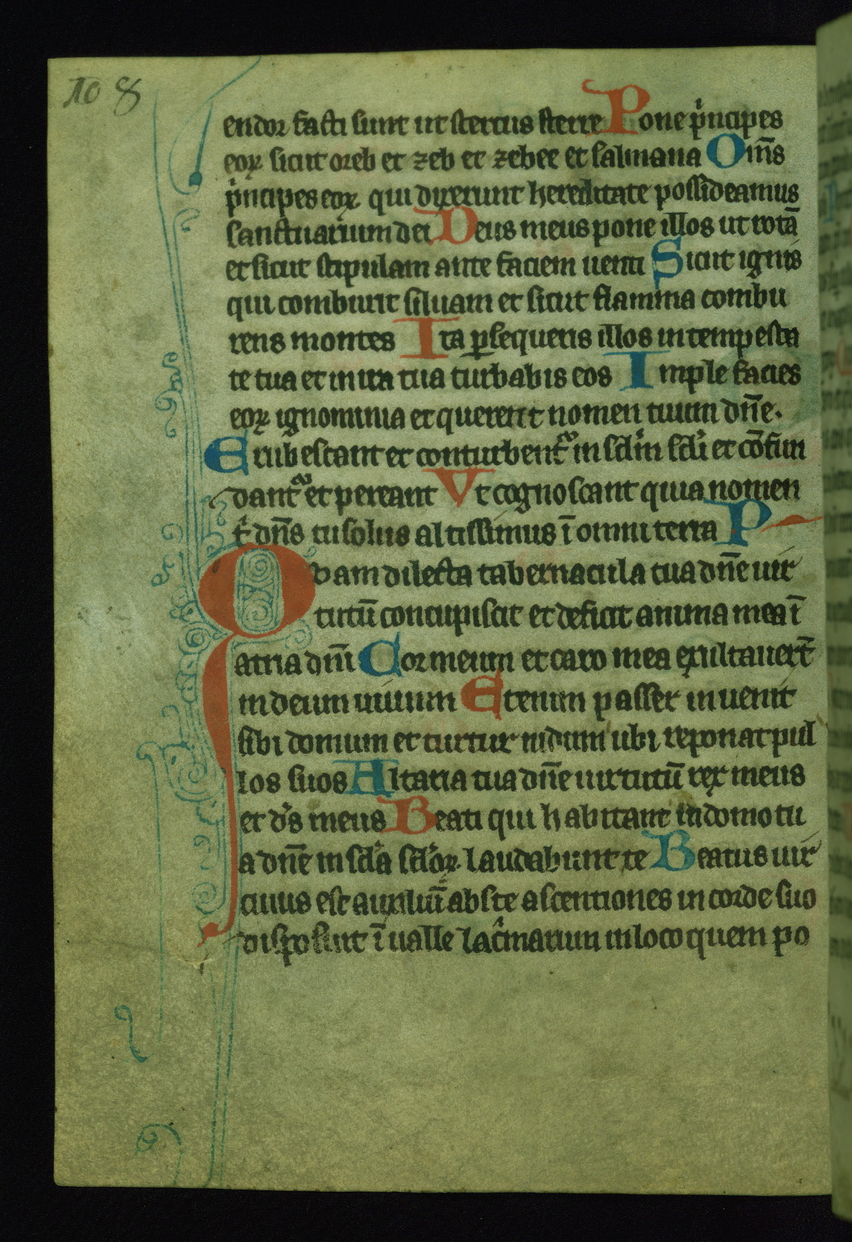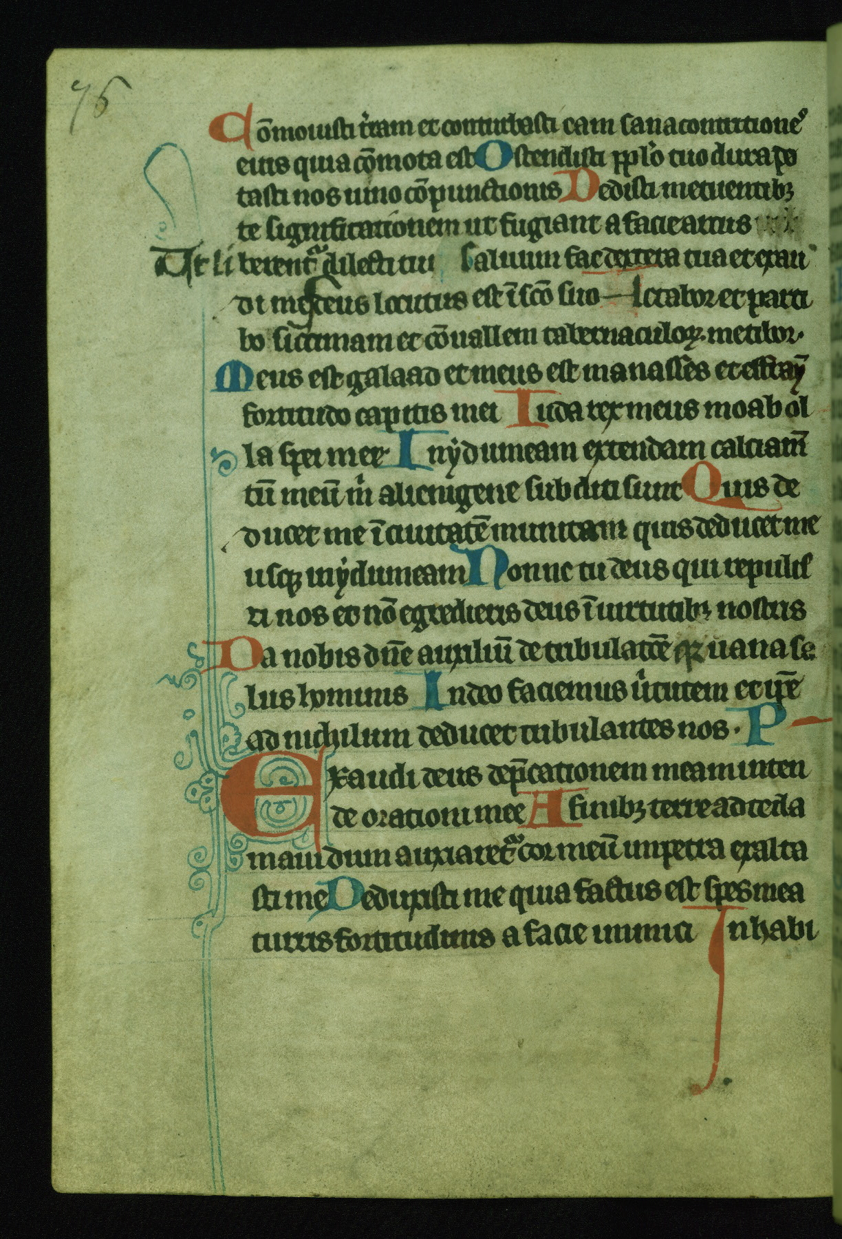 This Flemish Psalter was produced in the Hainaut region between 1265 and 1275. It was altered for Dominican use through the addition of antiphons in the margins in the late fifteenth century, at which point it was also rebound in its current inscribed leather binding. It was later among the books collected by Johann Anton Ramboux (1790-1866), a German painter and museum curator. The manuscript, which is illuminated throughout with twelve large historiated and inhabited initials, is a strong example of a group of manuscripts produced in the last quarter of the thirteenth century that combined the artistic styles of Hainaut and Liège, other examples including Paris, B.N. Lat. 1077, Biblioteca apostolica vaticana, BBR Ms. IV-1066, and Princeton University Art Museum 57.189.